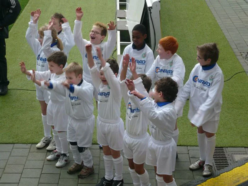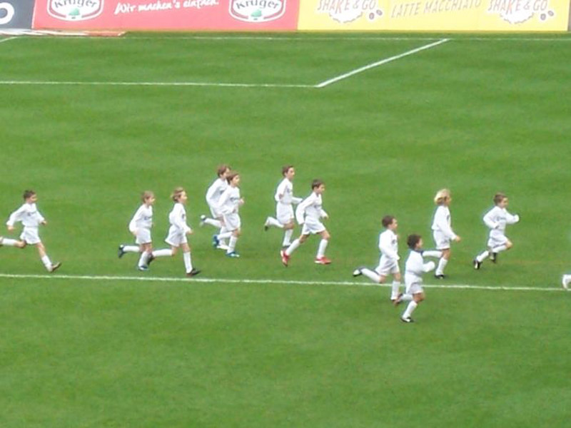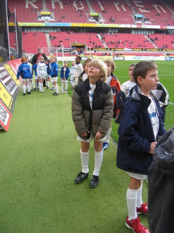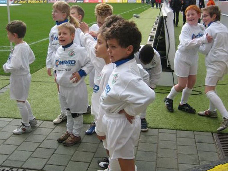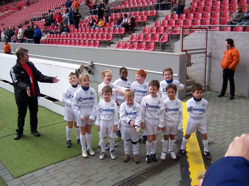 Einmal in ein großes Fußballstadion einlaufen: das ist der Traum eines jeden Kindes. Die Kinder unseres Vereins hatten diese Möglichkeit im Jahr 2006, als sie mit den Profis des 1. FC Köln in das Rhein-Energie-Stadion einlaufen durften. Eine Nacht voller Träume gab's kostenlos dazu.