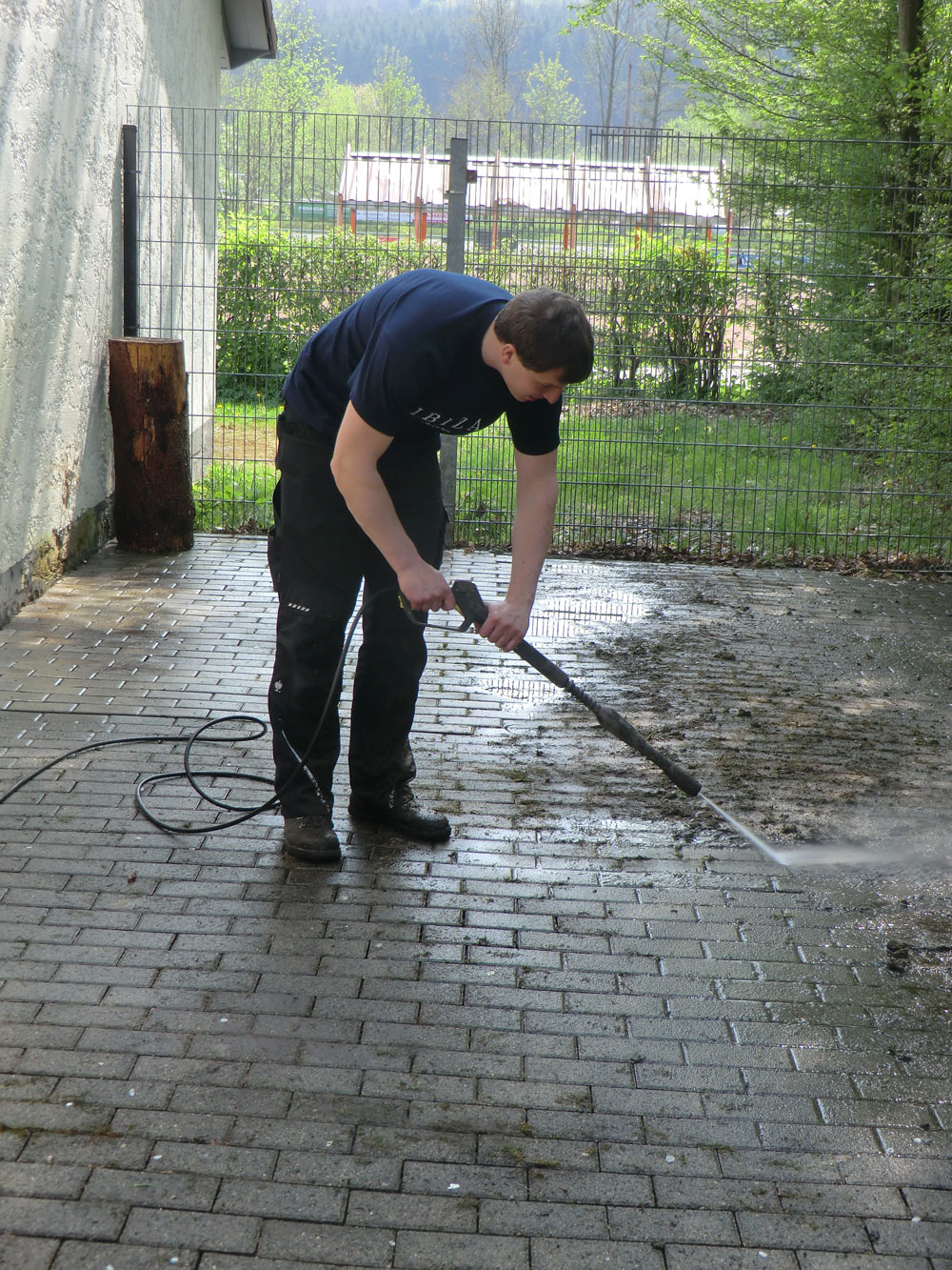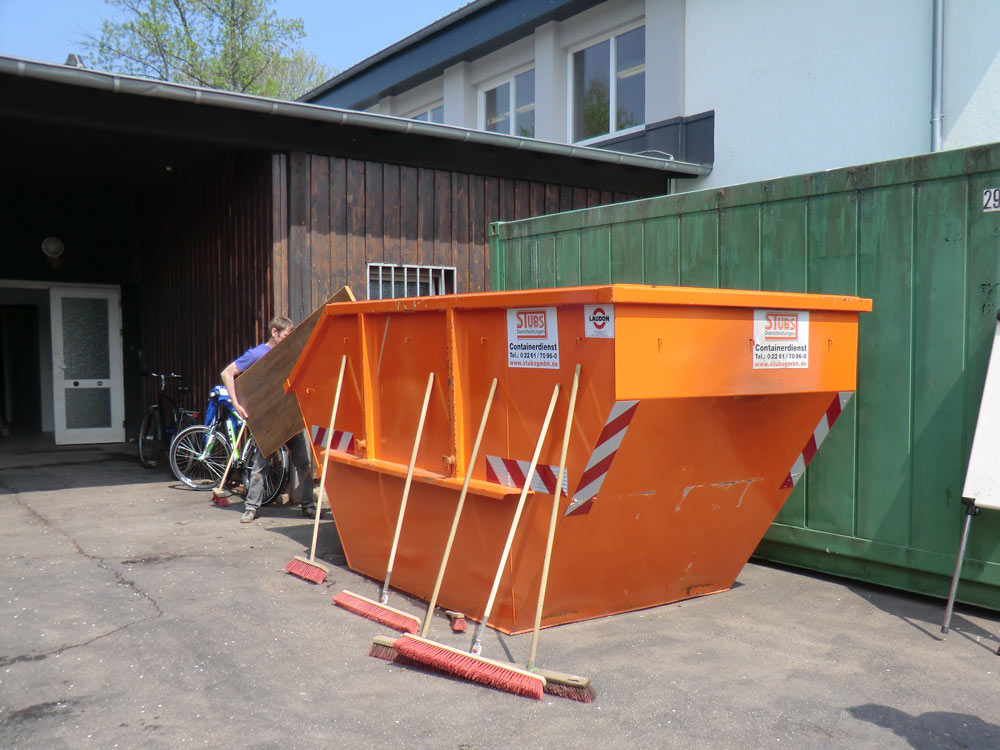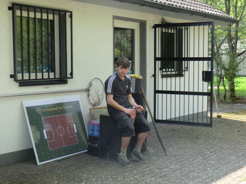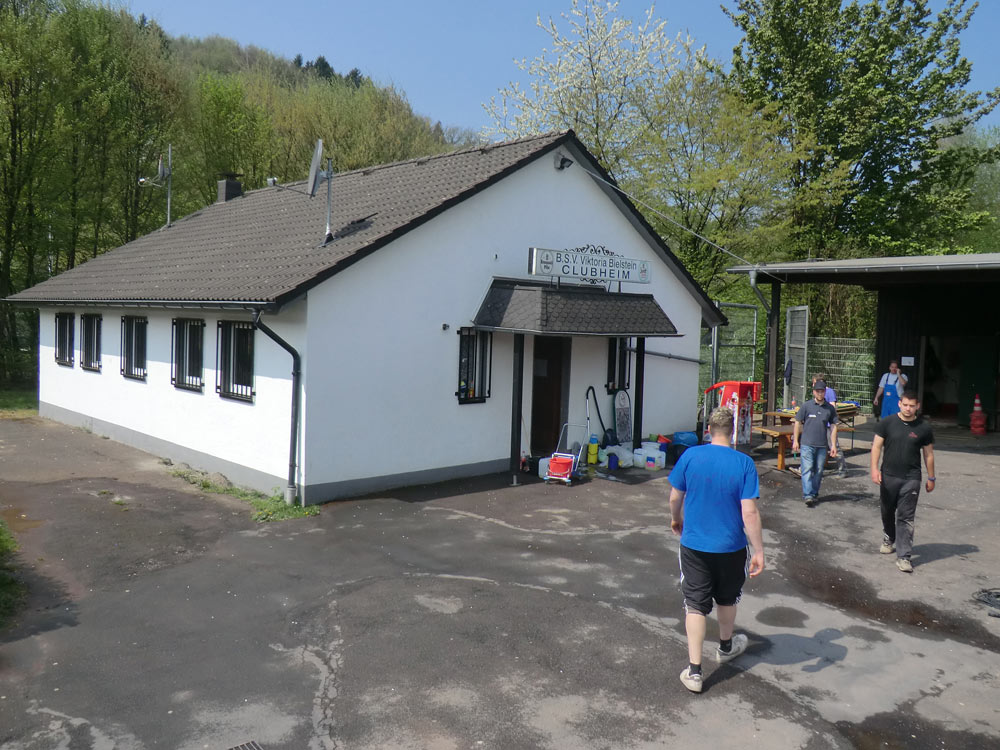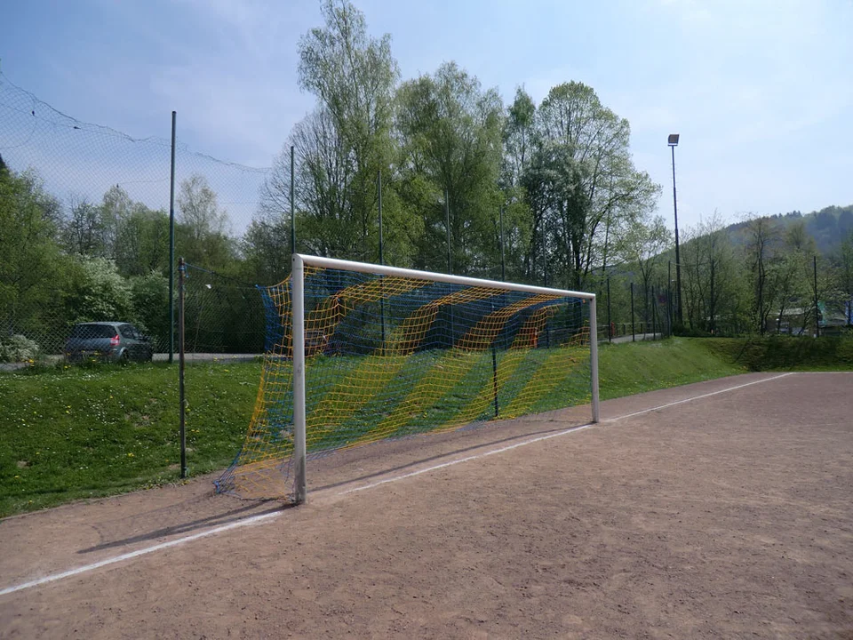 Der jährliche Umwelttag des Vereins, bei dem die Helfer den Sportplatz und die Umgebung reinigen und verschönern, fand dieses Jahr am 4. Mai statt. Neben den typischen Reinigungsarbeiten, die anfielen, wurden auch neue Tornetze in den Vereinsfarben blau und gelb aufgehängt (Fotos: Benjamin Gries).
