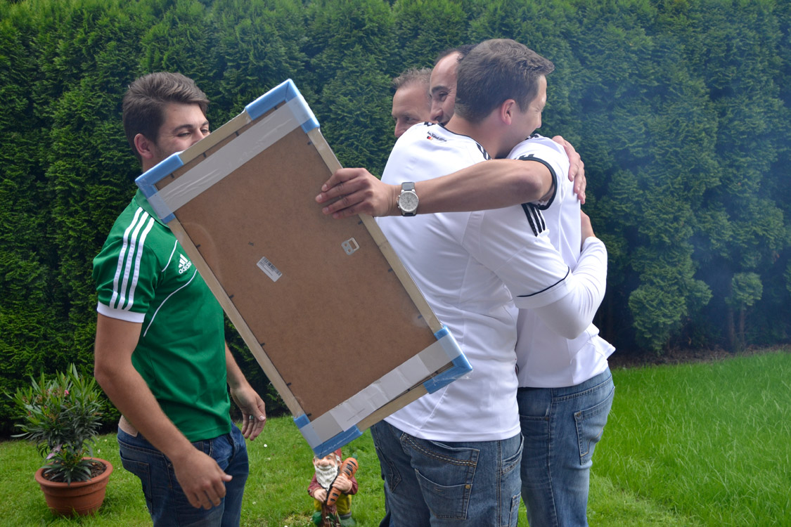 Nachdem man bereits vor zwei Wochen den offiziellen Abschied von Thorsten Lenger gefeiert hatte, überraschte die Mannschaft den scheidenden Trainer nun mit einer zweiten Abschiedsfeier (Fotos: Benjamin Gries).
