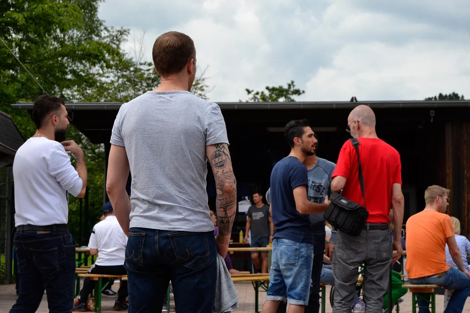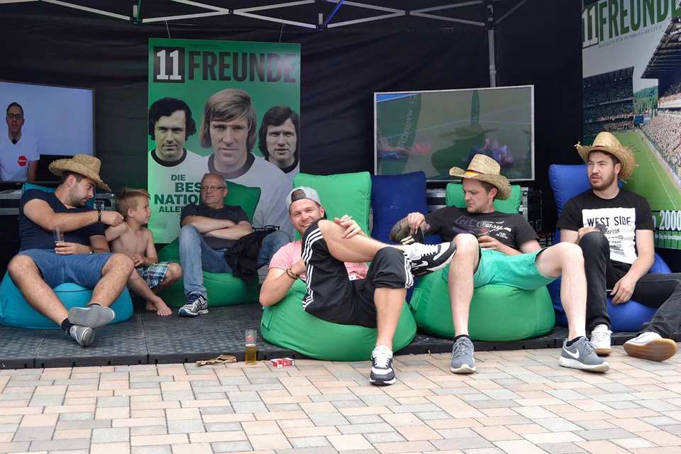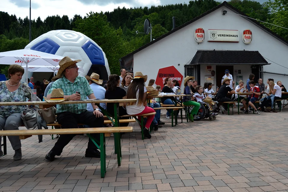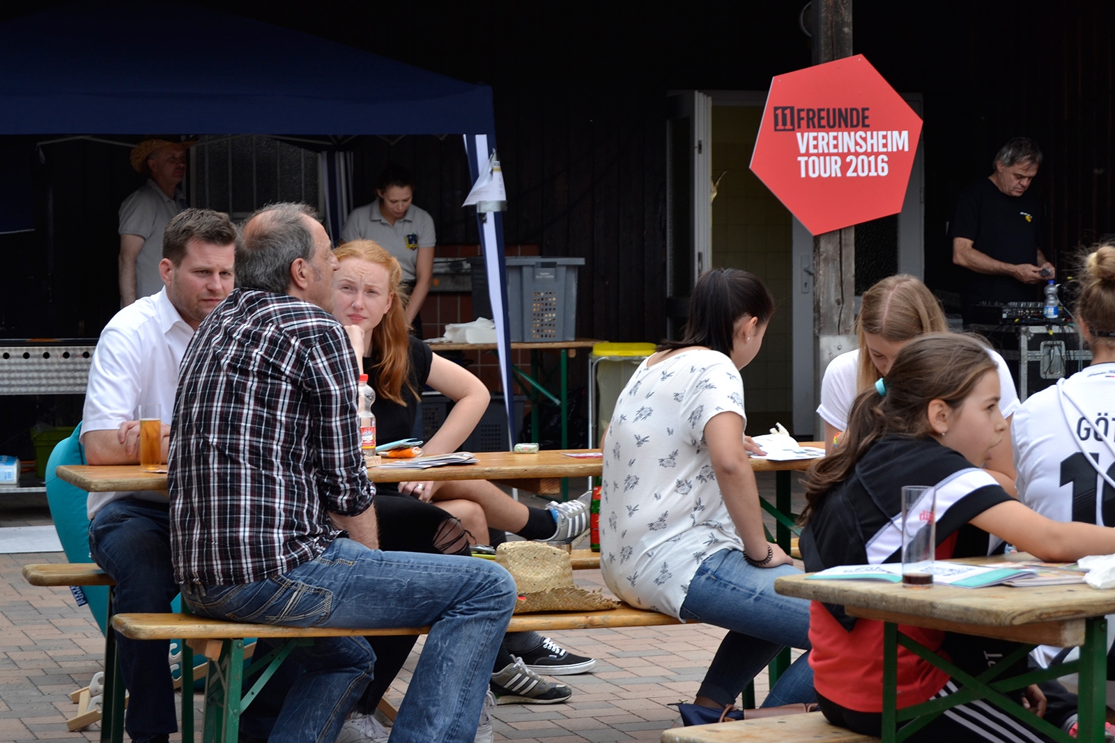 Nach der Ehrenrunde im letzten Jahr kam nun auch die 11FREUNDE Vereinsheimtour nach Bielstein. Anlässlich der Europameisterschaft in Frankreich brachte das Magazin für Fußballkultur das Public Viewing am 11. Juni in unser Vereinshaus. (Fotos: Benjamin Gries, Christopher Pethe)