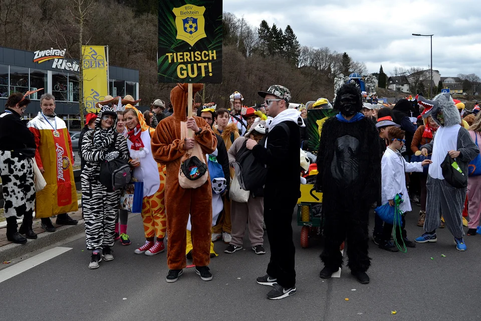 Mit einem großen Tross von Vereinsmitgliedern nahm unser Verein am traditionellen Rosenmontagszug des Karnevalsvereins Bielstein am 27. Februar 2017 in Bielstein teil (Fotos: Achim Schulz, Benjamin Gries).