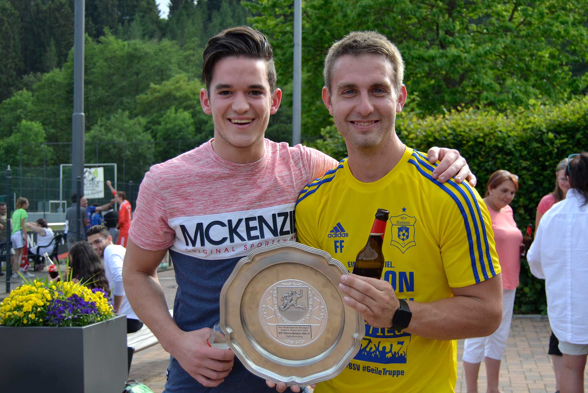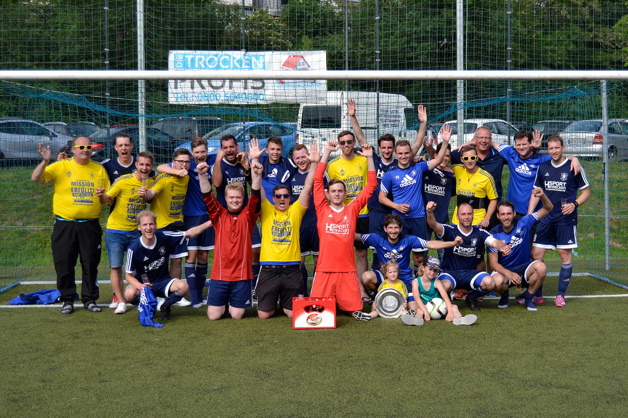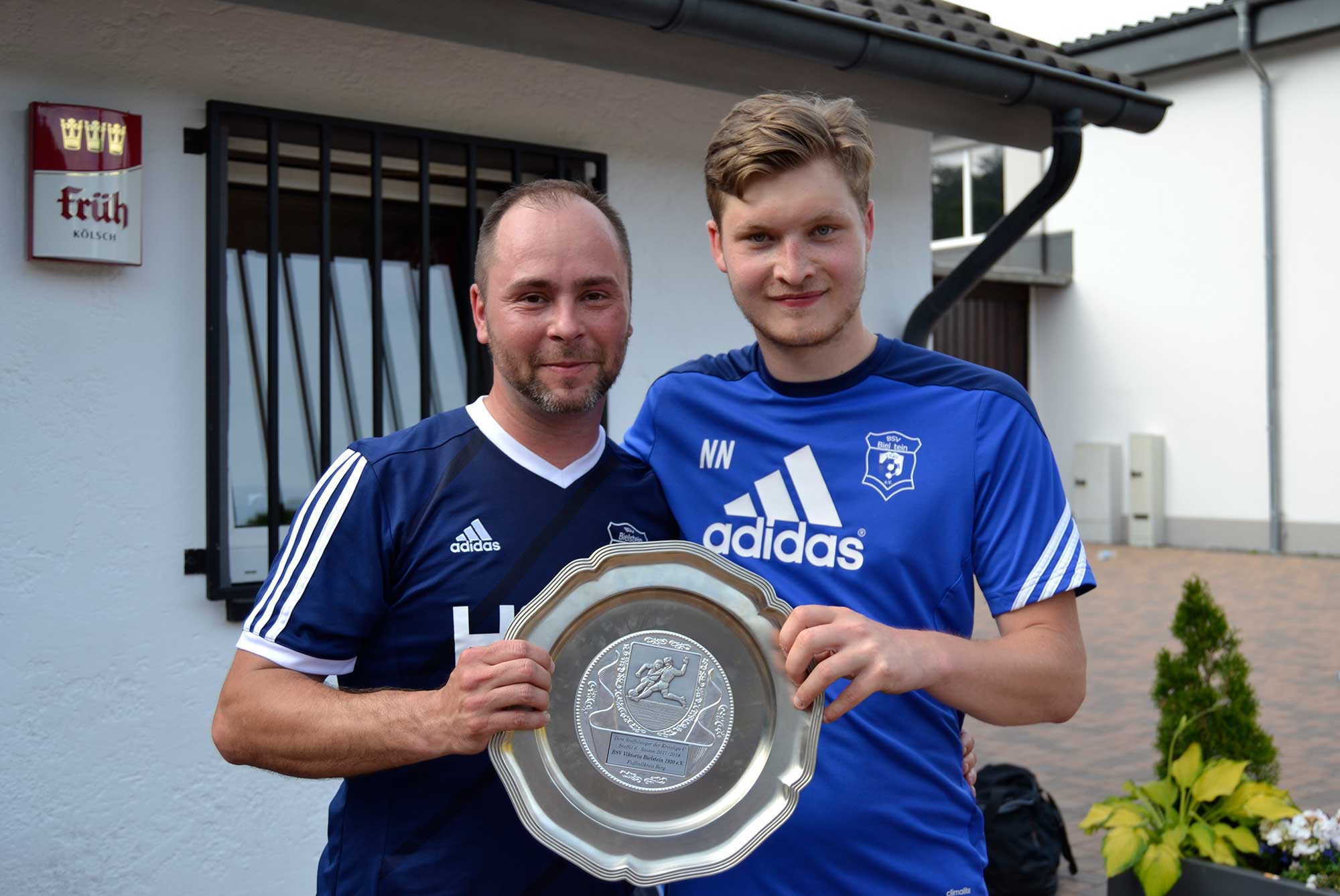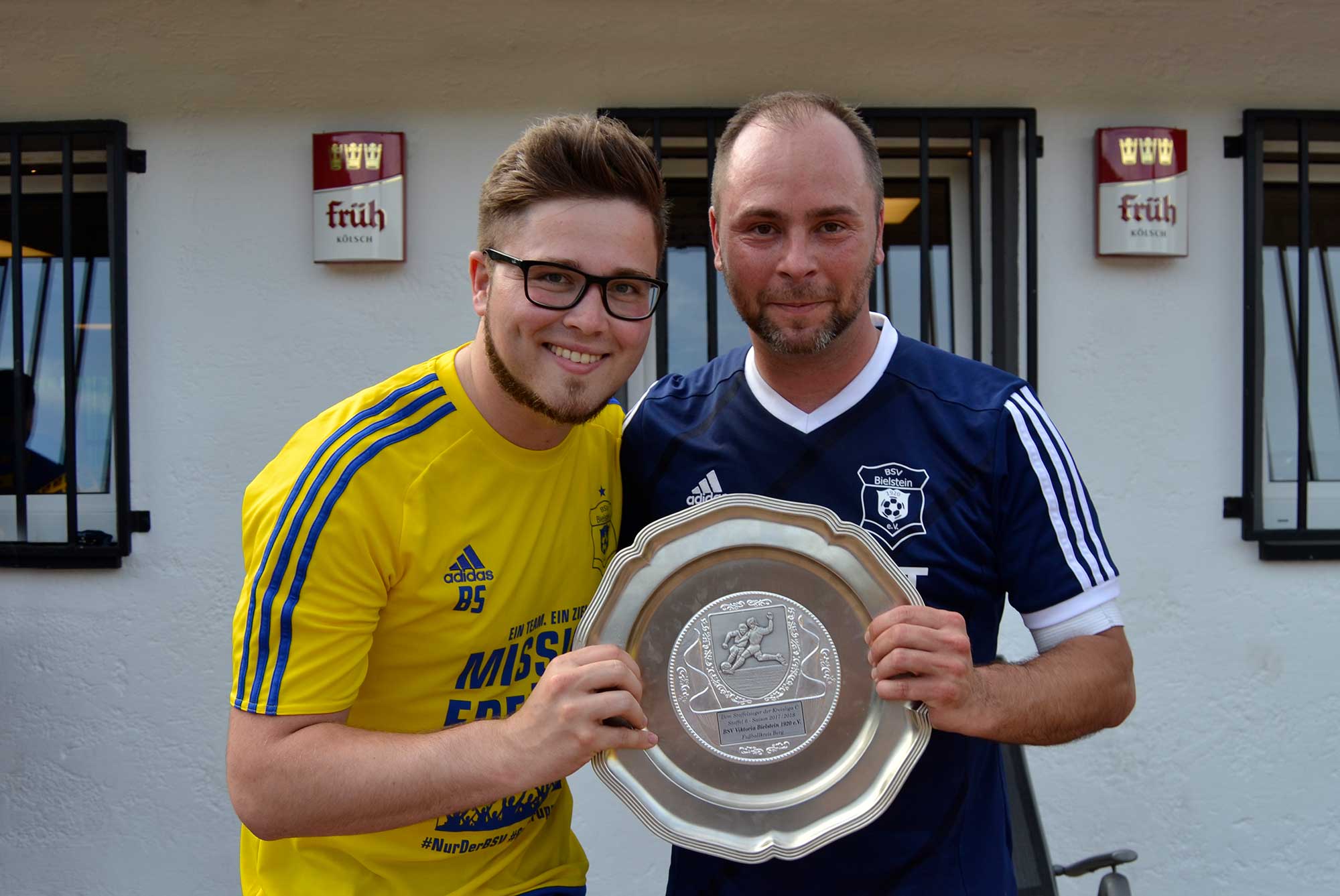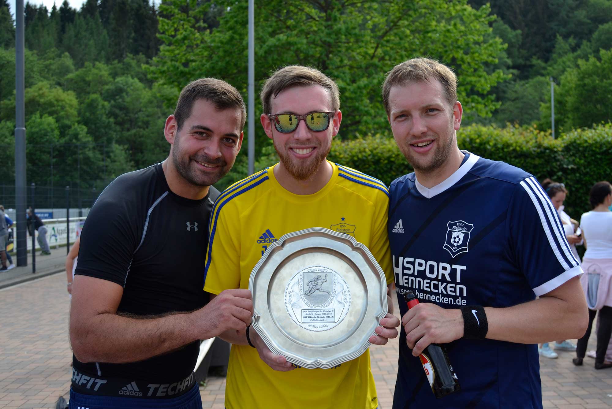 Nach langer Wartezeit bekam unsere Erste Herren am Sonntag, den 27. Mai 2018, endlich die Schale überreicht. Stellvertretend für die Mannschaft nahm der langjährige ehemalige Kapitän Ronnie Schmidt die Schale aus den Händen von Sabrina Räbsch entgegen.