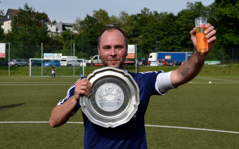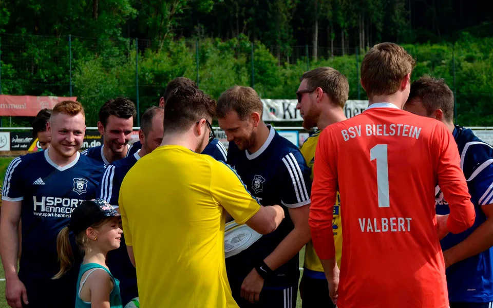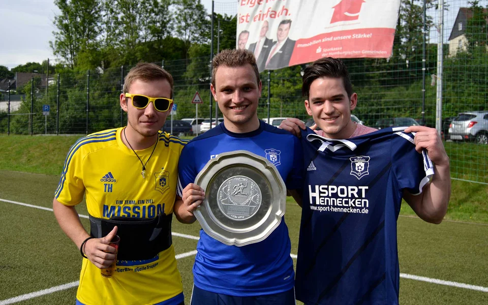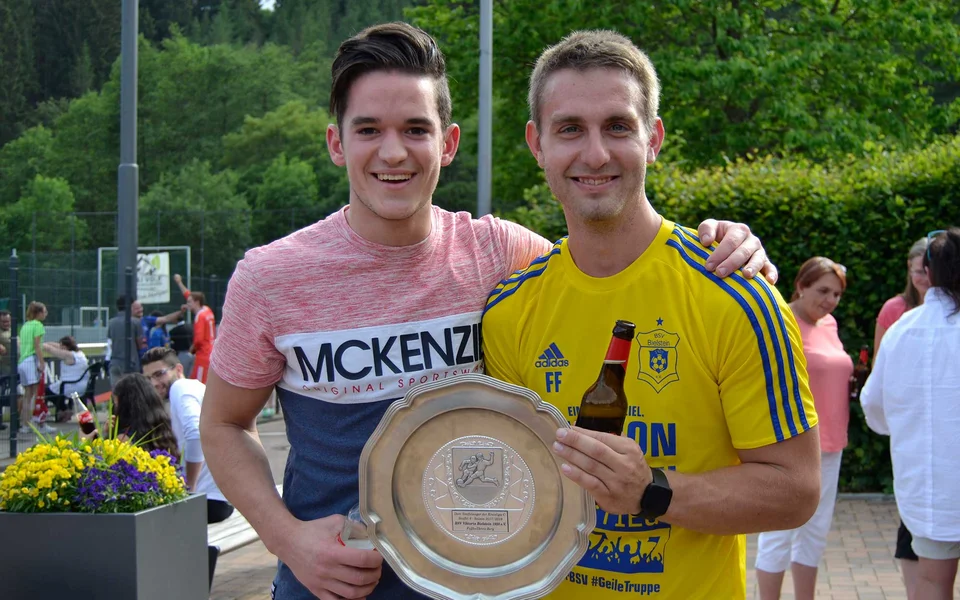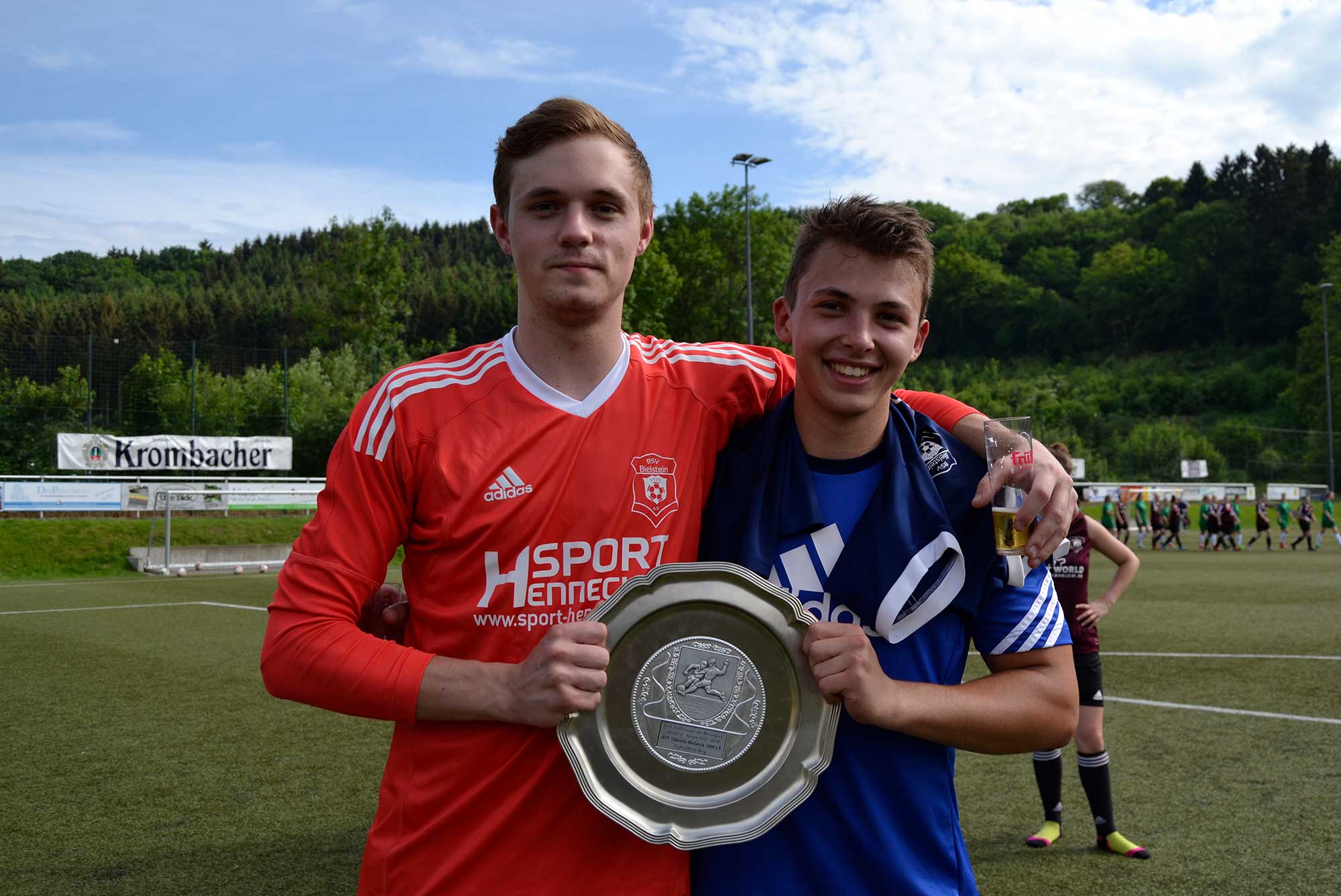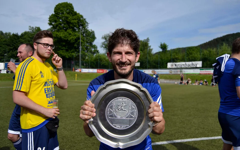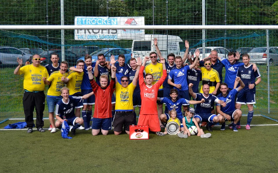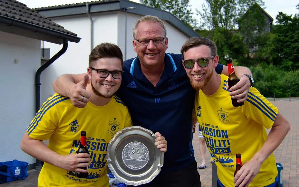 Nach langer Wartezeit bekam unsere Erste Herren am Sonntag, den 27. Mai 2018, endlich die Schale überreicht. Stellvertretend für die Mannschaft nahm der langjährige ehemalige Kapitän Ronnie Schmidt die Schale aus den Händen von Sabrina Räbsch entgegen.