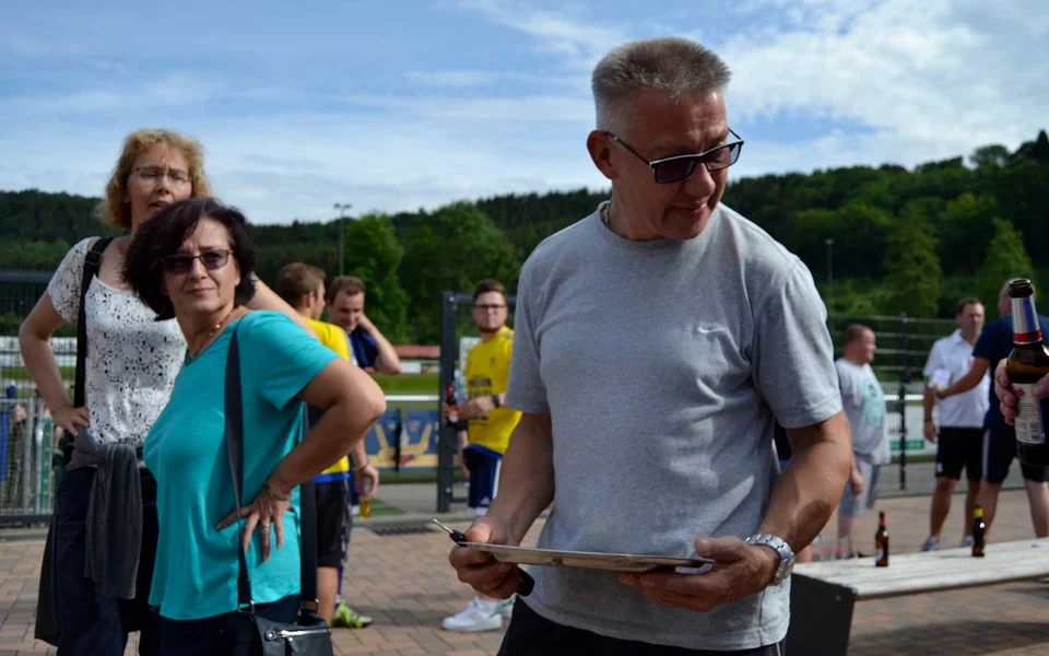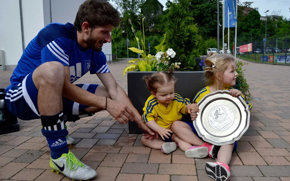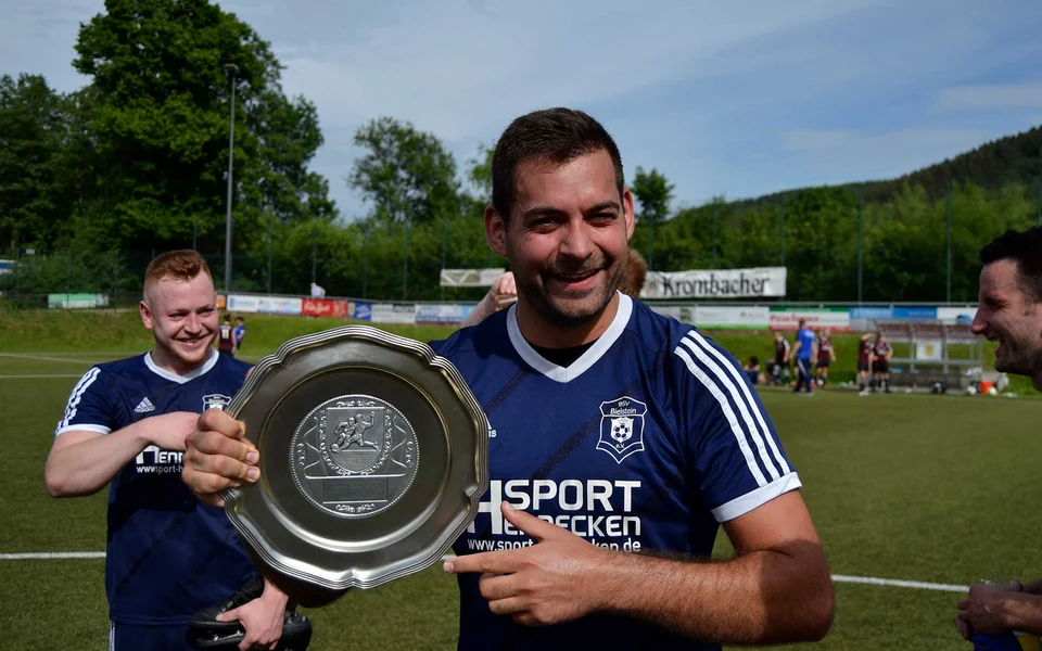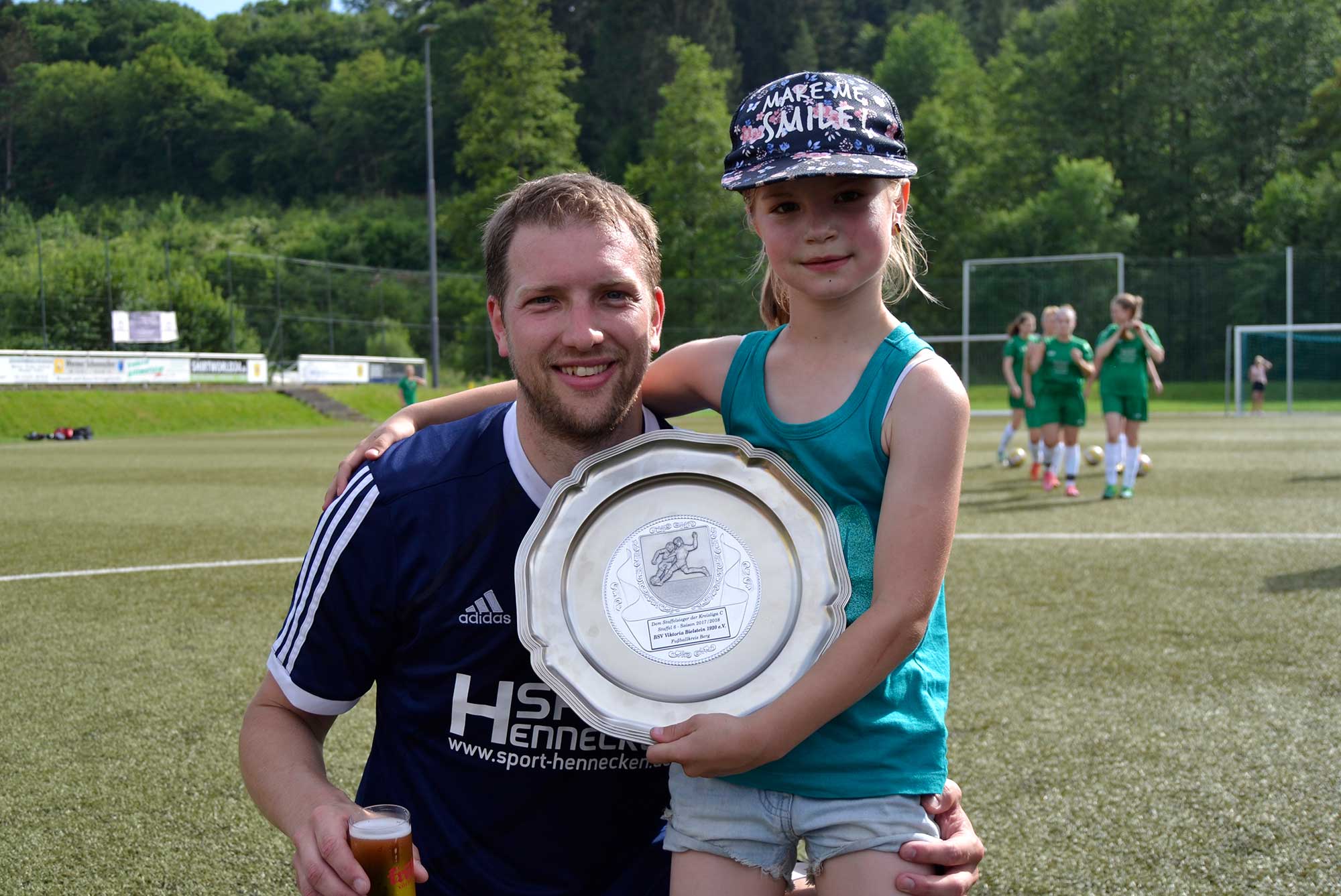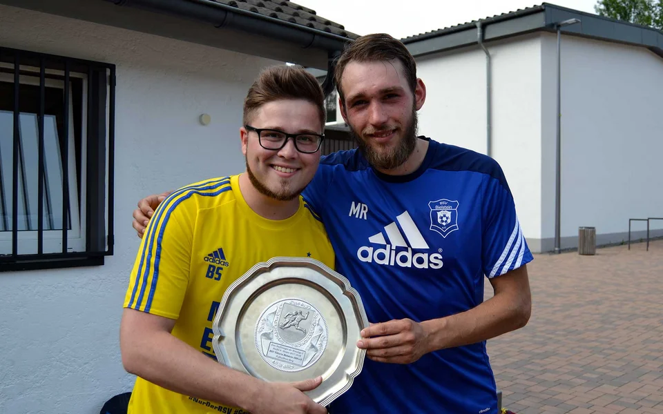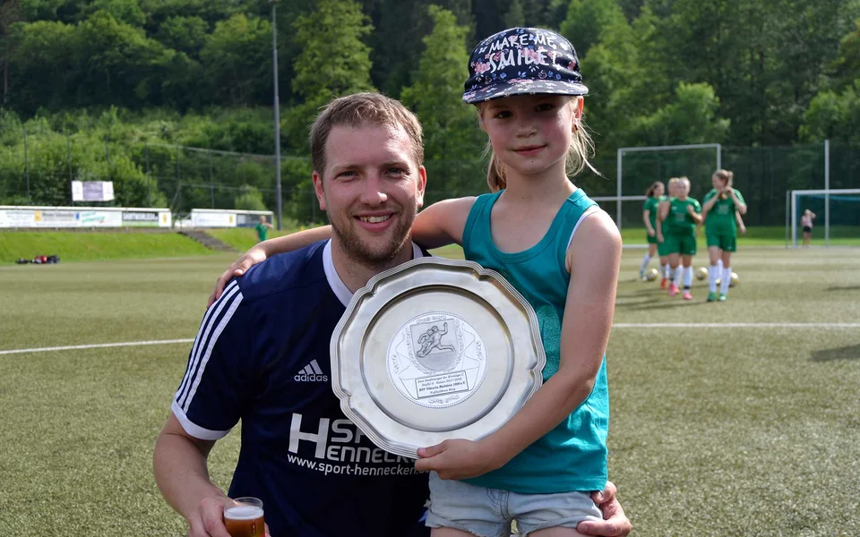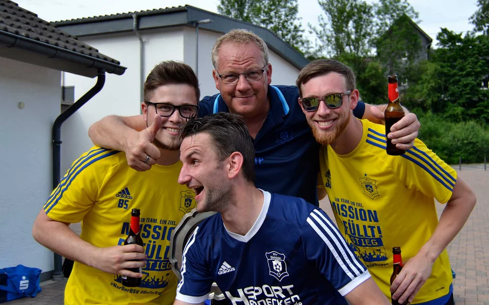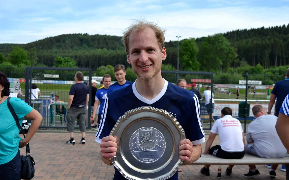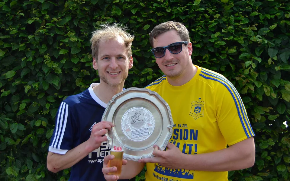 Nach langer Wartezeit bekam unsere Erste Herren am Sonntag, den 27. Mai 2018, endlich die Schale überreicht. Stellvertretend für die Mannschaft nahm der langjährige ehemalige Kapitän Ronnie Schmidt die Schale aus den Händen von Sabrina Räbsch entgegen.