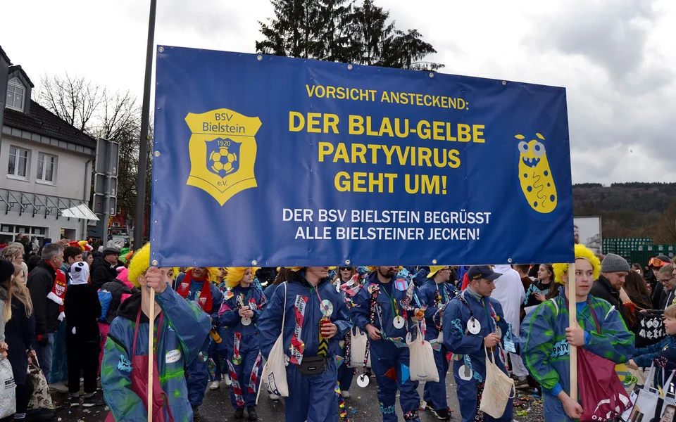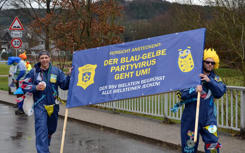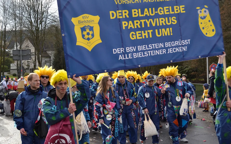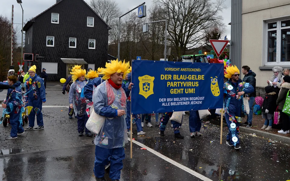 Mit einem großen Tross von Vereinsmitgliedern nahm unser Verein am traditionellen Rosenmontagszug des Karnevalsvereins Bielstein am 4. März 2019 in Bielstein teil (Fotos: Lukas Burkhardt, Benjamin Gries).