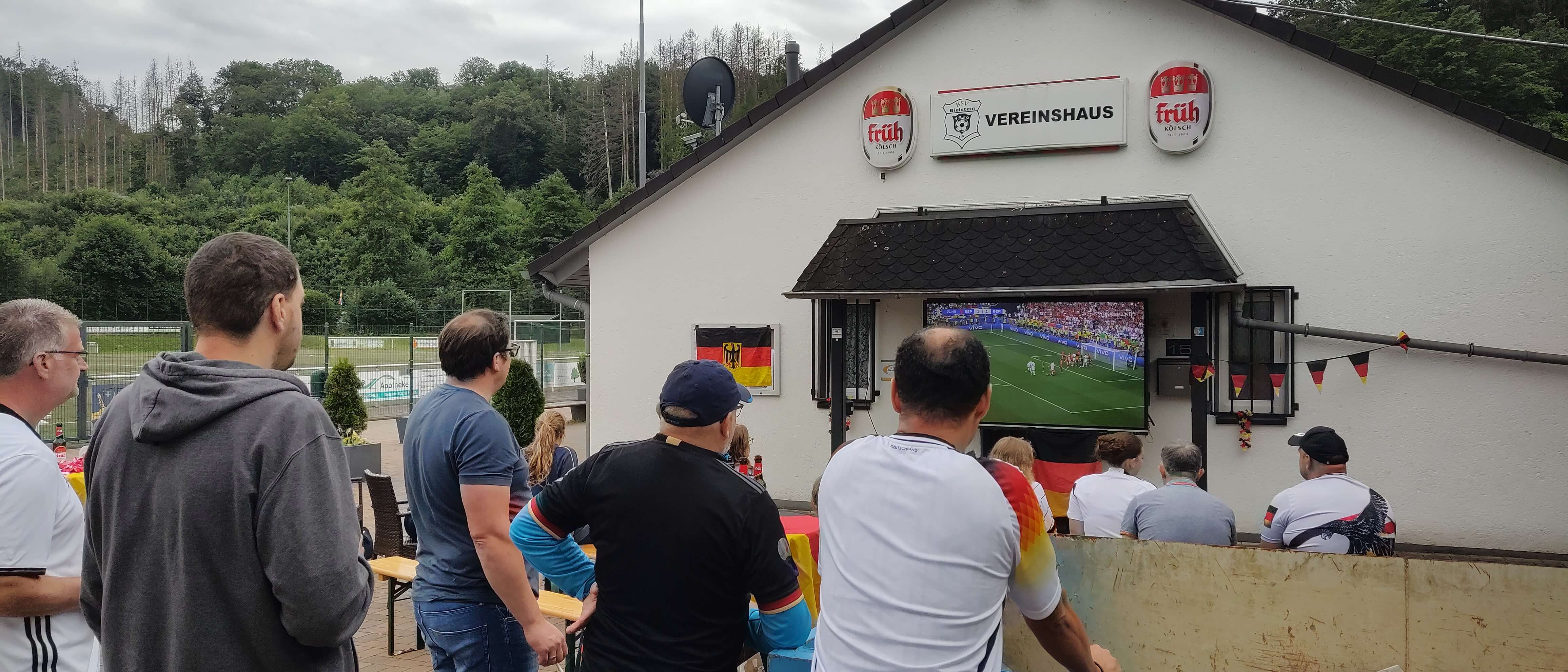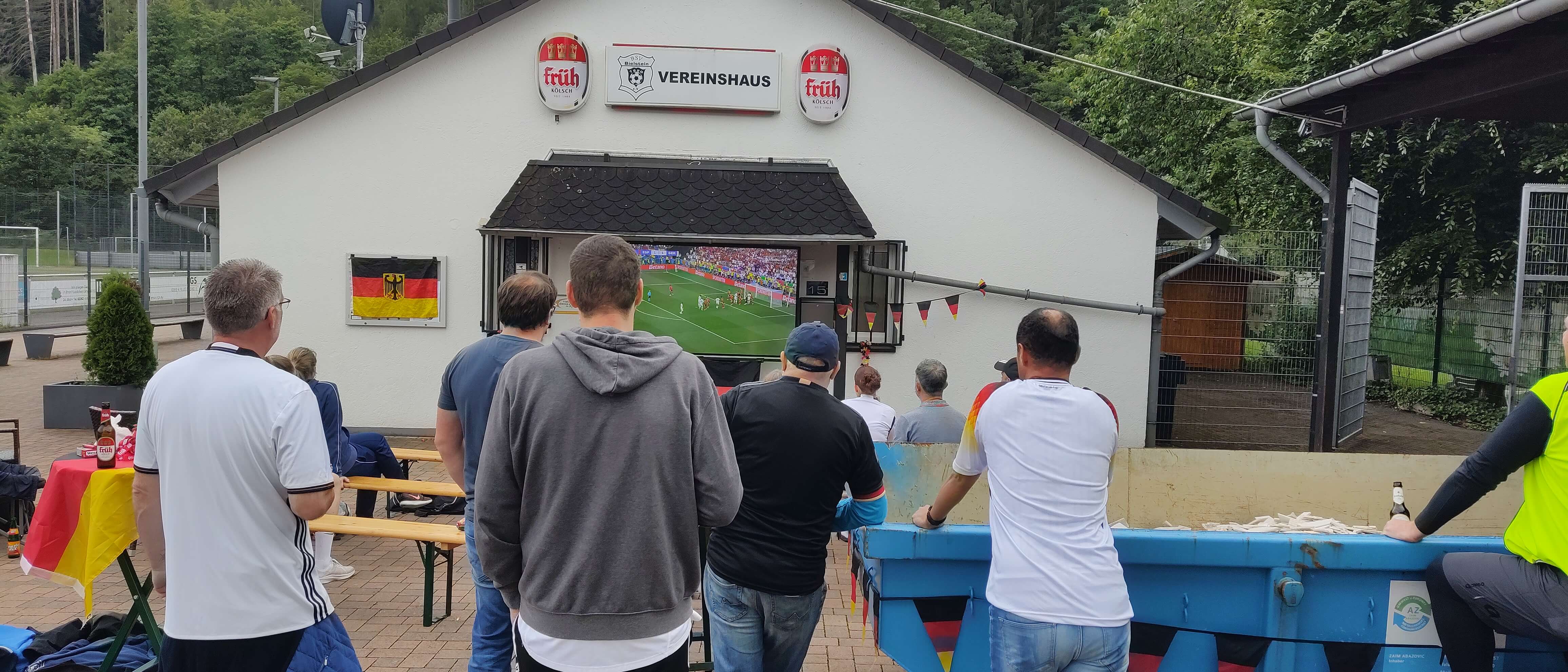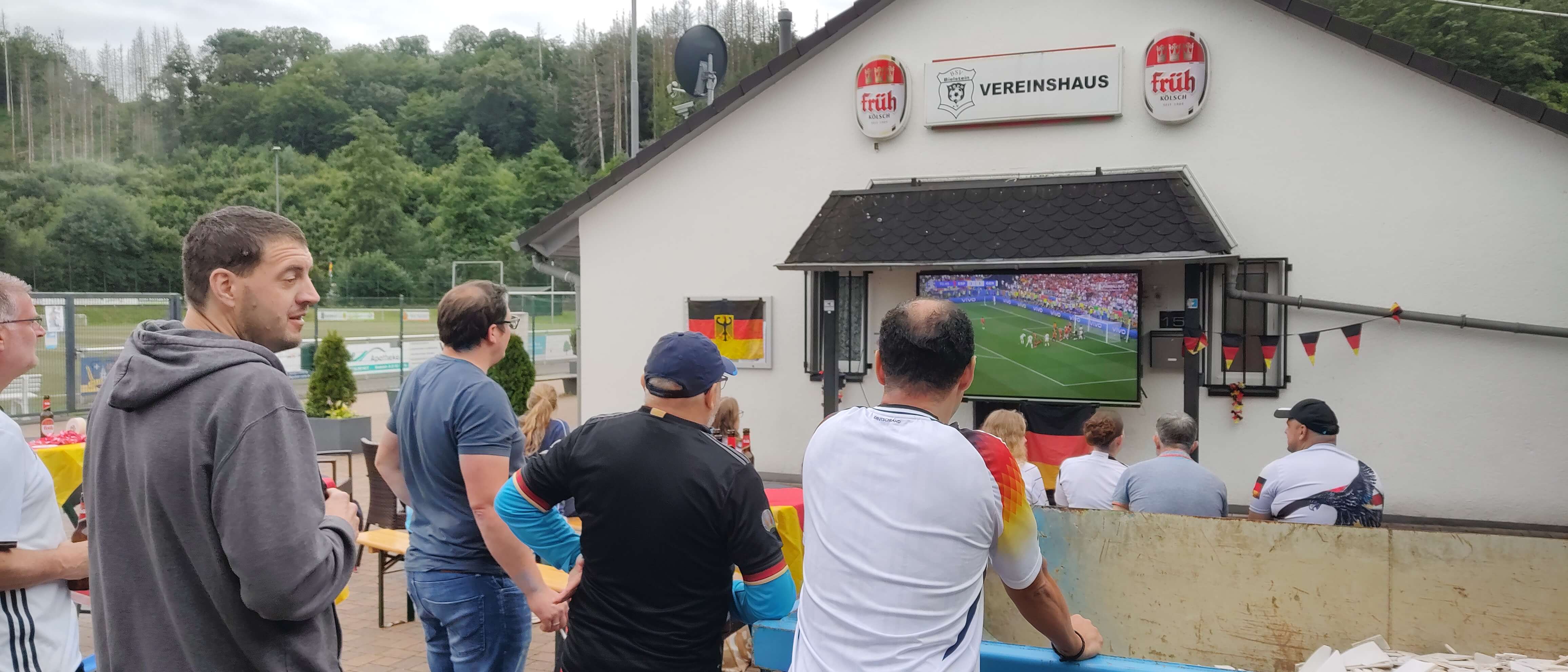 Wusiala, Cucurella, Taylor - am Ende steht das unglückliche Ausscheiden aus der Heim-EM 2024. Zahlreiche Gäste des Public Viewings am Bielsteiner Sportplatz waren dabei und wissen, wo dein Auto steht, Anthony (Fotos: Benjamin Gries).