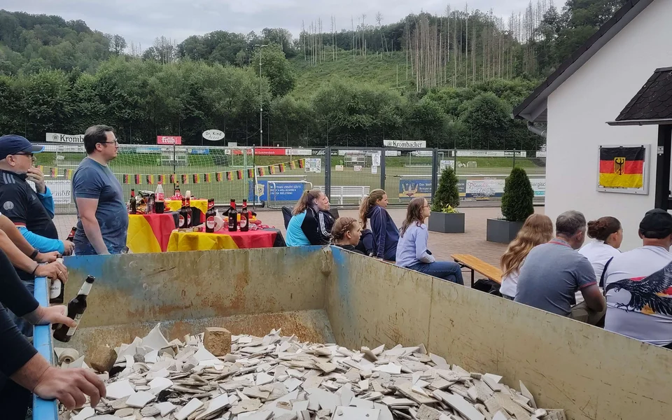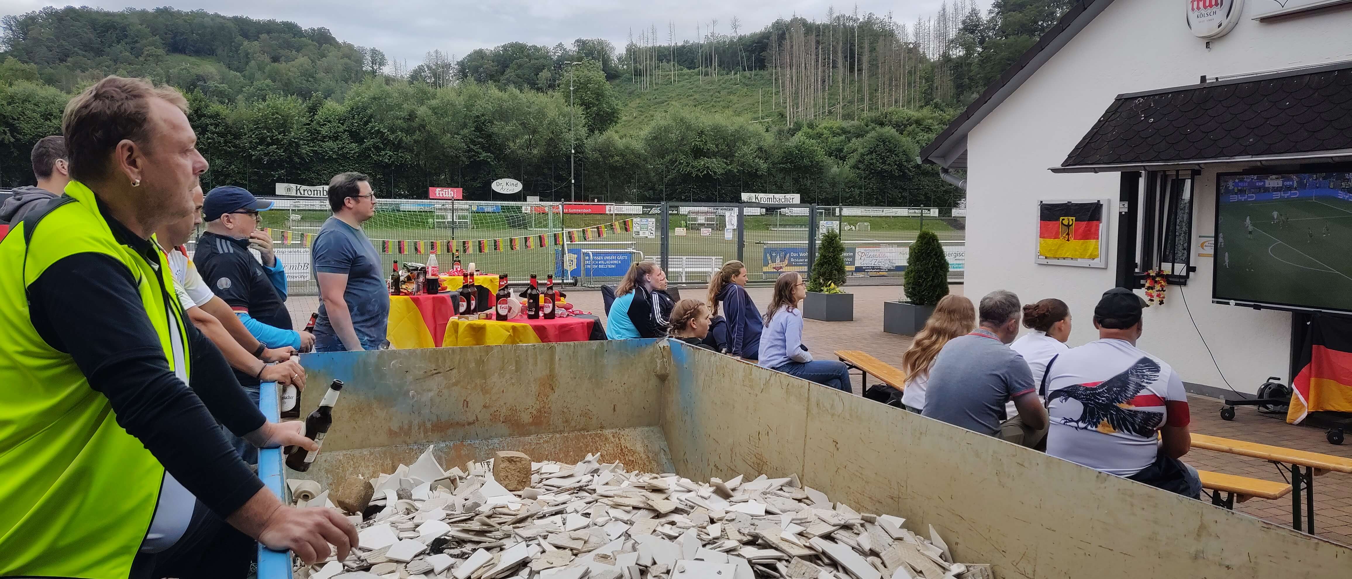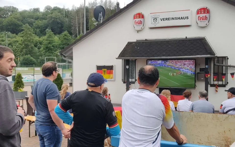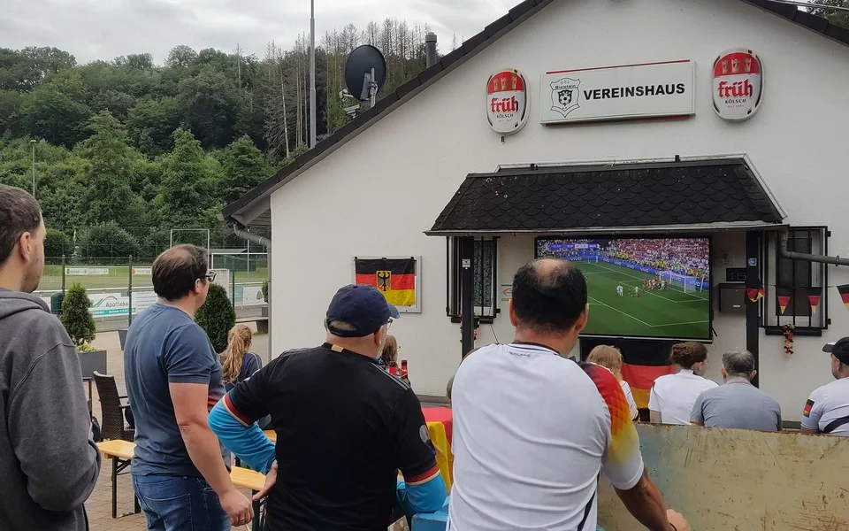 Wusiala, Cucurella, Taylor - am Ende steht das unglückliche Ausscheiden aus der Heim-EM 2024. Zahlreiche Gäste des Public Viewings am Bielsteiner Sportplatz waren dabei und wissen, wo dein Auto steht, Anthony (Fotos: Benjamin Gries).