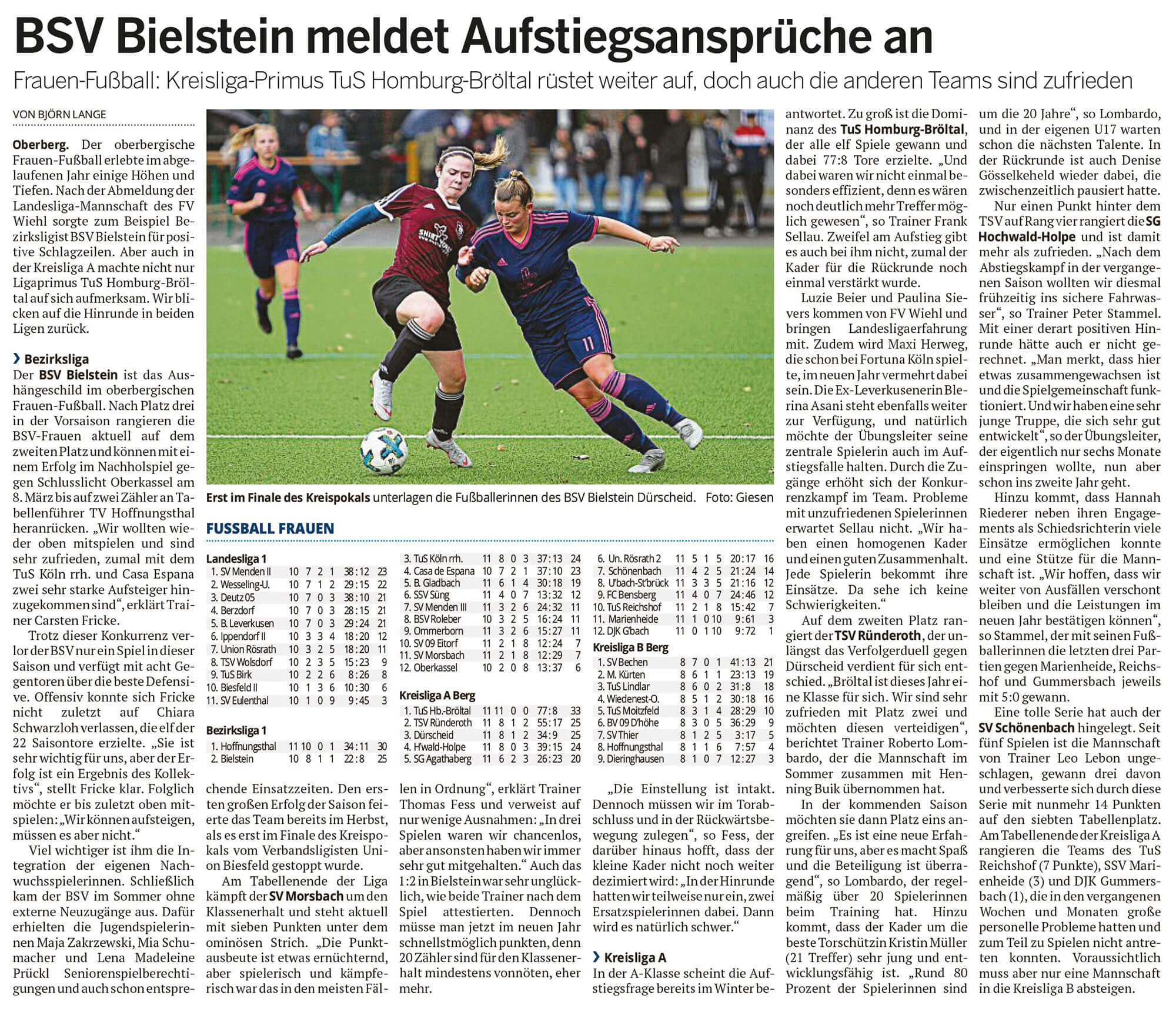 Der Artikel erschien am 8. Januar 2020 in der Oberbergischen Volkszeitung und berichtet über die Saison unserer Damenmannschaft.