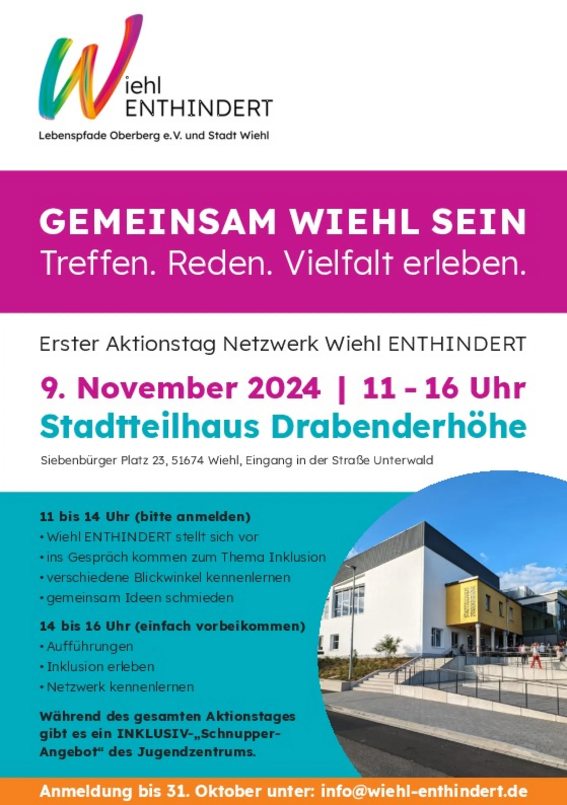 Am 9. November 2024 findet der erste Aktionstag vom Netzwerk „Wiehl ENTHINDERT” im neuen Stadtteilhaus in Drabenderhöhe statt.