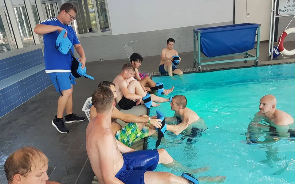 Am vergangenen Freitag absolvierte unsere Dritte Mannschaft eine Aquafitness-Ganzkörpereinheit in der Wiehler Wasser Welt. Spieler Florian Götte machte eine gute Rolle als Bademeister und Fitness-Coach.
