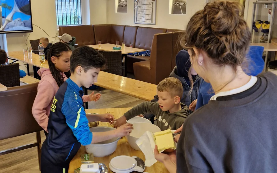 Der Schwerpunkt lag natürlich auf dem Fußballspielen, bei dem die Kinder ihre Fähigkeiten verbessern und Teamgeist entwickeln konnten. Ein Punktespiel sorgte für den nötigen Wettkampfergeiz. Doch auch abseits des Spielfeldes wurde den Kindern ein abwechslungsreiches Programm geboten. So konnten vor allem die Jüngeren ihrer Kreativität beim Färben von Ostereiern freien Lauf lassen, gemeinsam Waffeln backen oder sich auf dem nahegelegenen Spielplatz austoben. Jeden Tag gab es frisch gekochtes Mittagessen für die Kinder und auch sonst war für die Verpflegung bestens gesorgt.