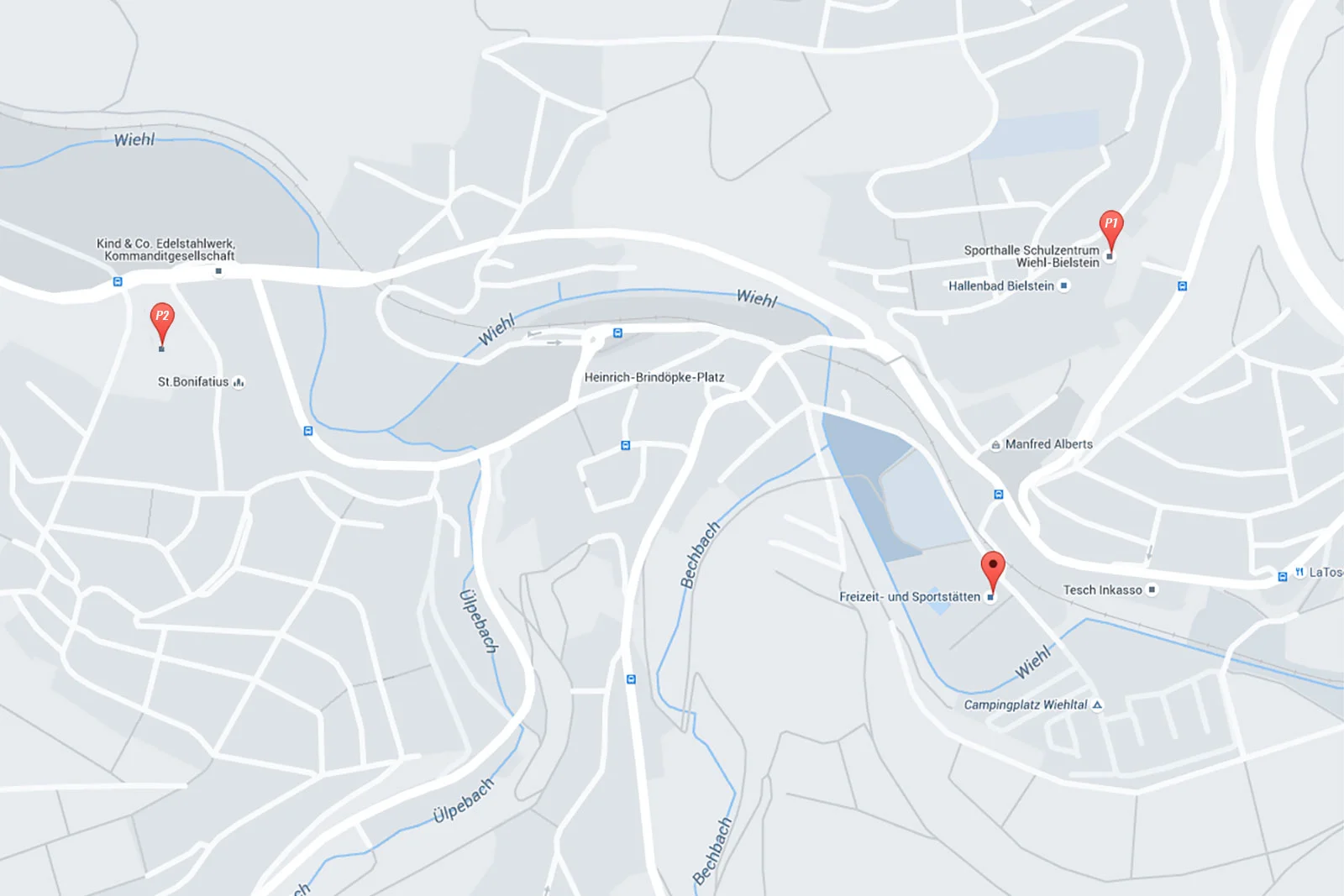 - Ist der Parkplatz am Sportplatz voll, werden die Gäste gebeten, den Parkplatz am Schulzentrum (P1) bzw. bei dem Unternehmen Kind & Co. (P2) zu nutzen. Die Parkplätze am Sportplatz werden schon nach wenigen Minuten belegt sein. Wir empfehlen daher allen Gästen, die Parkplätze am Schulzentrum bzw. bei Kind & Co. direkt anzufahren, um unnötige Wartezeiten zu verhindern.