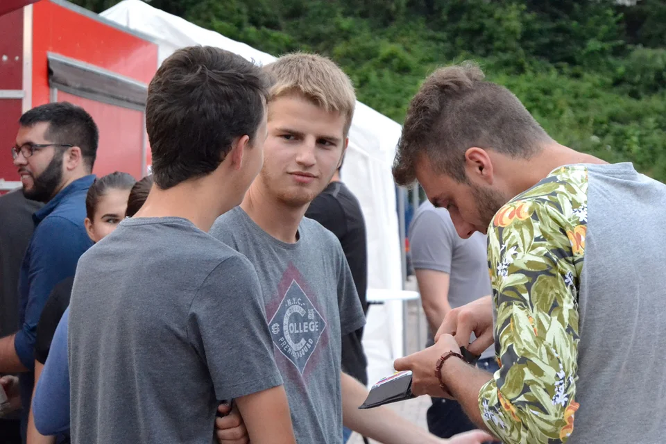 Am spielfreien Freitag feierte der erste Homburger Fußballabend seine Premiere. Zahlreiche Vereine und Interessenten wollten sich die Feier auf dem Vorplatz der Dr. Kind Arena in Bielstein nicht entgehen lassen, wo DJ Armin am Pult seine Musik auflegte.