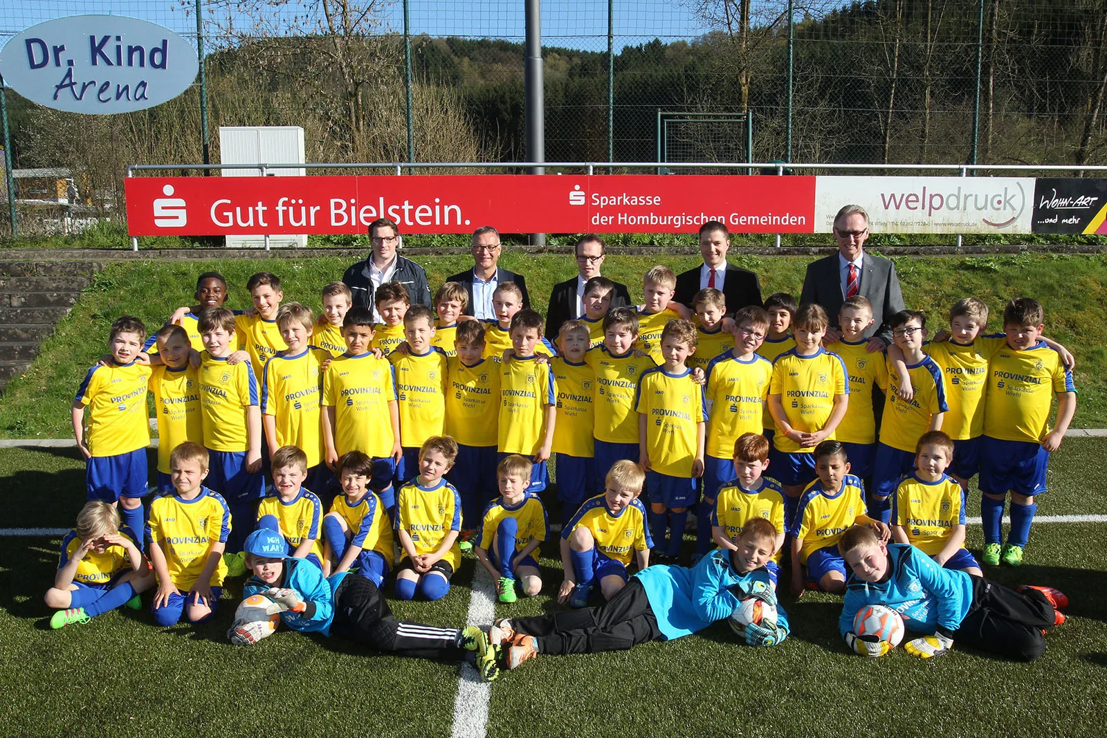 Die Trikotsponsoren von der Sparkasse Wiehl und der Provinzial hatten das Projekt finanziell unterstützt und zeigten sich sehr erfreut über die Begeisterung des Fußballnachwuchses. „Von Kopf bis Fuß durchgestylt – fast schon wie kleine Profis“, befand Sparkassenvorstand Hartmut Schmidt, der ebenso wie der Bielsteiner Geschäftsstellenleiter Peter Braun und der Turnierorganisator Dominik Thoenes an der Trikotpräsentation teilnahm.