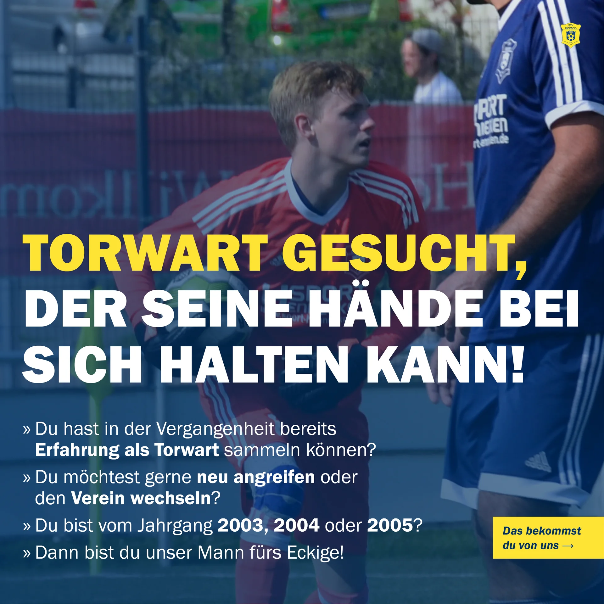 Du hast in der Vergangenheit bereits Erfahrung als Torwart sammeln können? Du möchtest gerne neu angreifen oder den Verein wechseln? Du bist vom Jahrgang 2003, 2004 oder 2005? Dann bist du unser Mann fürs Eckige!