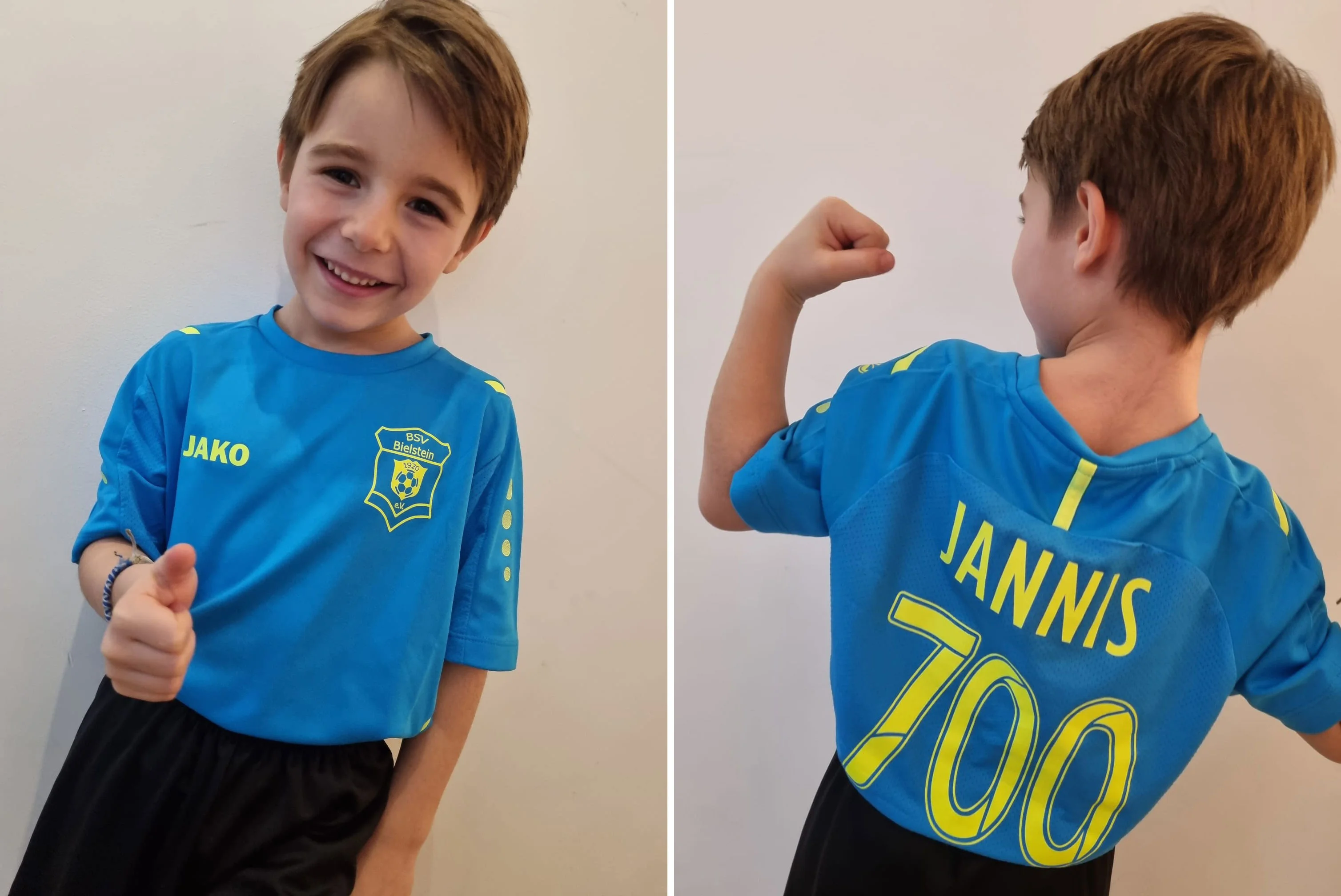 Der Jubilar wurde derweil im Vorfeld eines Trainings mit einer kleinen Überraschung geehrt: Jannis erhielt ein Trikot mit der Rückennummer 700.