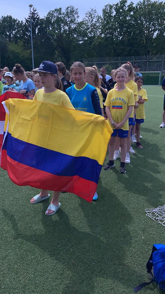 Am Freitagmorgen machten sich unsere Mädels zusammen mit zahlreich mitgereisten Fans (aka Eltern) auf den Weg nach Bremen - mit der Aussicht, am Abend schon die ersten Spiele zu bestreiten. Im Vorfeld war den teilnehmenden Mannschaften ein Land zugeteilt worden. das sie bei der WM vertreten sollten. Unsere U13 Juniorinnen spielten das Wochenende als Kolumbien, die U15 Juniorinnen mit zwei Teams als England und Italien. Das Turnier startete mit einer großen Eröffnungsfeier, bei der insgesamt 79 Teams in den Altersklassen U11 bis U17 einzeln einliefen und bejubelt wurden. Der Samstag sollte ein sehr langer und toller Tag werden. Die ersten Turnierspiele begannen bereits um 8:00 Uhr morgens und gingen bis in den späten Abend. Sonntagmorgen ging es wieder früh zu der Sportanlage, um die Finalspiele auszutragen.