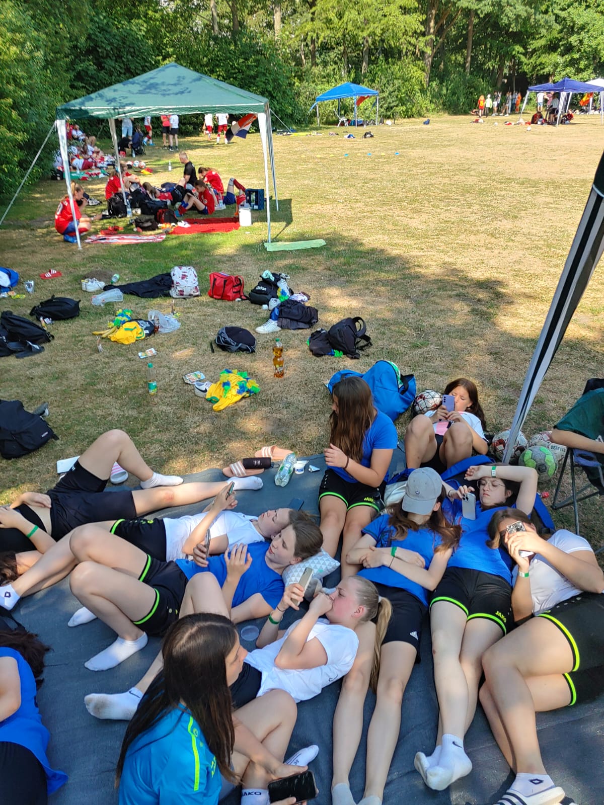 Unsere U13 Mädels waren am Samstag in der Gruppenphase nicht zu stoppen und beendeten diese als Siegerinnen. In den darauffolgenden Qualifikationsspielen sollte es nicht schlechter laufen, erst am Ende eines langen heißen Tages mussten sich die Mädels im letzten Spiel geschlagen geben. Am Sonntag startete das Team wieder mit voller Kraft und konnte erst im 9-Meter-Schießen gestoppt werden. Zum Schluss belegten unsere Mädels der U13 Juniorinnen den sechsten Platz bei 26 teilnehmenden Mannschaften. Nach den Finalspielen erfolgte noch eine schöne Siegerehrung, bei der jede Spielerin einen kleinen Pokal bekam.