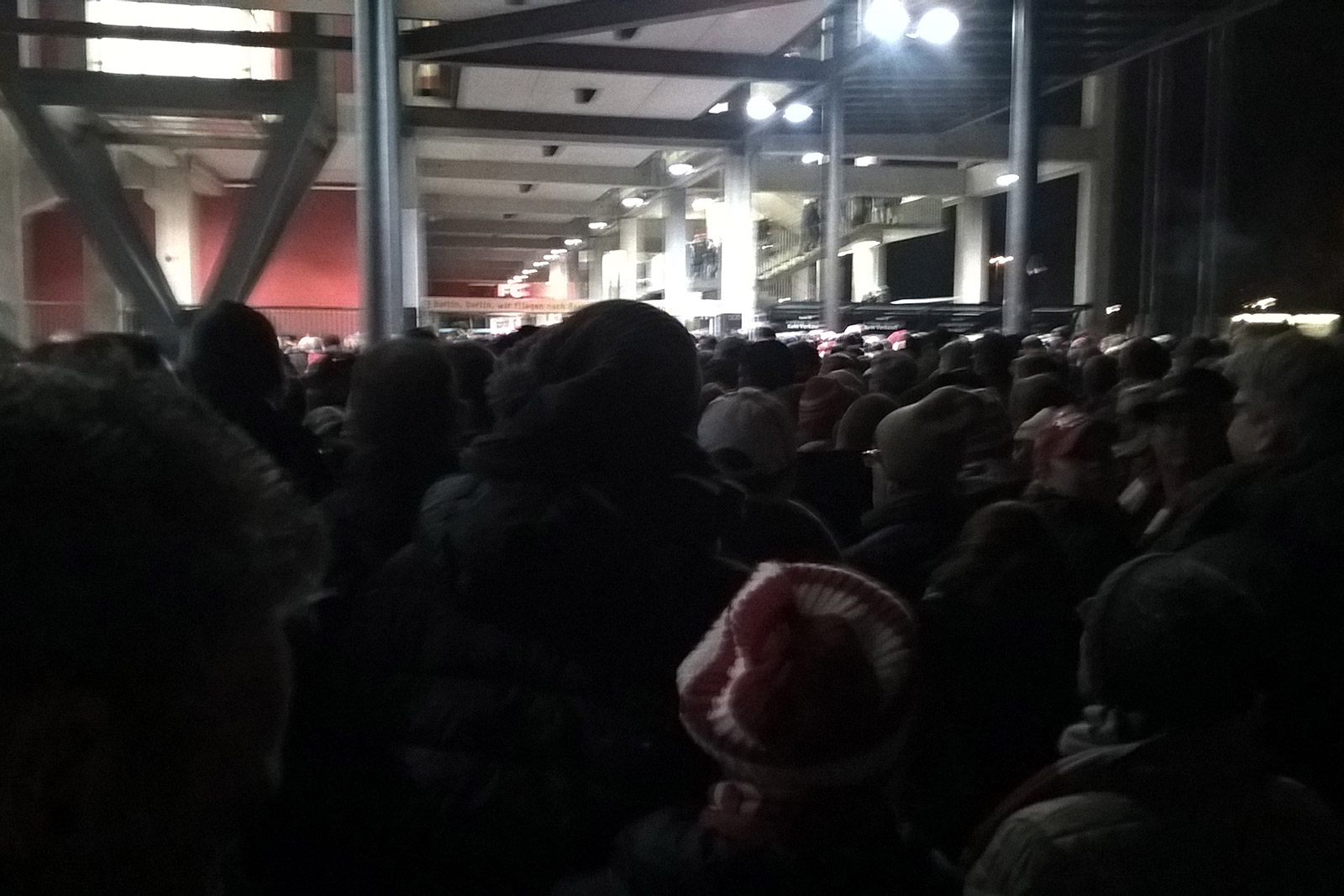 Dabei ging es für unsere Jungs von Ründeroth aus zunächst mit dem Zug nach Deutz, wo bereits hunderte begeisterte Fans auf die Ankunft unserer Mannschaft warteten. Zahlreiche freundliche Ordner in Fankleidung eskortierten unsere Mannschaft schließlich zur Straßenbahn, von wo aus es nach nochmaligem Umsteigen schließlich zum eigentlichen Ziel – dem Rhein-Energie-Stadion – ging. Dort angekommen, bekamen unsere Jungs für magere vier Euro von den freundlichen Bedienungen noch eine große Apfelschorle geschenkt. Nach dem Verzehr des leckeren Kaltgetränks ging es dann schließlich zum Eingangsbereich. Die sehr lange Schlange konnte man umgehen, nachdem ein Ordner unsere Mannschaft erkannt und ein Seitentor für sie geöffnet hatte. So schaffte man es gerade noch rechtzeitig zum Anpfiff ins Stadion.