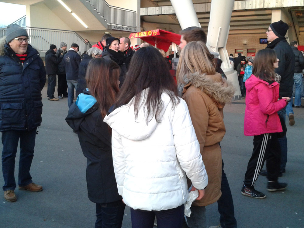 Als Belohnung für die Einsatzbereitschaft der Eltern fuhren die Trainer der U15 Juniorinnen mit Eltern und Spielerinnen zum Bundesliga-Spiel Leverkusen gegen Stuttgart vom 24. Spieltag - dank einer Teilnahme an einer Bewerbungsrunde zu einem Ehrenamtspreis war der Eintritt kostenlos.