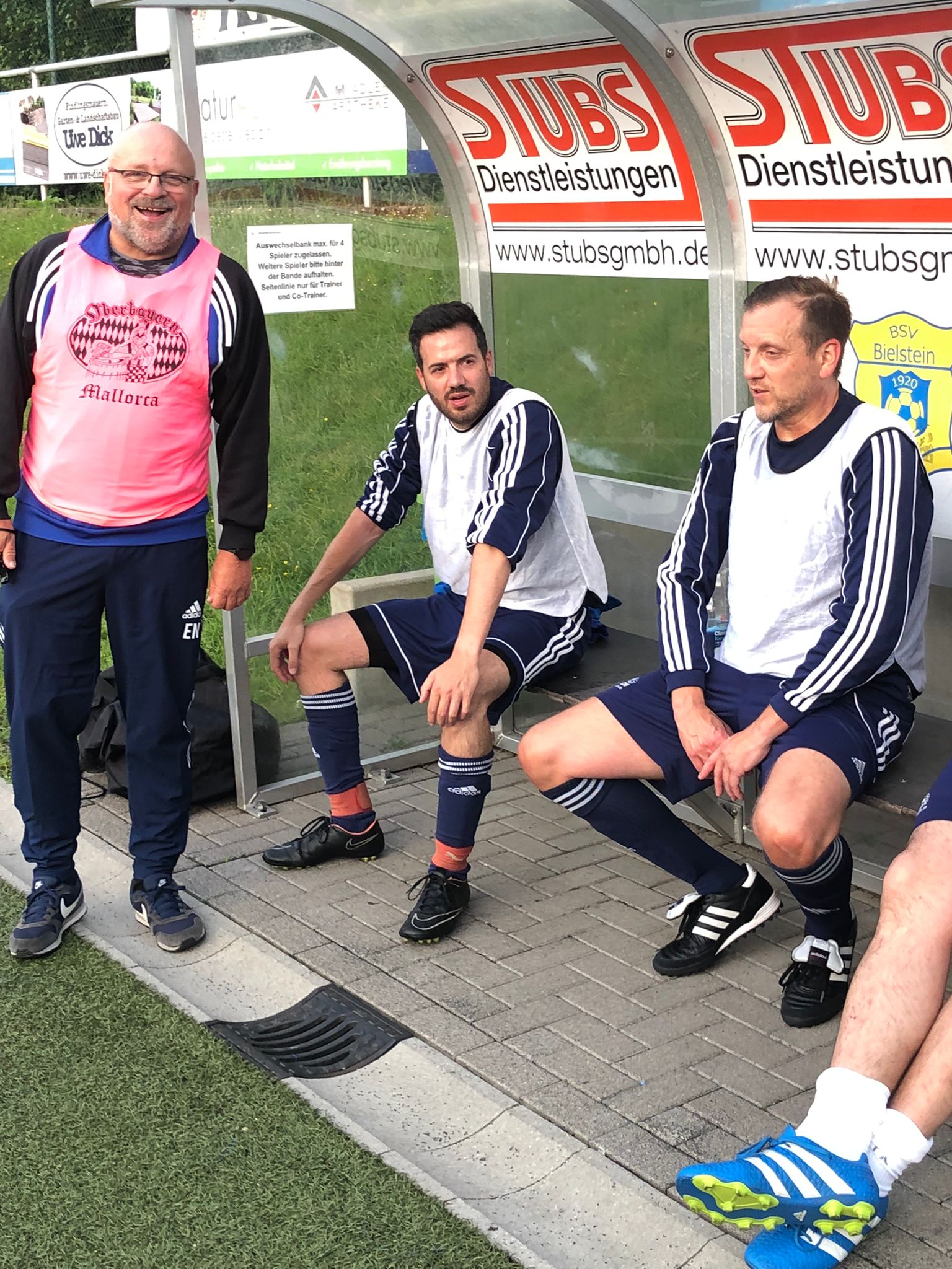 Nach langer Vorbereitung auf das Alte-Herren-Duell gegen den TV Hoffnungsthal standen 15 Akteure zur Verfügung. Mit vielen kleinen Unsicherheiten und Ungenaugkeiten im Passspiel wurde der Gegner in der Anfangsphase stark gemacht, Tore sollten aber noch keine fallen. Nach ca. 15 Minuten war der Druck dann aber so groß, dass unser Gast im Minutentakt schnell auf 0:3 stellte, auch wenn sich unsere Mannen nach Kräften wehrten. In der Folge wurde etwas umgestellt und der BSV kam besser ins Spiel, unser Mittelstürmer Jens Schacht konnte nun ebenfalls besser in Szene gesetzt werden und es entstanden auch die ersten eigenen Chancen. Nach einem sehenswerten Angriff erzwang Hansi Wölfel ein Eigentor des Gegners, welches im unmittelbaren Gegenzug mit dem 1:4 gekontert wurde. Nichtsdestotrotz hatte unsere Mannschaft weitere Chancen, von denen Hansi Wölfel nach Flanke von Horst Bretz eine zum 2:4 per Kopf verwerten konnte. Das war dann auch der Halbzeitstand.