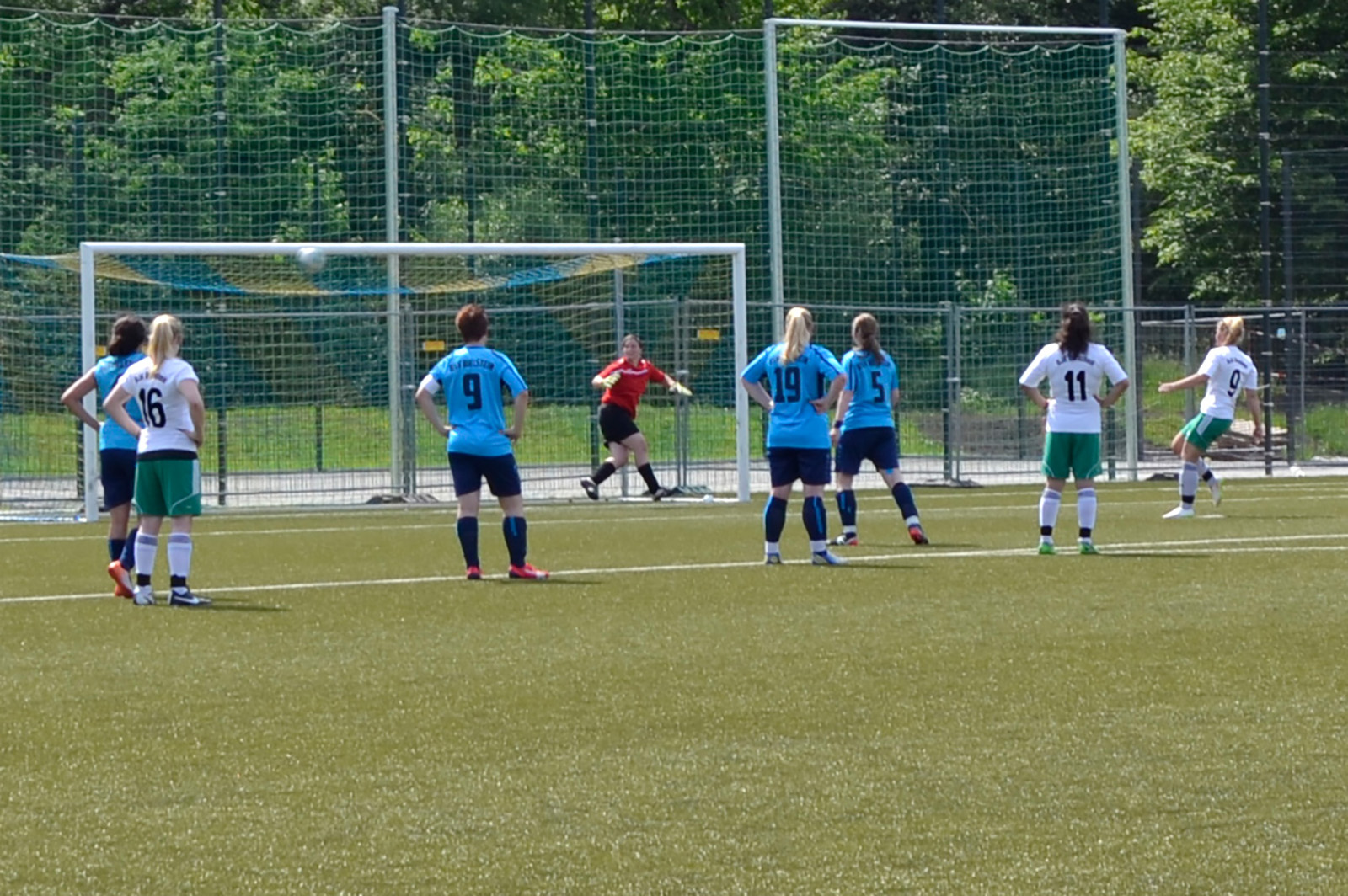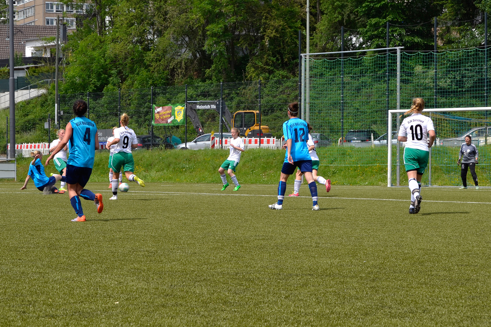 Beide Mannschaften benötigten nur wenige Minuten, um ins Spiel zu finden. So entwickelte sich von Beginn an ein offenes Spiel, in dem beide Mannschaften sofort richtig gute Chancen hatten. Erste Nutznießerin war Chiara Schwarzloh, die frei vor dem Tor eiskalt agierte und den Ball zur Bielsteiner Führung im Netz versenkte. Dürscheid reagierte davon unbeeindruckt und glich noch vor der Halbzeit mit einem Strafstoß aus. Unsere Damen wirkten in der Folge verunsichert und schienen nach der Pause Probleme mit dem selbst auferlegten Druck zu bekommen. Dürscheid wusste das zu nutzen und ging durch einen schönen Heber in Führung. Unsere Damen steckten aber nicht auf und erarbeiteten sich nun ihrerseits einige gute Möglichkeiten. In der 70. Minute konnte Annalena Müllenmeister bei einem Schussversuch schließlich nur per Foul gestoppt werden. Den fälligen Strafstoß verwandelte Lisa Hasenburg gewohnt souverän zum 2:2 Ausgleich. Trotz weiterer guter Gelegenheiten blieb es bis zum Schluss bei diesem Ergebnis.