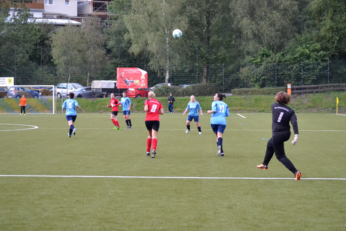 Die ersatzgeschwächten Damen kamen nur sehr schwer ins Spiel und mussten zu Beginn eine etwas stürmischere Anfangsviertelstunde der Eulenthalerinnen überstehen. Nach 15 Minuten aber befreiten sich die Mädels von Minute zu Minute immer mehr und zeigten in der Folge offensiv selbst einige gute Spielzüge. Mit der ersten richtigen Möglichkeit war Anika Bruch dann nach einer Ecke mit dem Kopf zur Stelle und nickte den Ball in den rechten Giebel ein. Noch mit dem Jubeln über das Tor beschäftigt, vergaßen die Damen kurzzeitig einmal das Verteidigen und wären dafür fast sofort bestraft worden: Der Schuss einer Eulenthalerin aus der Distanz ging aber gottseidank nur an den linken Außenpfosten. Die Damen wirkten nun kurzzeitig etwas desorientiert und mussten einen weiteren Pfostentreffer hinnehmen. Erst danach fingen sich die Damen, die ansonsten eine astreine Defensivleistung zeigten, defensiv wieder etwas mehr. Aus einer stabilen Grundordnung agierend, lauerten die Damen nun auf Konter und wären durch die schnelle Ira Wagner fast mit 2:0 in Führung gegangen – leider schoss Ira freistehend vor dem Tor die gegnerische Torhüterin an. Die vergebene Möglichkeit war der Weckruf für die stärkste Phase der Bielsteinerinnen im gesamten Spiel. Die Mädels rissen das Spiel nun an sich und hatten durch kluge Pässe in die Schnittstellen weitere gute Möglichkeiten. Ein Lupfer von Kathi Schmidt über die herausstürmende Torhüterin landete leider nur am Pfosten. Als viele schon mit dem Halbzeitpfiff gerechnet hatten, belohnten sich die Mädels dann doch noch mit einem weiteren Treffer für eine richtig gute erste Hälfte: Nachdem sich die bärenstark aufspielende Rebecca Boxberg an der Grundlinie richtig gut durchgesetzt hatte, legte sie den Ball zurück an den Sechzehner. Dort lauerte Vollblut-Stürmerin Kathi Schmidt, die den Hammer auspackte und mit einem wunderschönen Schuss in den linken Giebel traf. Kurz darauf war Halbzeitpause.