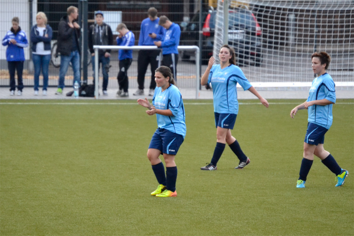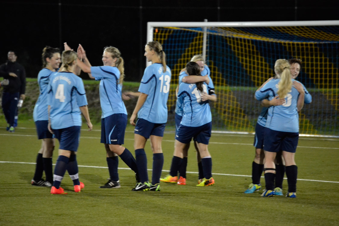 Aus dieser kamen die Damen gedanklich fünf Minuten später. Leider hatte Eulenthal zu diesem Zeitpunkt bereits den Anschlusstreffer erzielt. Die Zuschauer befürchteten schon einen Rückfall in vergangene Zeiten, wurden aber dieses Mal eines Besseren belehrt. Die Mädels nämlich ließen sich nicht beirren und machten einfach da weiter, wo sie in Halbzeit 1 aufgehört hatten: Mit schönen Spielzügen und Pässen auf die schnellen Spitzen und Außenspielerinnen setzte man immer wieder größere Nadelstiche und beschäftigte die klassenhöheren Eulenthalerin defensiv fast über die gesamte Spielzeit. Die Belohnung für die harte Arbeit kam einige Minuten später: nach einem Pass in die Schnittstelle war die Eulenthaler Torhüterin eigentlich zur Stelle. Die schnelle Ira Wagner setzte aber nach und blockte den Klärungsversuch der Eulenthalerin ab. Weil ihr der Ball anschließend direkt vor die Füße sprang, musste Ira den Ball nur noch ins leere Tor einschieben. Die Entscheidung? Fast. Denn obwohl die Mannschaft das Spiel danach eigentlich im Griff hatte, konnten die Eulenthalerinnen in der 90. Minute noch den sehr glücklichen Anschlusstreffer erzielen. Also doch noch einmal zittern? Nur ein bisschen. Die Damen überstanden die Nachspielzeit mit Bravour und bejubelten im Anschluss den verdienten 3:2 Erfolg gegen den Landesligisten aus Eulenthal.