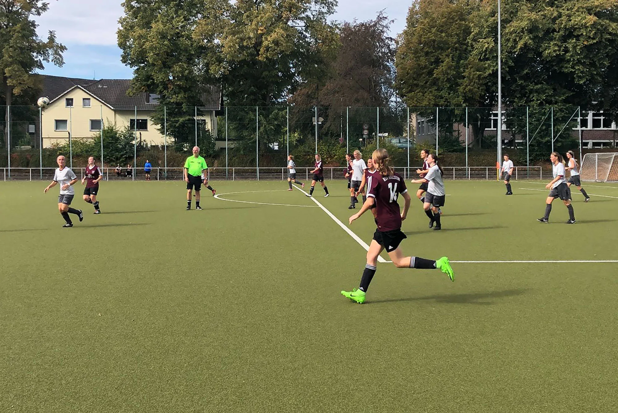 Von Beginn an entwickelte sich ein hart geführtes Spiel, in dem man als Zuschauer den Eindruck gewinnen konnte, dass nur die Bielsteinerinnen Fußball spielen wollten. Dieses Vorhaben wurde nach wenigen Minuten belohnt: Nach einem schönen Pass von Elli Schwarzloh war deren Schwester Chiara Schwarzloh durch und schob den Ball an der herauslaufenden Torhüterin vorbei zum 1:0 ins Tor – die verdiente Führung. Unsere Damen kamen nun immer besser ins Spiel: Nach einem Seitenwechsel konnte Annalena Müllenmeister nur durch ein hartes Foul gebremst werden. Der Schiedsrichter ließ den Vorteil laufen, den Gina Krämer mit einem schönen Schlenzer ins lange Eck zum 2:0 verwertete. Das Spiel wurde nun noch einmal härter, was unsere Damen aber nicht wirklich beeindruckte. Im Gegenteil: Nach einem erneuten Ball in die Tiefe war es Chiara Schwarzloh, die mit ihrem zweiten Treffer am heutigen Tag auf 3:0 erhöhte.