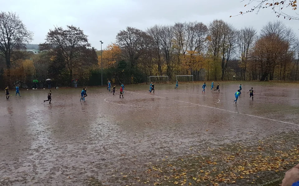 "Ohne Schwimmflügel geht hier nichts", scherzte das Trainergespann vor der Partie in Windhagen - und so kam es dann auch. An Fussballspielen war in weiten Teilen des Spiels nicht zu denken. Nichtsdestotrotz nahm unsere Dritte den Kampf an und arbeitete sich auf schwierigem Geläuf in die Partie. Die spielstarken und schnellen Leute in der Offensive unserer Drittvertretung waren durch die Platzbedingungen stark eingeschränkt in ihren Möglichkeiten. So dauerte es auch eine Zeit bis der BSV erste Chancen erarbeitete. Unsere Dritte spielbestimmend. Windhagen war in den ersten 30 Minuten abgemeldet und kam zu keinem einzigen Torschuß, auch weil die Defensivreihe ihren Job sehr gut machte. Dann überschlugen sich die Ereignisse ein wenig. Nach klugem, gechippten Querpass vom Mohamed Rezgui konnte Patrick Berger per Direktabnahme von der Strafraumgrenze die 1:0-Führung in Minute 30 erzielen. Zwei Minuten später, nach schlechtem Zugriff im Mittelfeld und Solo eines Windhageners, der schmeichelhafte Ausgleich für Windhagen im Gegenzug. Fünf Minuten vor der Pause, in der besten Phase der Gastgeber, traf Stürmer Sandro Gereke nach Kopfballverlängerung von Mohamed Rezgui zur erneuten Führung. Hektische Minuten vor der Pause und viel Druck aus Windhagen konnten bis zum Pausenpfiff überstanden werden und so ging unsere Dritte mit einer 2:1-Führung in die Halbzeit.