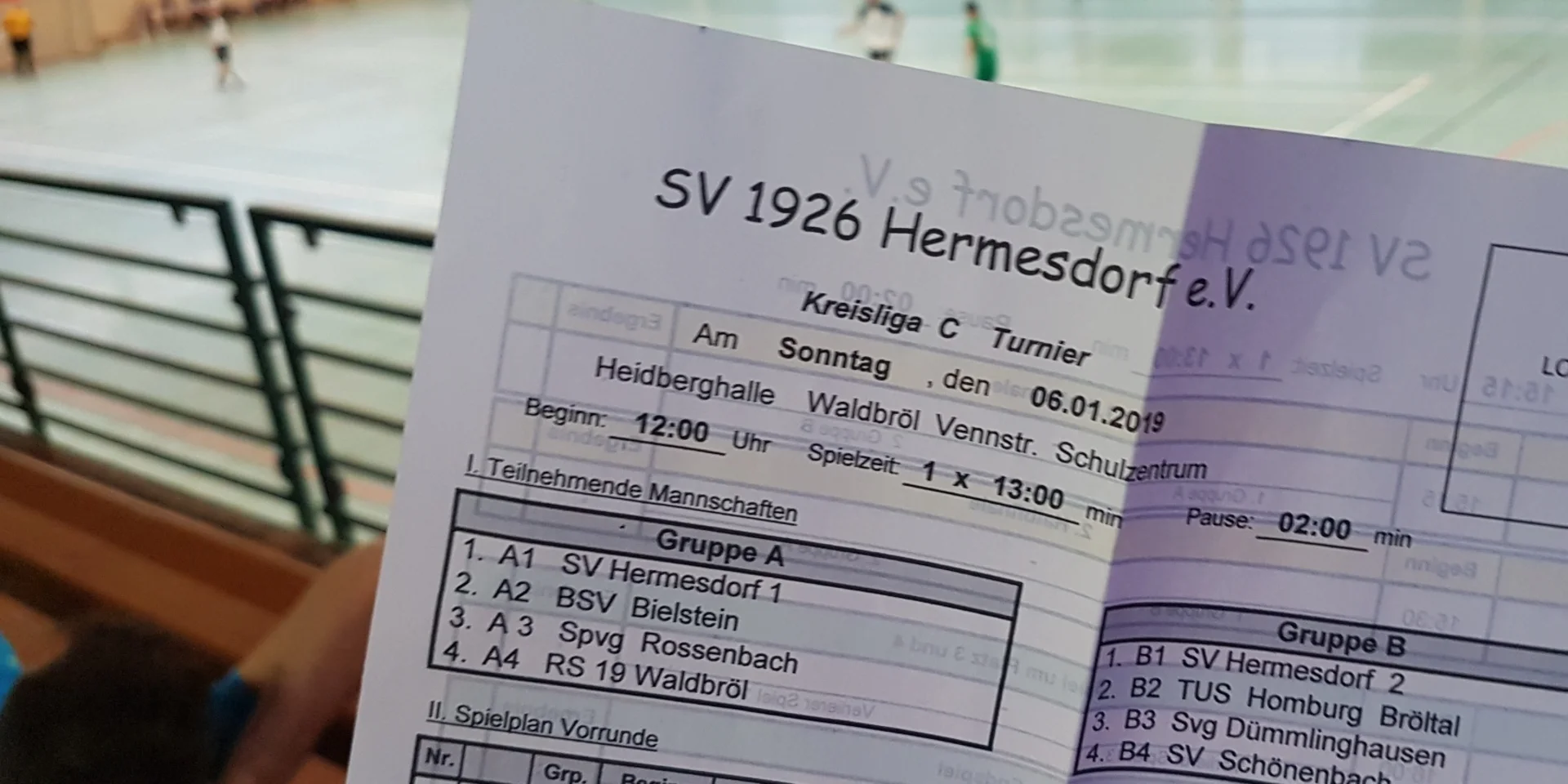 Voller Vorfreude fieberte die Dritte dem einzigen Hallenturnier und dem Start in das Fußballjahr 2019 entgegen. Geladen hatte der SV Hermesdorf in die Heidberghalle zu einem Freundschaftsturnier, die nach dem Aufstieg diesmal Kreisliga C Mannschaften einluden. Auch wenn die Gegner in vielen Belangen überlegen waren, schlug sich unsere Drittvertretung passabel und konnte in 13-Minuten-Spielen mit den Ergebnissen gegen Rossenbach (0:3), Hermesdorf (0:2) sowie Waldbröl II (2:4) zumindest zufrieden sein und zwei eigene Tore durch Aiham Armosh und Günter Schäfer erzielen. Auch hier Stand abermals der Spaß im Vordergrund, welcher zu jederzeit deutlich wurde.