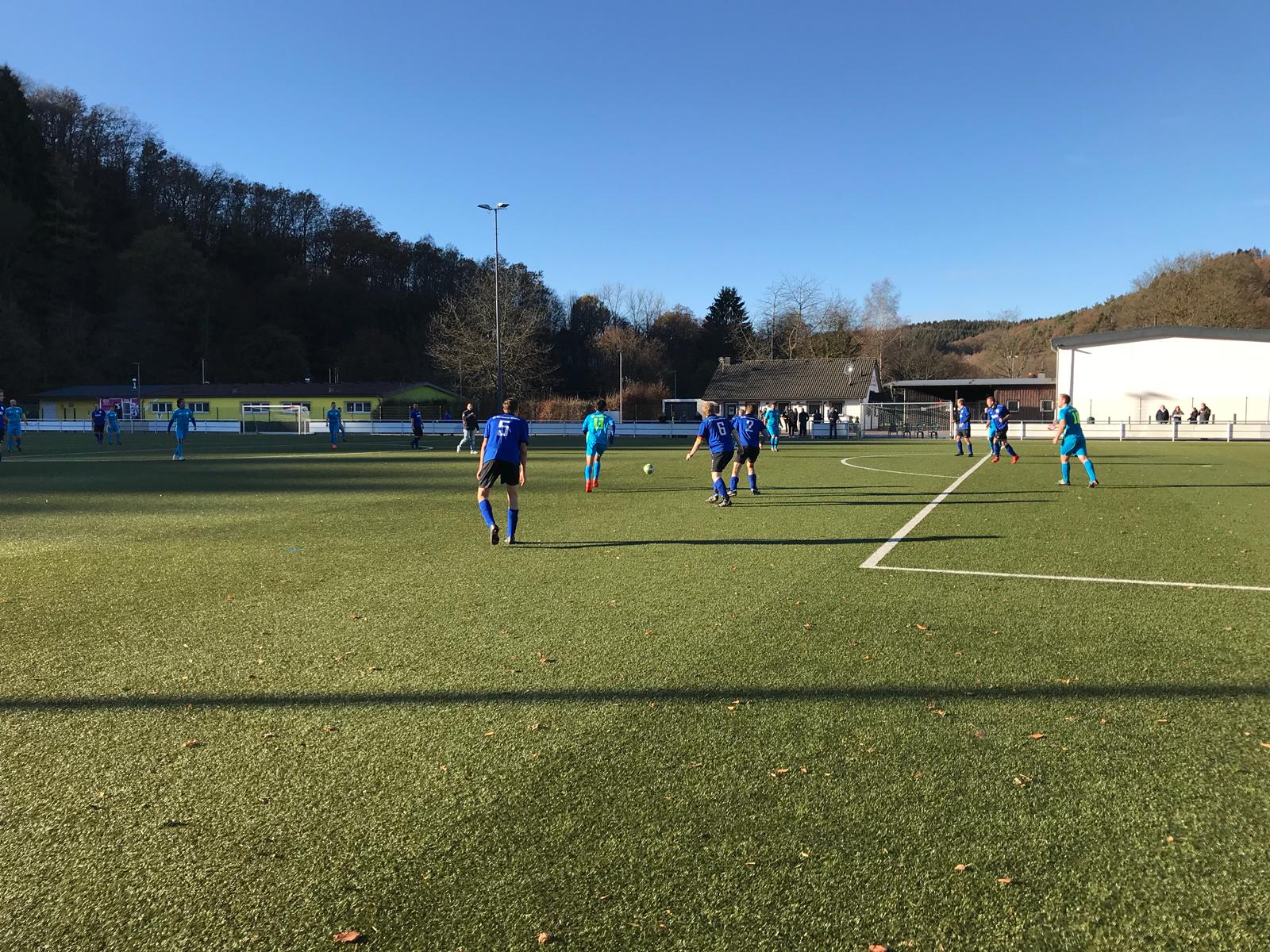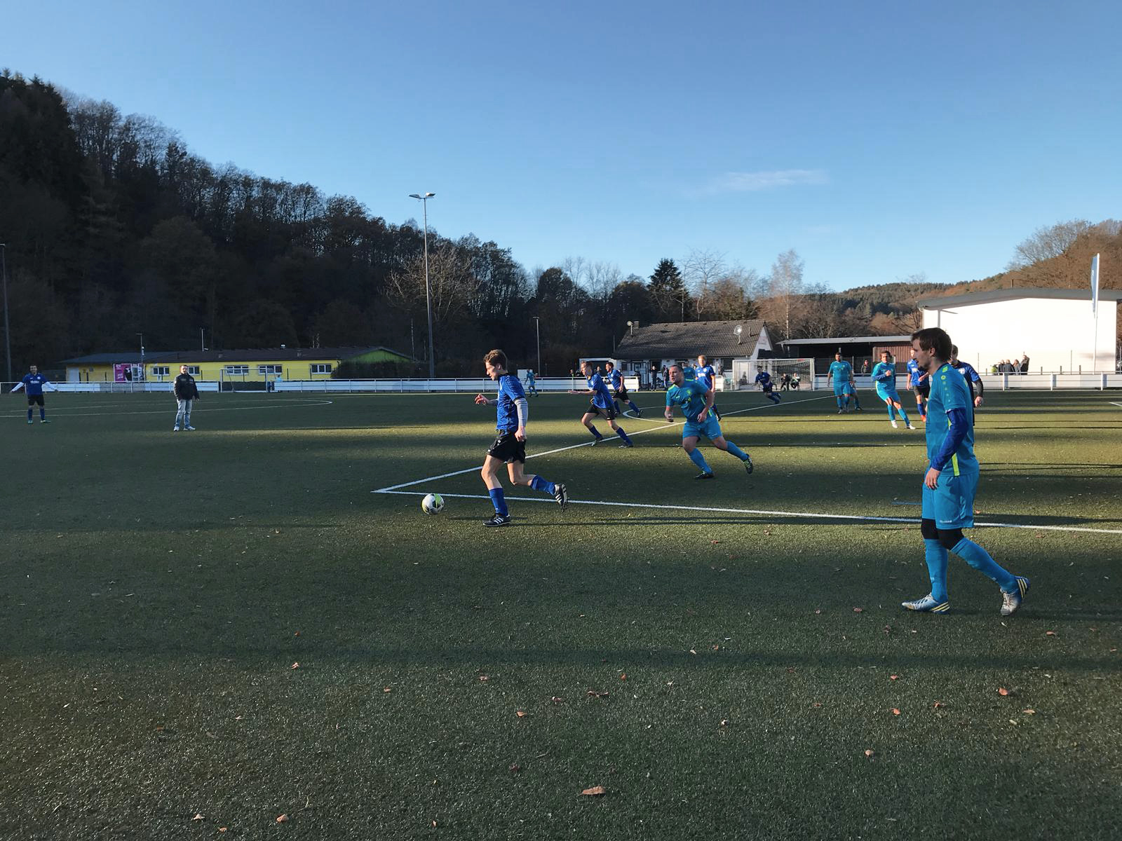 In einer sehr sachlichen Halbzeitpause schwor sich die Mannschaft noch einmal ein, dem Gegner weiterhin Paroli zu bieten und eine noch höhere Niederlage im letzten Hinrundenspiel abzuwenden. Mit gehobenem Kopf und viel Spaß am Fussball, spielte die Dritte eine wesentlich besserer zweite Hälfte, in der man sogar die ersten 20 Minuten die klar bessere Mannschaft war und sowohl den Ball als auch den Gegner gut laufen ließ. Mit etwas mehr Präzision wären in der Phase ein bis zwei Tore drin gewesen. Beste Chancen vergaben Florian Backes, Aiham Armosh, Bastian Klees und Mohamed Rezgui jeweils aussichtsreich. Das hinten zunächst nichts mehr anbrannte war Jannik Krause zu verdanken, der einen sehr starken Tag erwischte und fehlerfrei alles abräumte was kam. Er einzig und alleine konnte aber auch nicht verhindern, dass Wiedenest bei schwindenden Kräfte unserer Drittvertretung wieder am Tempohebel zog. Das 1:6 in Minute 70 und zehn Minnuten später das 1:7 waren bei ausbleibender Rückwärtsarbeit bei offener Formation nicht verwunderlich. Mit dem Schlußpfiff gelang dem sehr fairen Gegner aus Wiedenest noch das 1:8, womit dieser sich im Aufstiegstrio festsetzte.