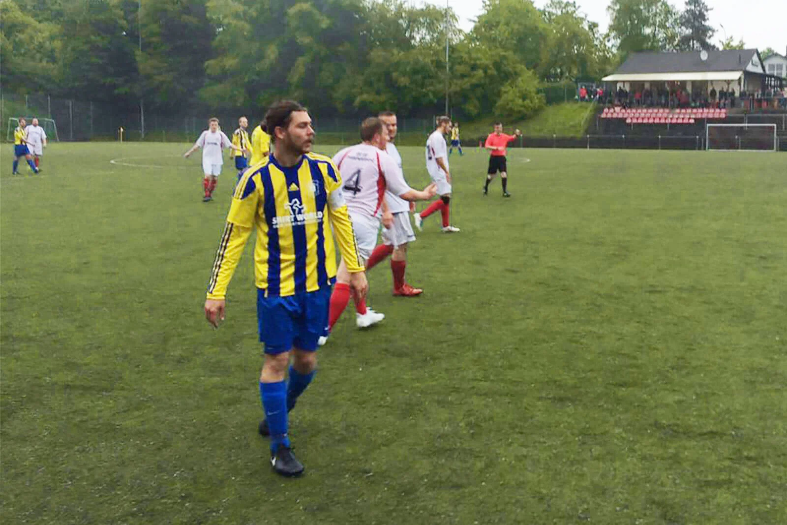 Den deutlich besseren Start erwischten die Gastgeber, die – mit dem ehemaligen Bielsteiner Axel Leopold an der Seitenlinie – von Beginn an sehr motiviert auftraten und in den Zweikämpfen ordentlich zur Sache gingen. Unsere Jungs brauchten einige Minuten, um sich von der gegnerischen Umklammerung zu lösen und das Spiel ausgeglichener zu gestalten. Als man sich nach einer guten Viertelstunde das erste Mal richtig gut nach vorne kombinieren konnte, resultierte das gleich in der Führung. Dabei war es zunächst David Kaune, der über die rechte Seite nach vorne marschierte und mit viel Übersicht in den Rückraum auf Patrick Weßel legte. Patrick, der bereits im letzten Spiel gegen Engelskirchen vier Mal getroffen hatte, hatte schließlich keine Mühe, den Ball im Tor unterzubringen. Leider gab die Führung unseren Jungs wenig Sicherheit – im Gegenteil. Die Gastgeber waren nach dem Gegentor noch motivierter und kamen nach einer schönen Einzelaktion von Marc Fricke, ebenfalls ein Akteur mit Bielsteiner Vergangenheit, durch Armin Brügmann zum verdienten Ausgleich. Kurze Zeit später wurde es dann das erste Mal etwas hektischer: Nach einem von beiden Seiten aggressiv geführten Zweikampf, den ein Drabenderhöher Spieler verlor, forderten die Drabenderhöher lautstark eine rote Karte – vergeblich. Der gute Schiedsrichter, der heute sein erstes Seniorenspiel leitete, beließ es bei einer gelben Karte – die richtige Entscheidung. Kurz darauf war Halbzeit.