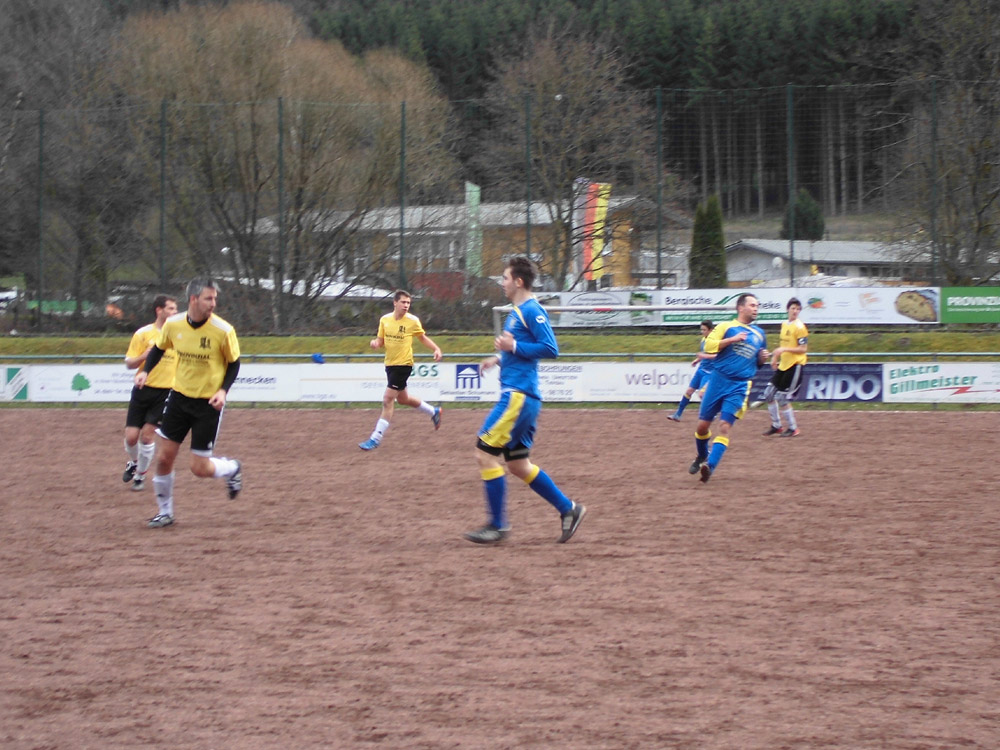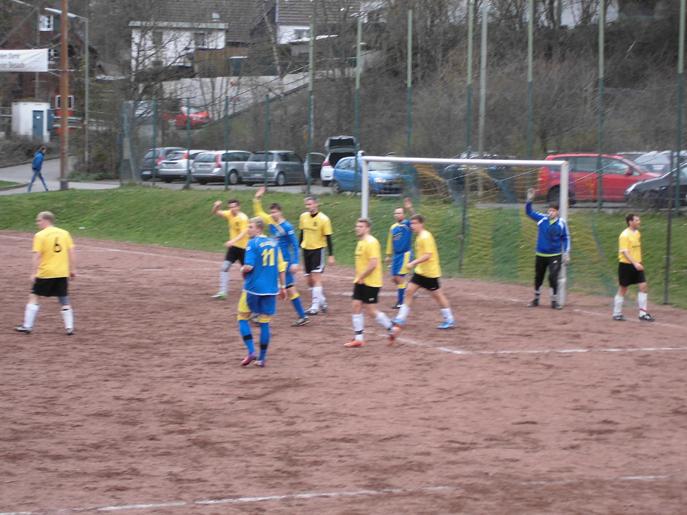 Richtig glücklich konnten Mannschaft und Trainer mit diesem Pausenstand nicht sein. Obwohl sich der Gegner als spielerisch arg limitiert erwies, kam man selber ebenfalls kaum zur Entfaltung und hatte sich während der kompletten ersten Halbzeit kein Übergewicht erspielen können. Das wollte man in Halbzeit 2 ändern. Leider ging der Start gründlich daneben: Nur zwei Minuten nach Wideranpfiff pennte die Bielsteiner Hintermannschaft bei einem Klärungsversuch und spielte den Ball direkt in die Füße eines Mittelfeldakteurs der Gäste. Dieser leitete den Ball schnell an den Stoßstürmer der Holper weiter, der keine Sekunde zögerte und mit einem Sonntagsschuss zur 2:1 Führung in den Winkel traf. Das weckte die Bielsteiner auf. Unterstützt durch einen Platzverweis für den Holper Stürmer nach einer Tätlichkeit erspielte sich die Erste fortan ein klares Übergewicht und kam zu einigen Einschussmöglichkeiten. Leider spielte man es dann aber zu oft zu kompliziert oder schoss den Gäste-Torhüter an. Nur einmal landete der Ball noch im Netz: nach Flanke von Patrick Weßel war David Kaune abermals per Kopf zur Stelle und erzielte in der 83. Minute den überfälligen Ausgleichstreffer. Kurz darauf pfiff der sehr großzügig pfeifende Schiedsrichter die Partie ab.