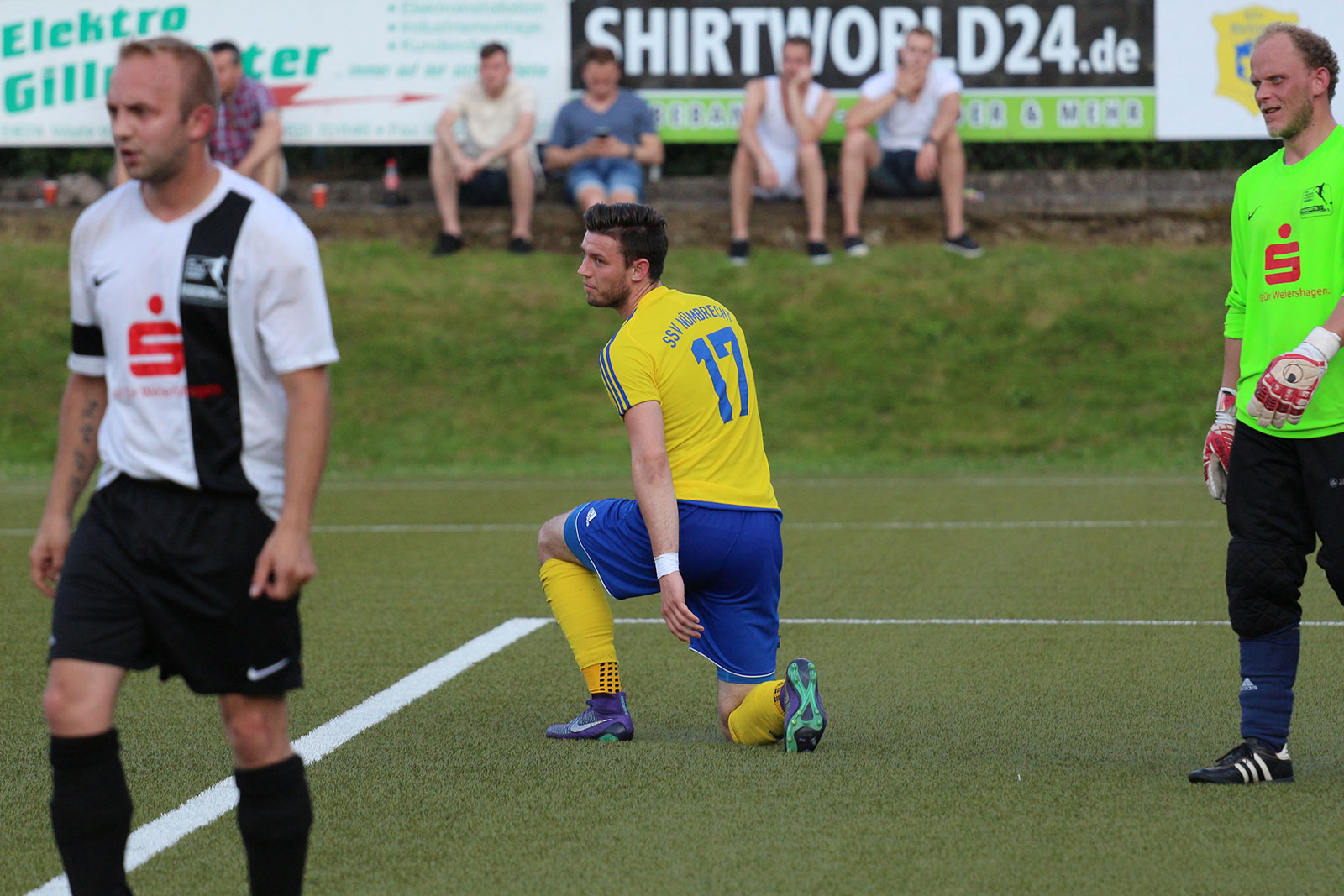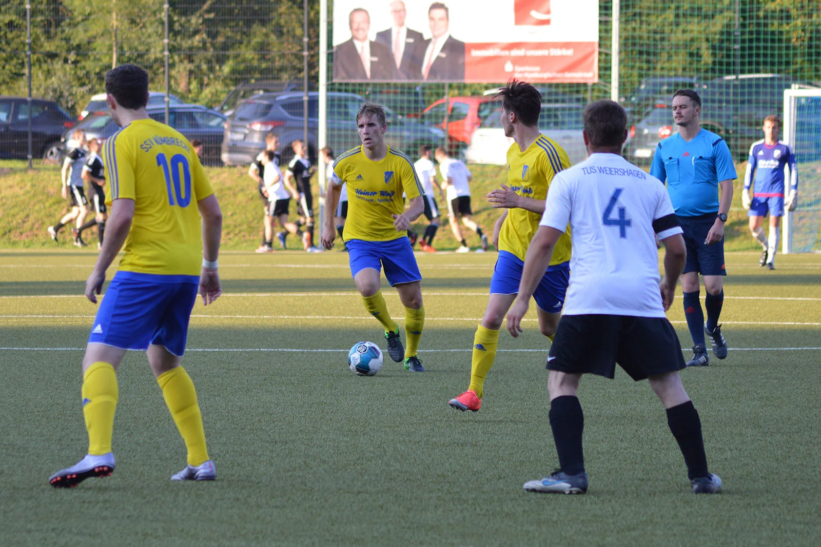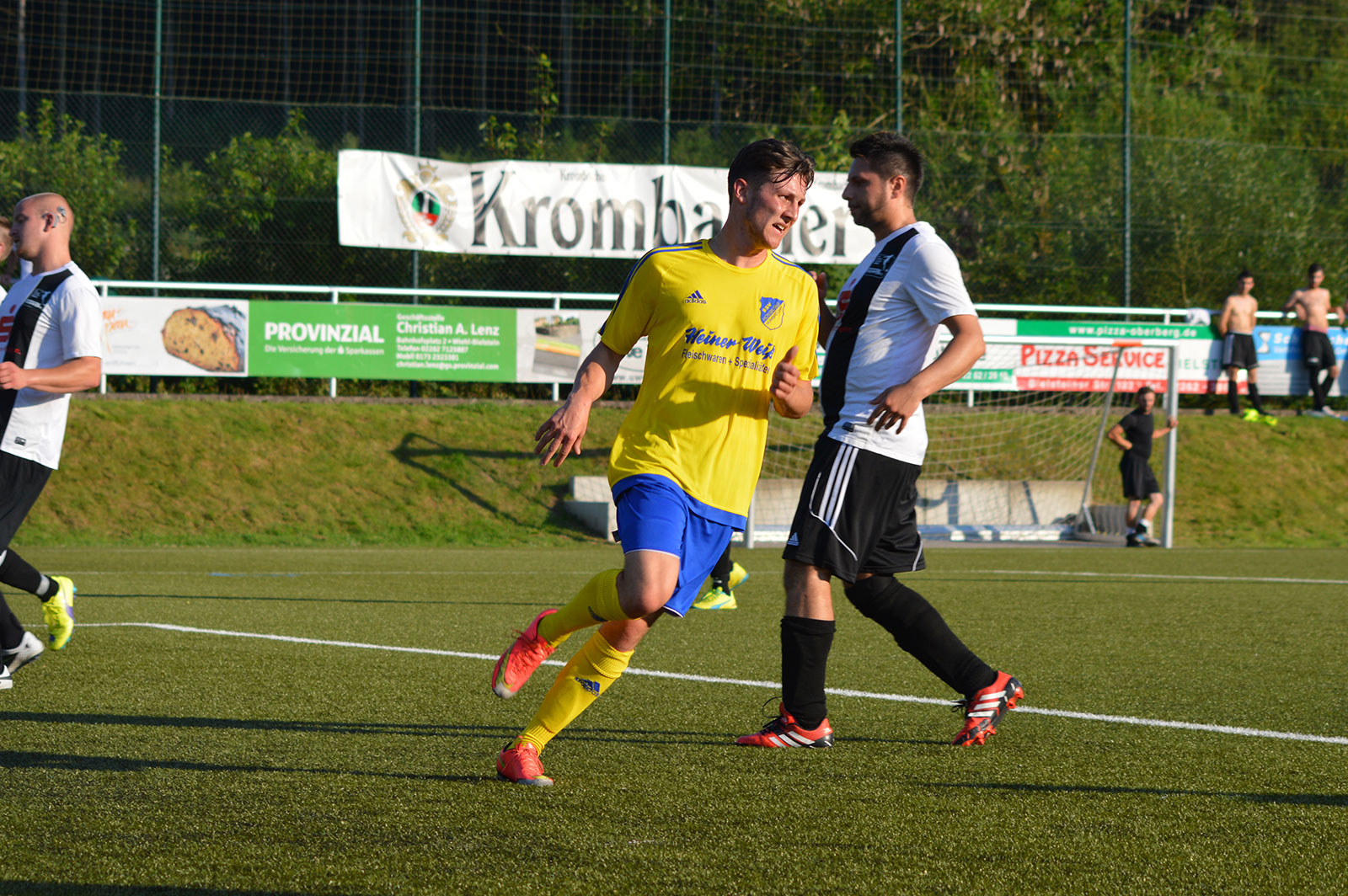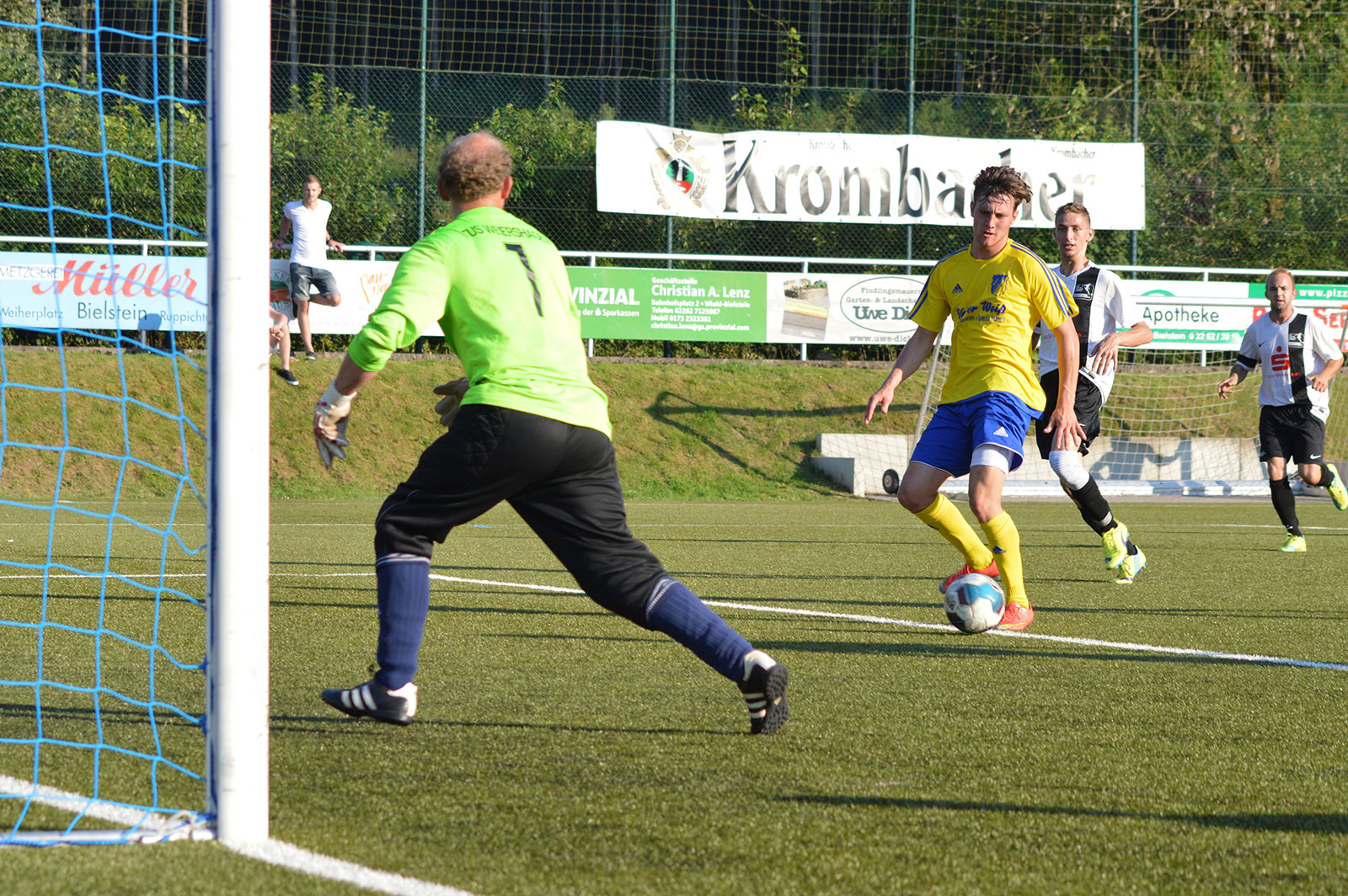 Bei sommerlichen Temperaturen entwickelte sich zunächst ein freundschaftlicher Kick, in dem beide Mannschaften nicht mehr machten als sie machen mussten. Während sich die Weiershagener dabei von Beginn an nur aufs Verteidigen konzentrierten und nahezu jeden Ball tief in die gegnerische Hälfte schossen, rannten die Nümbrechter gegen die dicht gestaffelte Weiershagener Hintermannschaft in den ersten zwanzig Minuten relativ planlos an. Erst spät in der ersten Halbzeit fand der Landesligist zu seinen Automatismen und wurde dadurch sofort gefährlich. Vergab man die ersten guten Möglichkeiten noch, sorgten Joscha Tremmler und Bastian Sellau nach schön herausgespielten Spielzügen schließlich für die verdiente Führung. Diese Führung bauten die Nümbrechter nach der Pause in regelmäßigen Abständen bis zum 7:0 aus. Dabei konnte sich der Landesligist sogar erlauben, einen Strafstoß zu verschießen – der Weiershagener Torhüter Andy Timm war zur Stelle gewesen und krönte damit seine gute Leistung. Während Nümbrecht für das Halbfinale planen kann, kämpft Weiershagen im abschließenden Spiel gegen Drabenderhöhe um den dritten Rang, der zum Spiel um Platz 5 berechtigt.