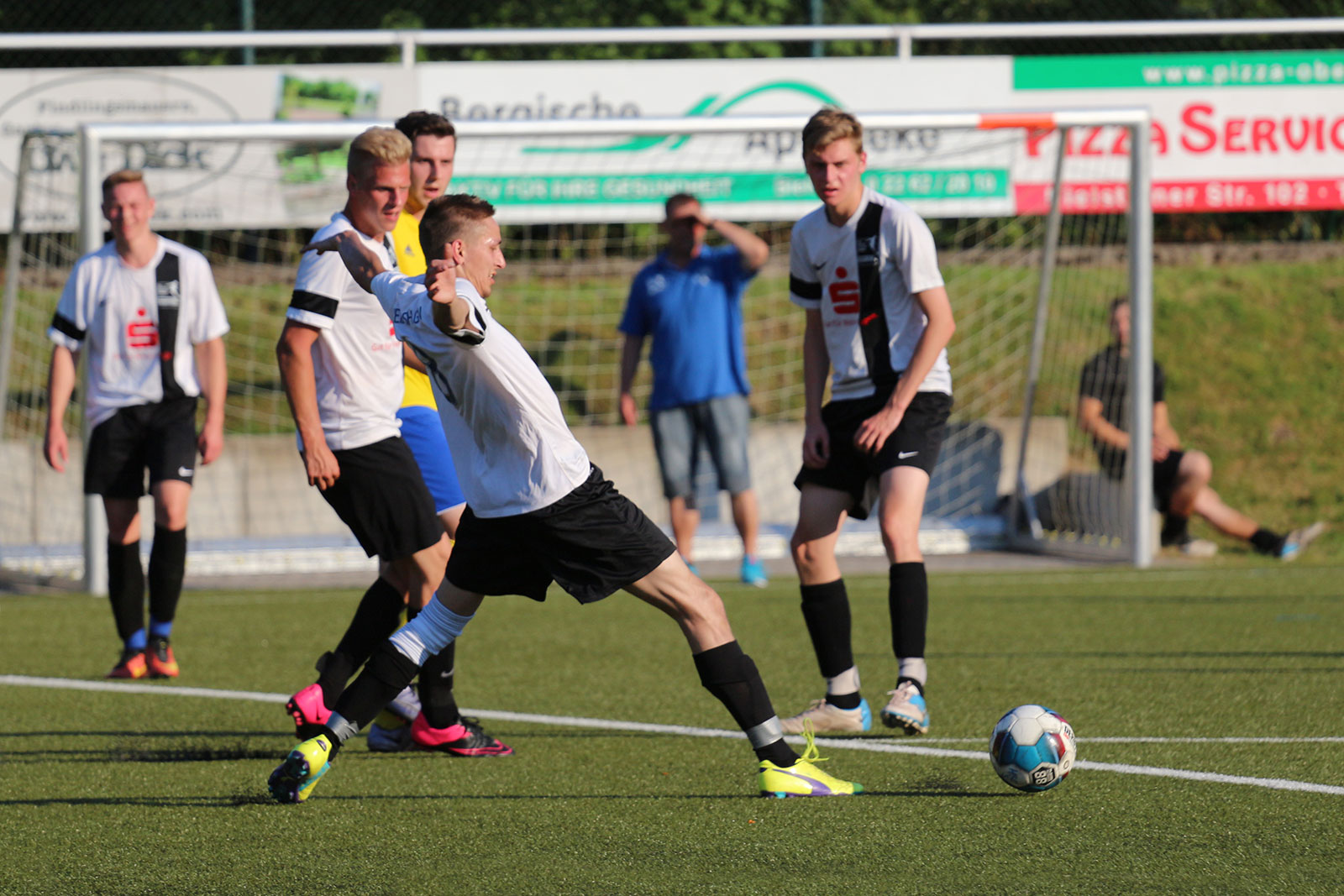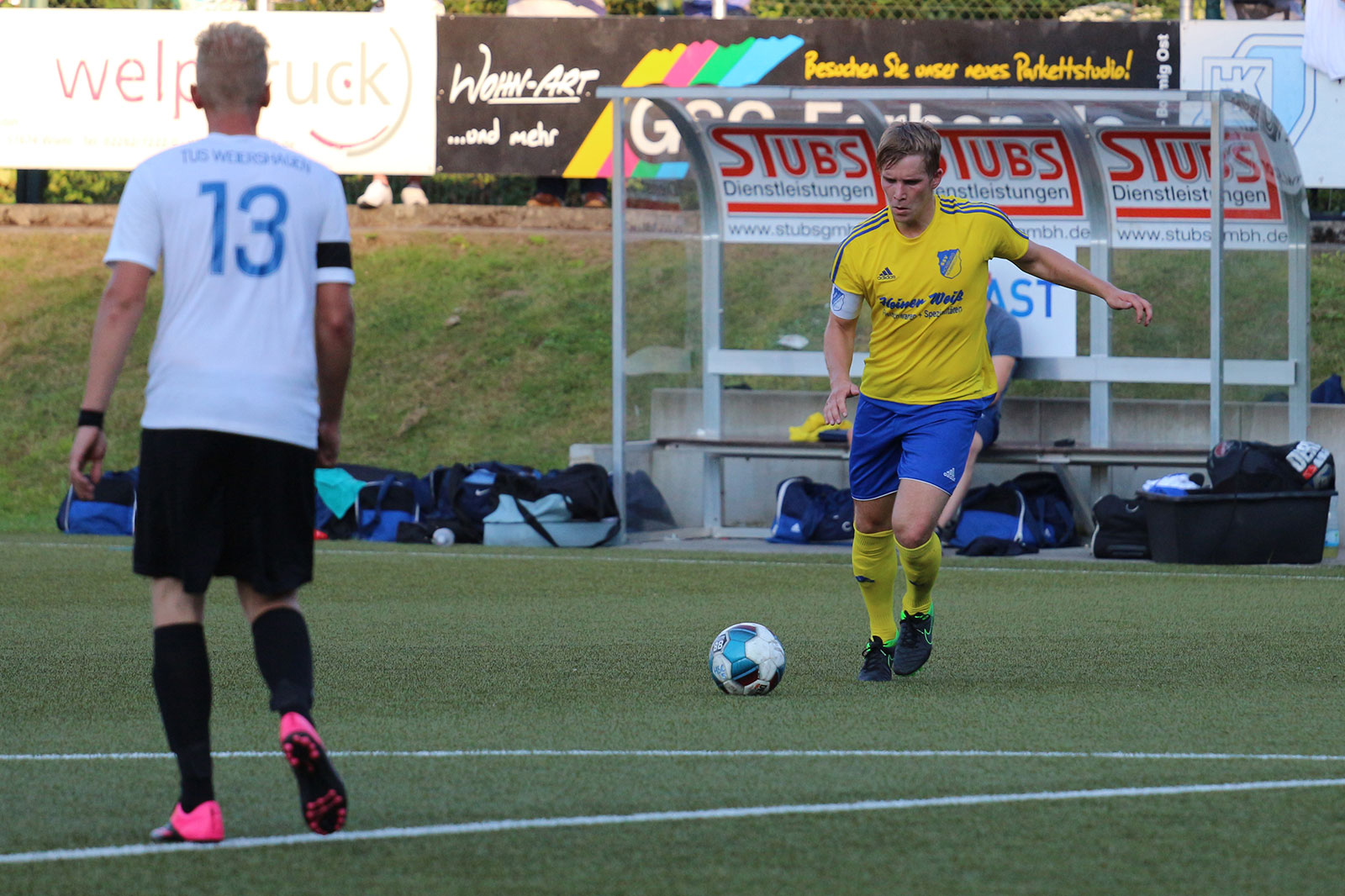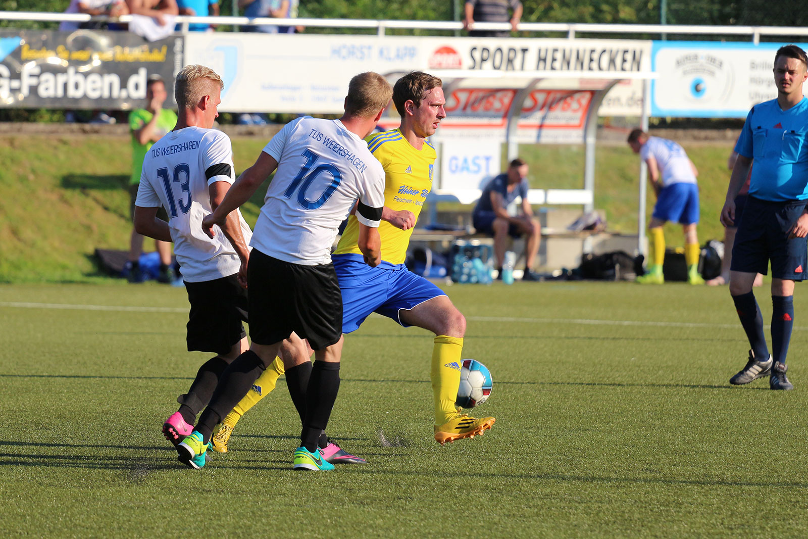 Bei sommerlichen Temperaturen entwickelte sich zunächst ein freundschaftlicher Kick, in dem beide Mannschaften nicht mehr machten als sie machen mussten. Während sich die Weiershagener dabei von Beginn an nur aufs Verteidigen konzentrierten und nahezu jeden Ball tief in die gegnerische Hälfte schossen, rannten die Nümbrechter gegen die dicht gestaffelte Weiershagener Hintermannschaft in den ersten zwanzig Minuten relativ planlos an. Erst spät in der ersten Halbzeit fand der Landesligist zu seinen Automatismen und wurde dadurch sofort gefährlich. Vergab man die ersten guten Möglichkeiten noch, sorgten Joscha Tremmler und Bastian Sellau nach schön herausgespielten Spielzügen schließlich für die verdiente Führung. Diese Führung bauten die Nümbrechter nach der Pause in regelmäßigen Abständen bis zum 7:0 aus. Dabei konnte sich der Landesligist sogar erlauben, einen Strafstoß zu verschießen – der Weiershagener Torhüter Andy Timm war zur Stelle gewesen und krönte damit seine gute Leistung. Während Nümbrecht für das Halbfinale planen kann, kämpft Weiershagen im abschließenden Spiel gegen Drabenderhöhe um den dritten Rang, der zum Spiel um Platz 5 berechtigt.
