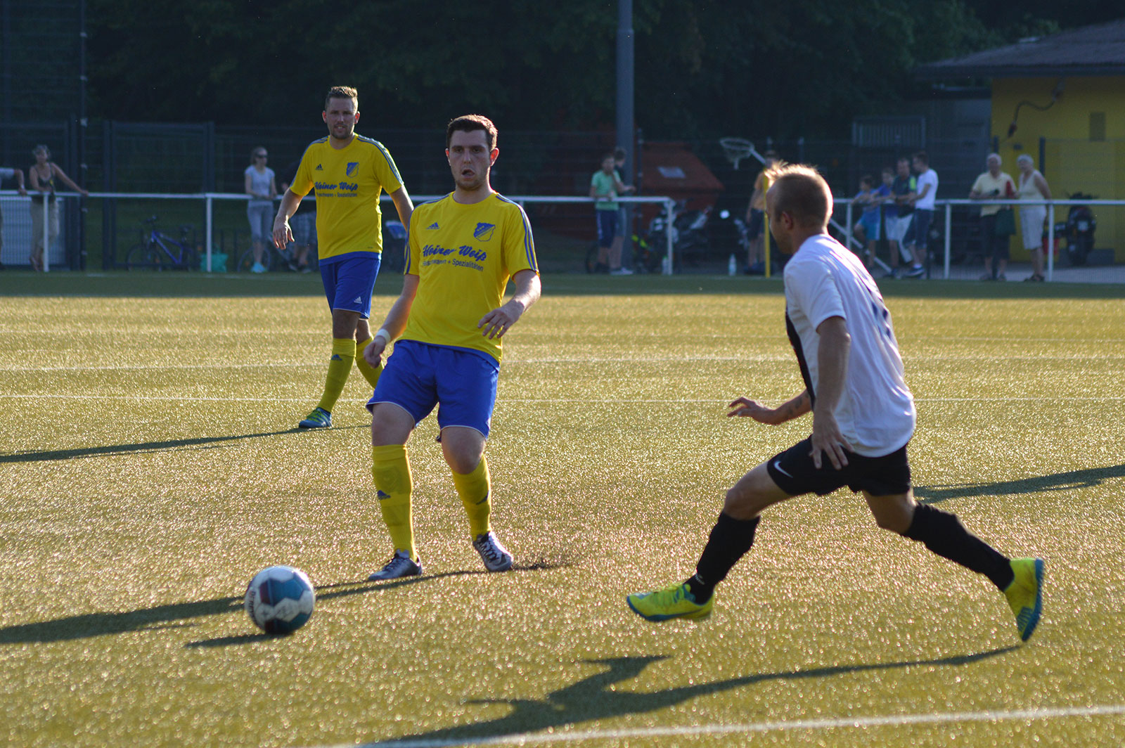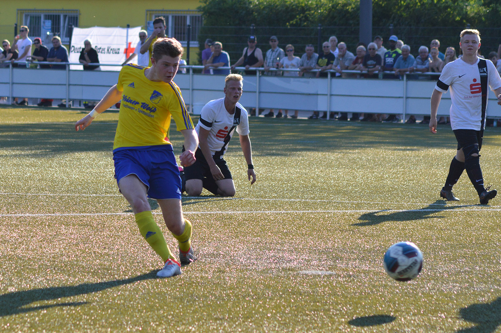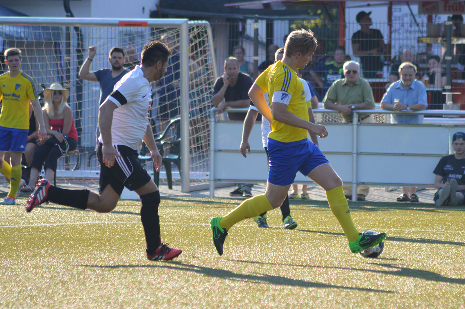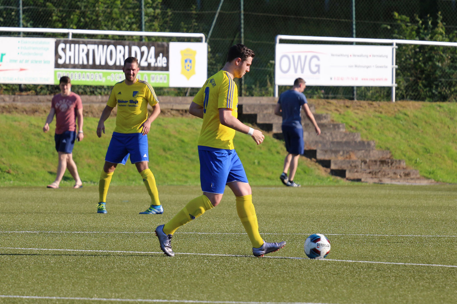 Bei sommerlichen Temperaturen entwickelte sich zunächst ein freundschaftlicher Kick, in dem beide Mannschaften nicht mehr machten als sie machen mussten. Während sich die Weiershagener dabei von Beginn an nur aufs Verteidigen konzentrierten und nahezu jeden Ball tief in die gegnerische Hälfte schossen, rannten die Nümbrechter gegen die dicht gestaffelte Weiershagener Hintermannschaft in den ersten zwanzig Minuten relativ planlos an. Erst spät in der ersten Halbzeit fand der Landesligist zu seinen Automatismen und wurde dadurch sofort gefährlich. Vergab man die ersten guten Möglichkeiten noch, sorgten Joscha Tremmler und Bastian Sellau nach schön herausgespielten Spielzügen schließlich für die verdiente Führung. Diese Führung bauten die Nümbrechter nach der Pause in regelmäßigen Abständen bis zum 7:0 aus. Dabei konnte sich der Landesligist sogar erlauben, einen Strafstoß zu verschießen – der Weiershagener Torhüter Andy Timm war zur Stelle gewesen und krönte damit seine gute Leistung. Während Nümbrecht für das Halbfinale planen kann, kämpft Weiershagen im abschließenden Spiel gegen Drabenderhöhe um den dritten Rang, der zum Spiel um Platz 5 berechtigt.