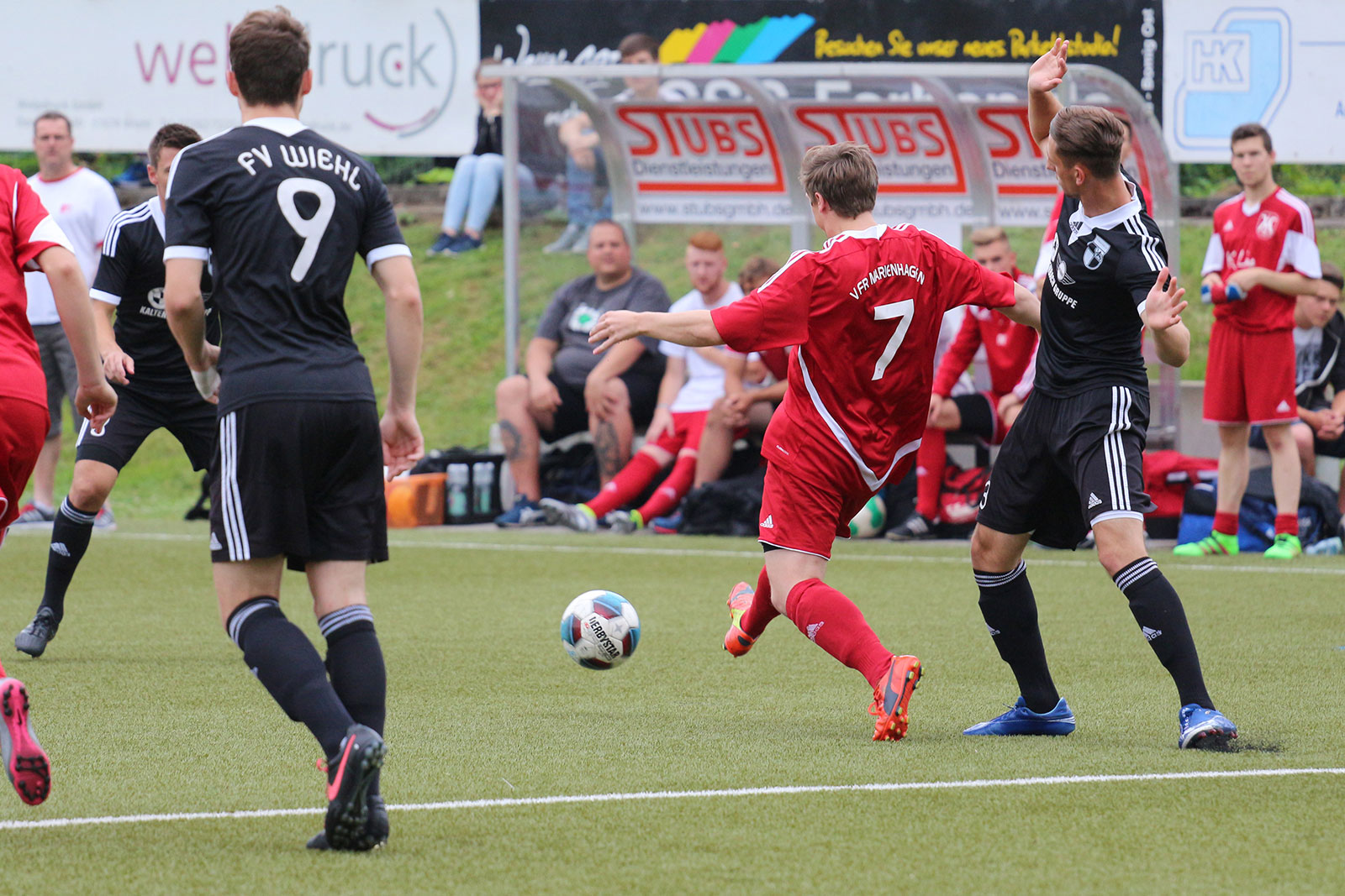In einem vor allem in der zweiten Halbzeit einseitigen Spiel gewinnt der FV Wiehl gegen den VfR Marienhagen mit 5:0 (1:0) und zieht nach dem Sieg ins Finale ein. Sven Wurm, Waldemar Kilb, Kevin Derksen, Markus Wagner und Markus Möller treffen für Wiehl.
