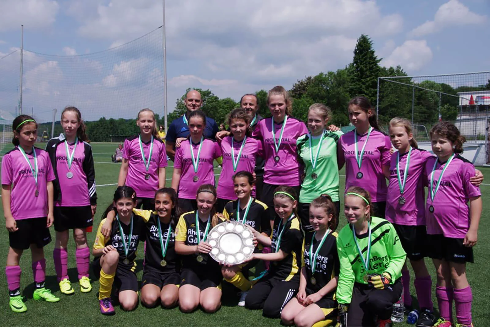 Sichtlich erschöpft und enttäuscht über den Spielverlauf nahmen unsere Mädchen nach dem Abpfiff die Medaillen für den zweiten Platz entgegen. Nach dem ersten Ärger hatte man aber auch schnell wieder die Köpfe oben und freute sich gemeinsam mit Bergisch Gladbach über das hochkarätige und sehr faire Pokalfinale – zurecht! Nach dem Gewinn des Hallenkreispokals und dem zweiten Platz im Kreispokal können die Mädels nämlich mächtig stolz auf ihre Leistungen sein.
