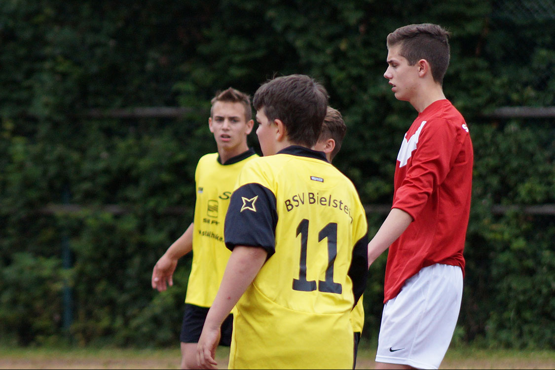 Im ersten Spiel kontrollierte unsere U15 das Geschehen über weite Strecken des Spiels und agierte vor dem Tor eiskalt. So stand es nach zwei wunderschönen Kombinationen schnell 2:0 für die Gäste. Bis zur letzten Spielminute kamen die Moitzfelder zu keiner einzigen Torchance, ehe Christian Rutz einen Rückpass auf Torwart Lukas Burkhardt spielte, der den Ball verstolperte und dem Gegenspieler direkt vor die Füße legte. Der Stürmer hatte keine Probleme damit, Lukas zu umkurven und schließlich ins leere Tor einzuschieben. Kurz darauf war Schluss, sodass sich am verdienten Ergebnis letztlich nichts mehr änderte. Das zweite Spiel sollte eigentlich ähnlich gestaltet werden wie die erste Partie, doch die Mannschaft kam mit der Spielweise des Gegners überhaupt nicht zurecht und verlor verdient mit 0:2. Das dritte Spiel folgte unmittelbar im Anschluss an das zweite Spiel. Es zeigte sich schnell, dass unsere Jungs über eine gute Luft verfügen. So spielte die U15 trotz der Doppelbelastung weiterhin guten Fußball, nutzte ihre Chancen und gewann daher am Ende verdient mit 3:0. Etwas anders sah es leider im vierten Spiel aus. So ging unsere Mannschaft gegen einen starken Gegner, der auch individuell deutlich überlegen war, mit 0:4 unter.