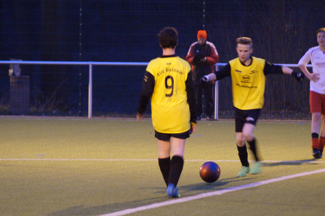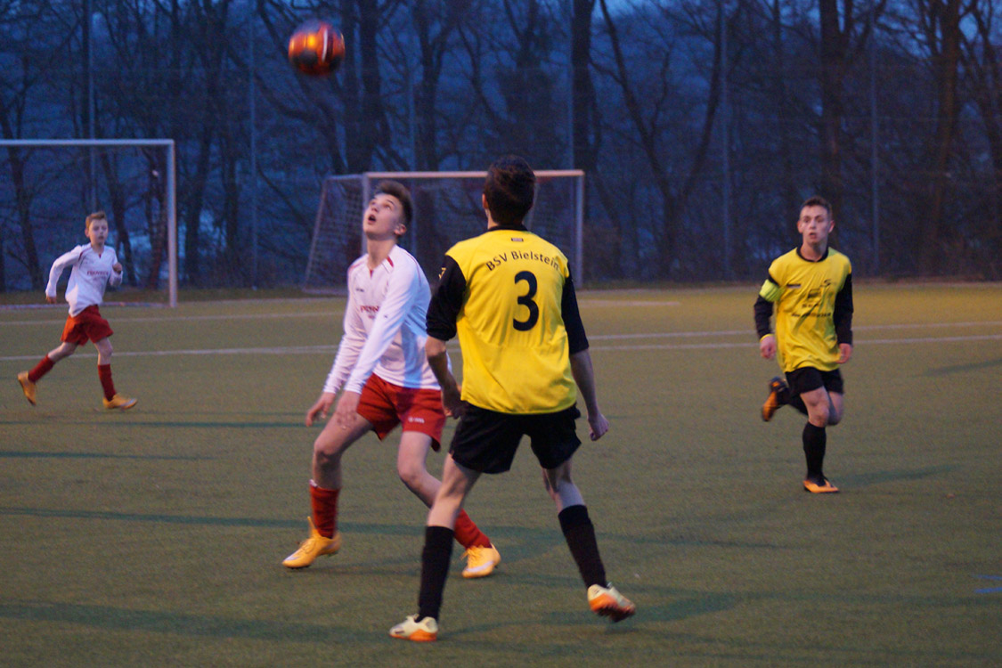Die Mannschaft war trotz der Umstellungen von Beginn an taktangebend und erarbeitete sich einige, wenn auch relativ harmlose Torchancen. Die Gastgeber kamen erst nach etwa zehn Minuten in die Partie, gingen dann jedoch mit ihrer ersten Möglichkeit gleich in Führung: nach einem sensationell herausgespielten Konter schloss Schnellenbach überlegt zum 1:0 ab. Die Bielsteiner reagierten verunsichert und mussten dabei zusehen, wie der Gastgeber ein schnelles zweites Tor nachlegen konnte. Nun wachten die Bielsteiner endlich wieder auf und wurden etwas aktiver. Der Lohn: der nicht ganz unverdiente 1:2 Anschlusstreffer in Person von Marco Coltiletti. Bis zum Halbzeitpfiff passierte nichts mehr.