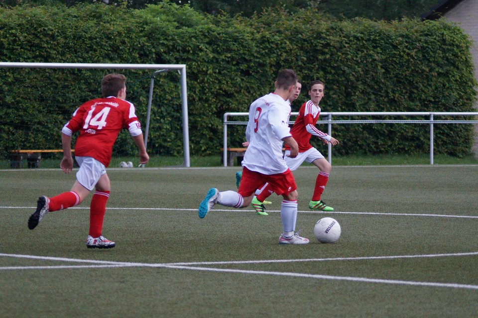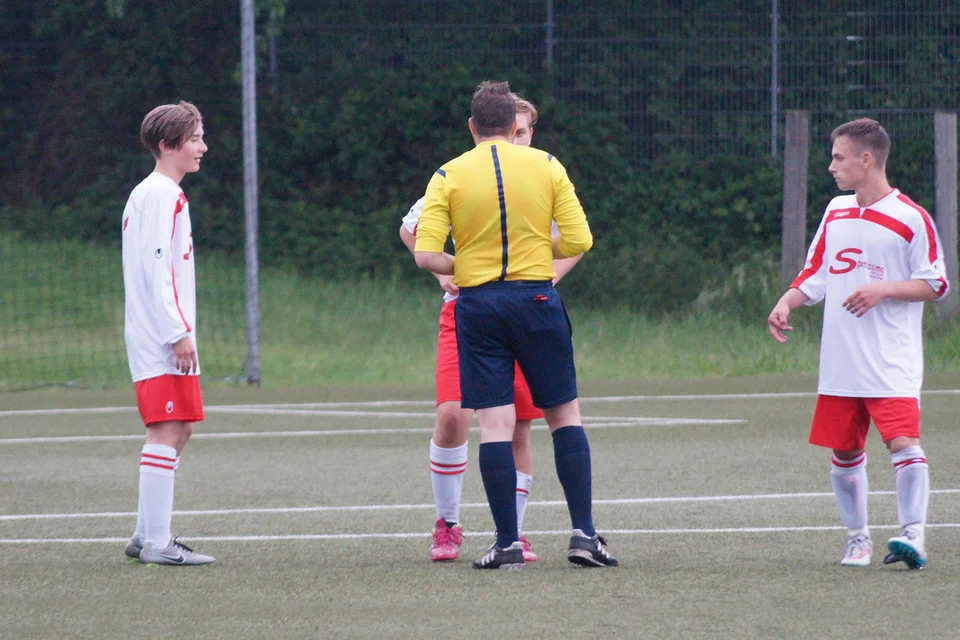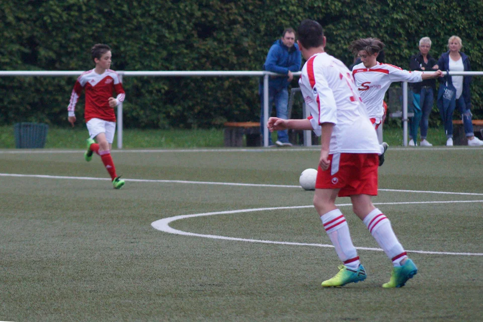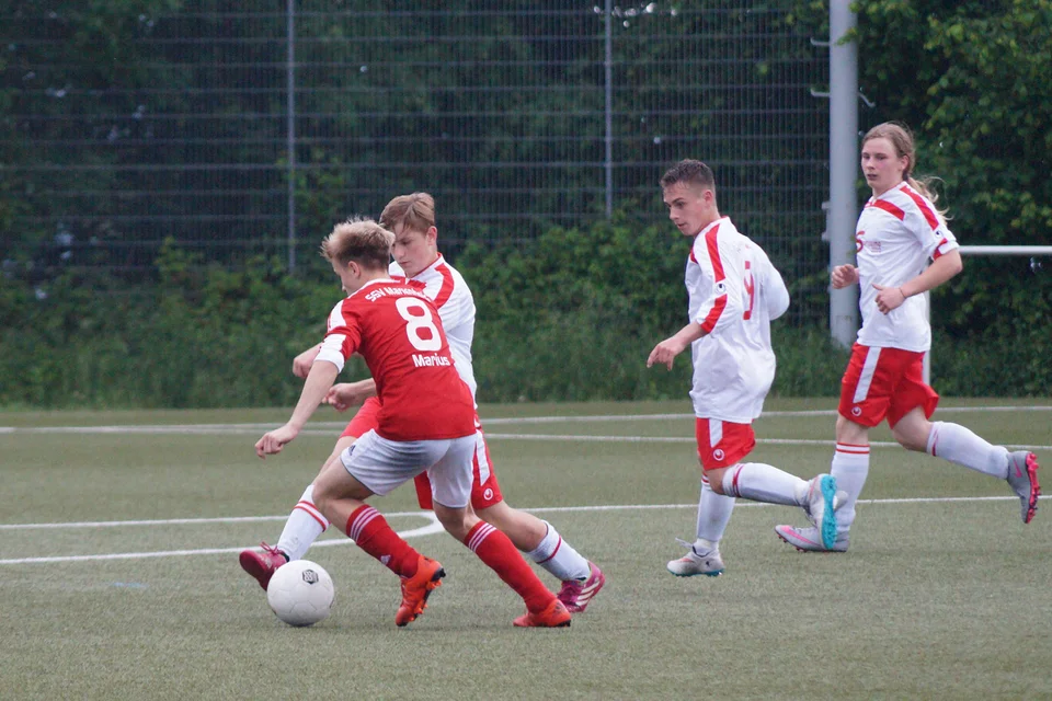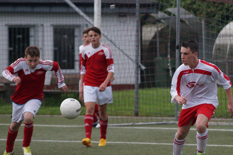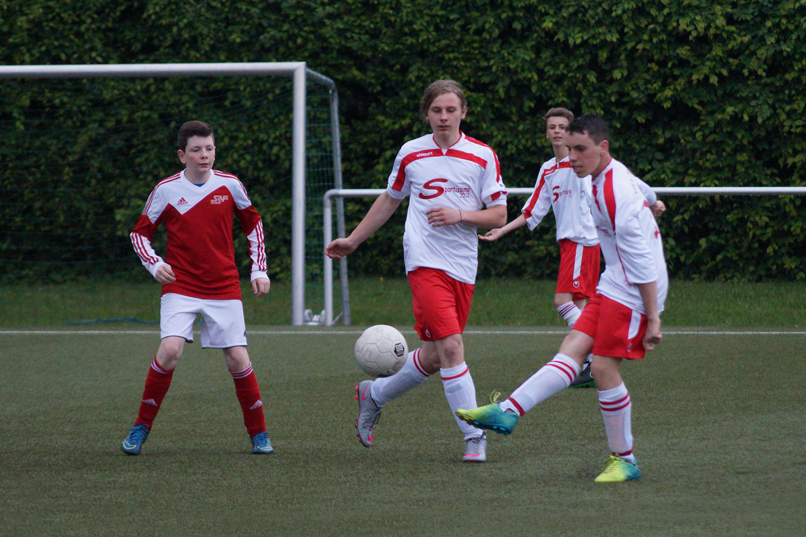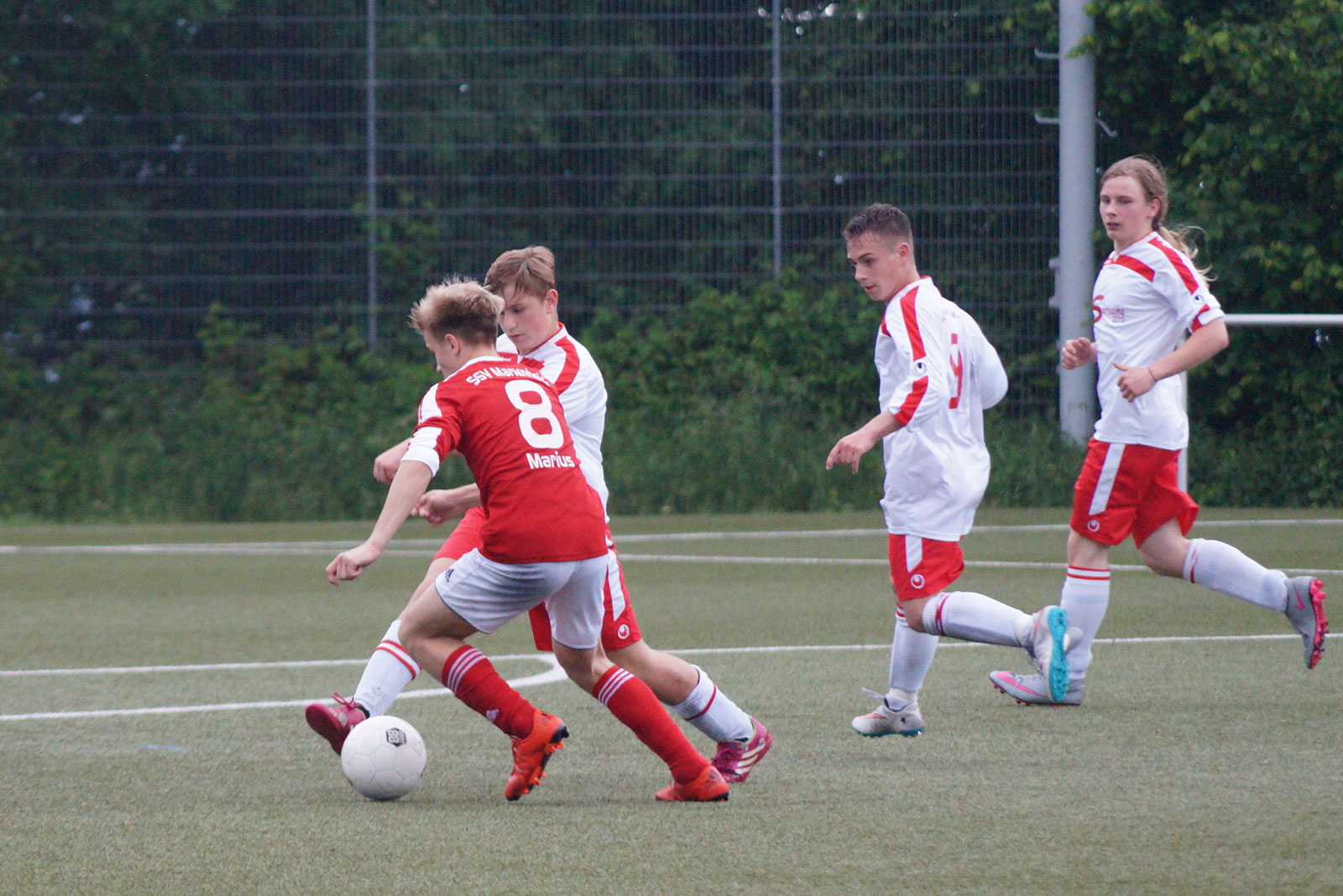 Die zahlreichen Zuschauer sahen vor allem in der ersten Halbzeit ein sehr gutes Spiel unserer U15, die schnell mit 2:0 in Führung ging. Den ersten Gegentreffer konterten unsere Jungs im direkten Gegenzug mit dem dritten Tor, ehe man wiederum im direkten Gegenzug den zweiten Gegentreffer fing. Erst jetzt fand unsere U15 wieder zu defensiver Stabilität. Aus der Ordnung heraus kombinierten sich unsere Jungs immer wieder gefällig nach vorne und konnten bis zur Halbzeit so drei weitere Tore erzielen. Die Jungs machten nach der Halbzeit weiter, wo sie aufgehört hatten und schossen bis zum Schlusspfiff noch vier weitere Tore hinaus.