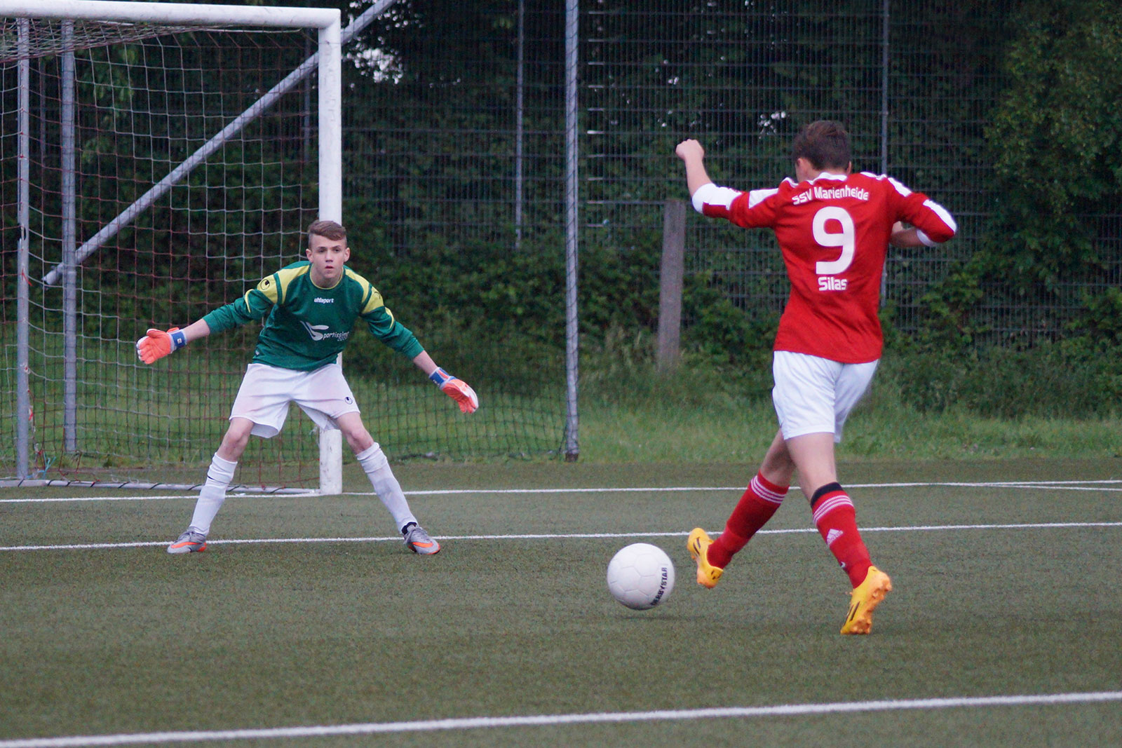 Im Spiel gegen den Tabellenzweiten Marienheide gewinnt unsere U15 verdient mit 10:2 und braucht nun nur noch einen Punkt, um die Meisterschaft für sich zu entscheiden. Sven Sadowski (5), Marco Coltiletti (3), Justin Schiffarth und Maximilian Kreuder treffen für die Spielgemeinschaft Bielstein/Marienhagen.