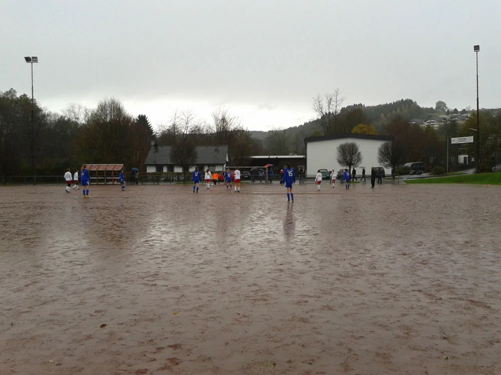 Bereits vor dem Spiel schienen der gegnerischen Mannschaft ein wenig die Knie zu schlottern. Ob man denn überhaupt spielen wolle (es regnete ein wenig) oder ob man sich nicht eventuell auf einen neuen Termin einigen könne. Nichts da! Nach kurzer Platzbegehung war klar: hier und heute wird es ein Duell um Platz 2 geben. Und schnell merkten Trainer wie Zuschauer: der BSV wollte diesen Platz einfach mehr. Bereits nach neun Minuten zappelte der Ball das erste Mal im Netz. Vivian war in einer eigentlich ungefährlichen Zone gefoult worden, Jacki haute das Ding auf Anweisung einfach mal vor das Tor, wo sich der etatmäßige Libero der gegnerischen Mannschaft, der heute im Tor stand, verschätzte und den Ball abtropfen ließ. Die Situation antizipiert hatte Sarah, die goldrichtig stand und mit kleinem Körpereinsatz zum 1:0 einschieben konnte. Die Mädels setzten nun nach: Nach kurzer Ecke von Vivian kam der Ball über Annalena und Jenny wiederum zu Sarah, die im ersten Versuch noch scheiterte. Sie setzte allerdings nach und überwand die Torhüterin mit dem zweiten Schuss zum 2:0. Jetzt ging es Schlag auf Schlag: Annalena setzte sich über Außen stark durch und brachte eine punktgenaue Flanke auf Toki, die den Ball volley zum 3:0 in der 20. Minute ins Tor schob. Drei Minuten später war es wiederum Annalena, die sich auf der Außenbahn durchsetzte und mit einer verunglückten Flanke in den linken Giebel traf. Das 4:0. Schon jetzt hatte man also so oft getroffen wie im Hinspiel. Dass man danach zwei Gänge runterschaltete, wurde sofort bestraft. In einer eigentlich ungefährlichen Aktion konnte sich die Othetaler Kapitännin durchsetzen und Eule mit einem strammen Schuss überwinden. Zittern musste man trotzdem nicht, denn Jenny setzte sich nach einem feinen Pass von Tokessa durch und konnte das zu einem psychologisch günstig fallenden Zeitpunkt 5:1 erzielen. Unmittelbar danach war Halbzeit.