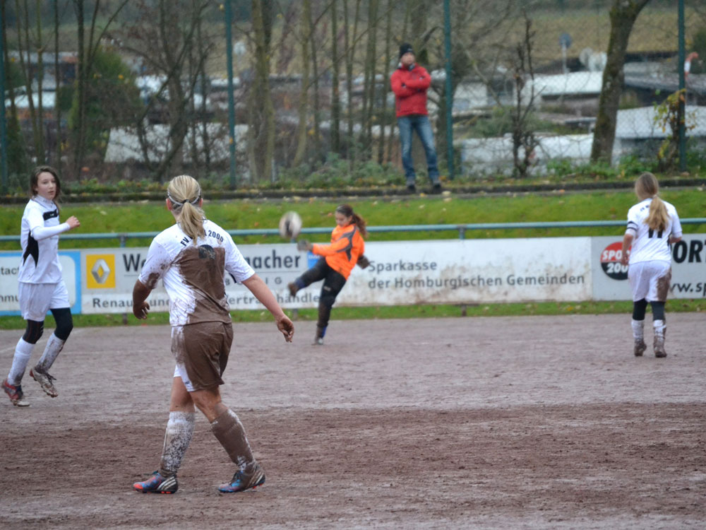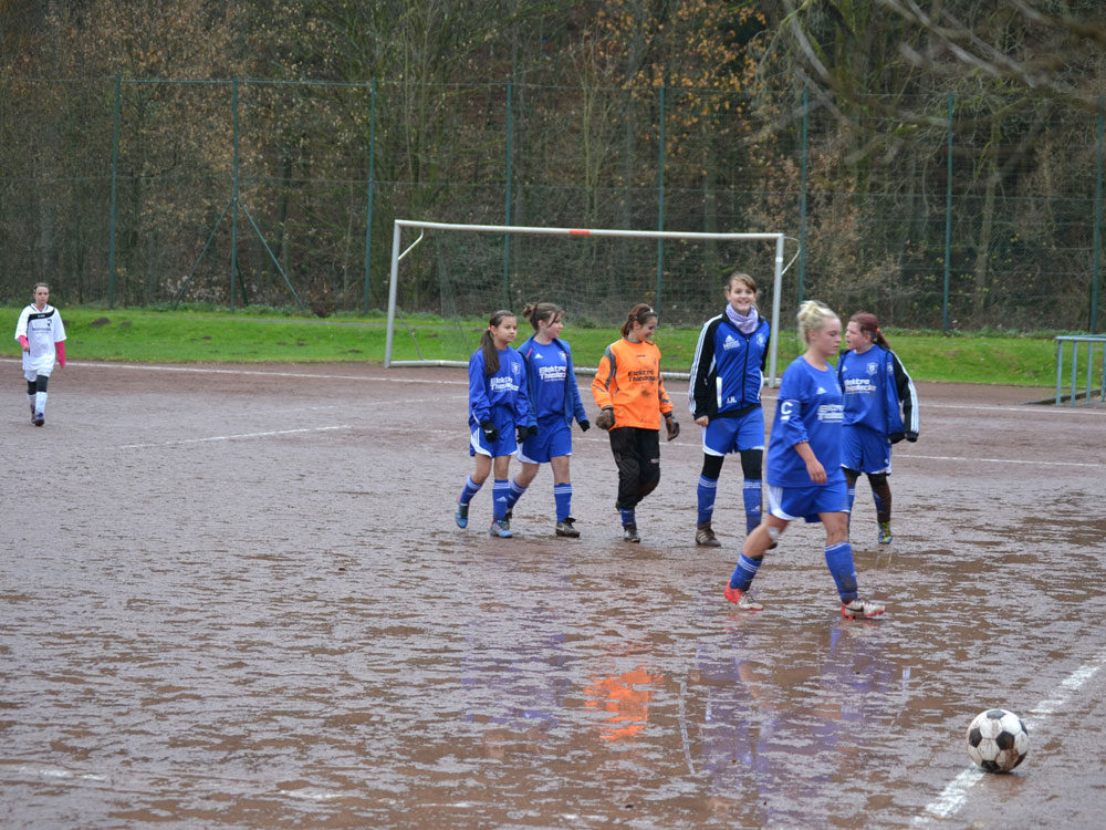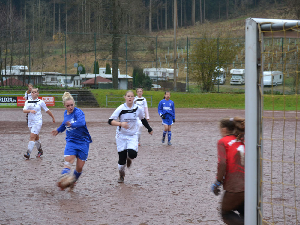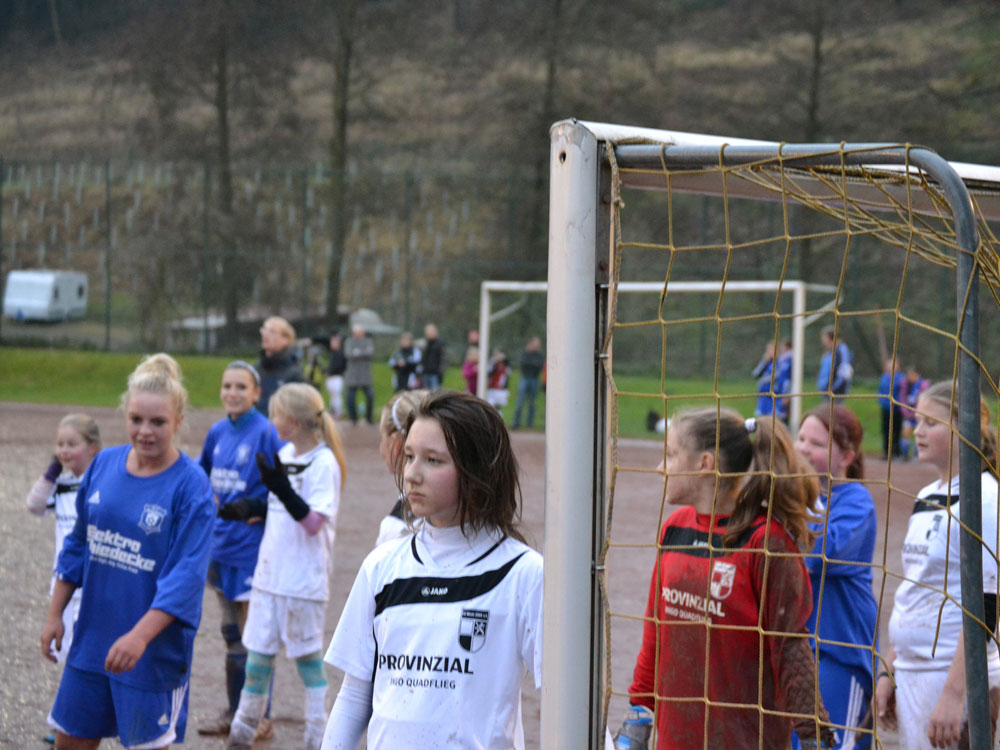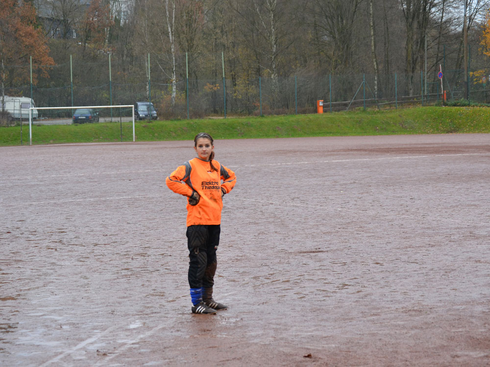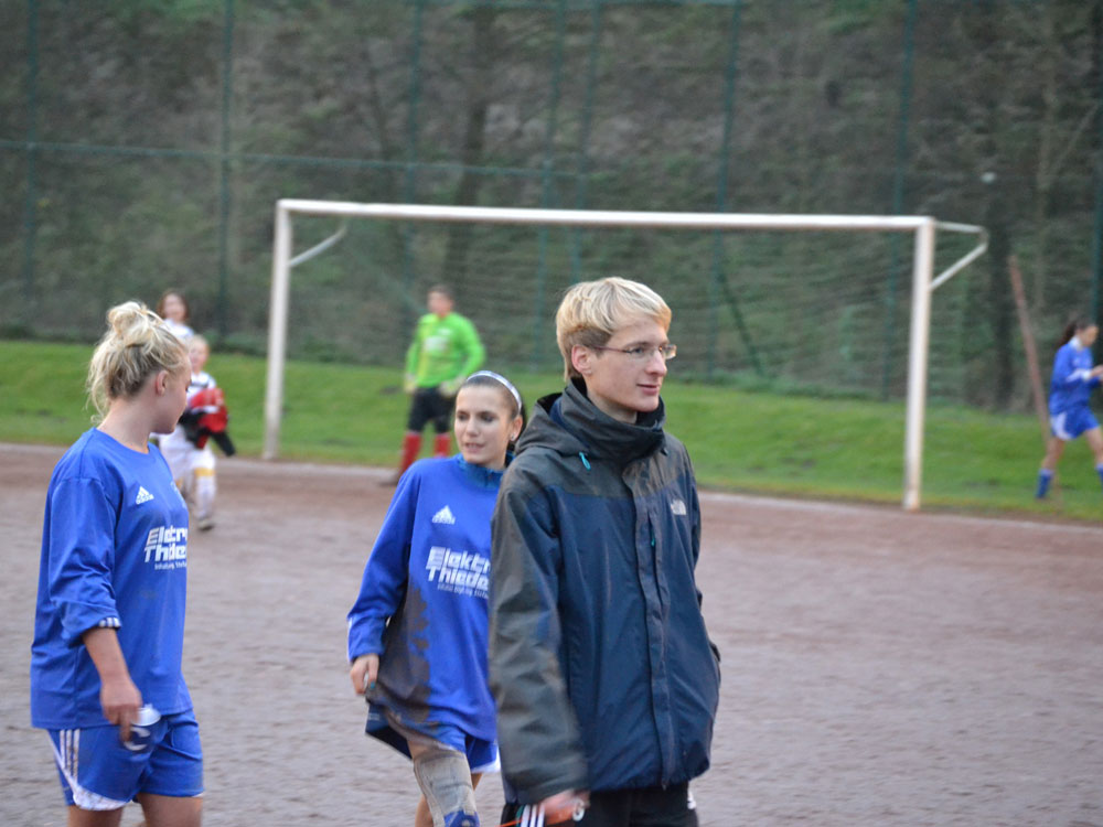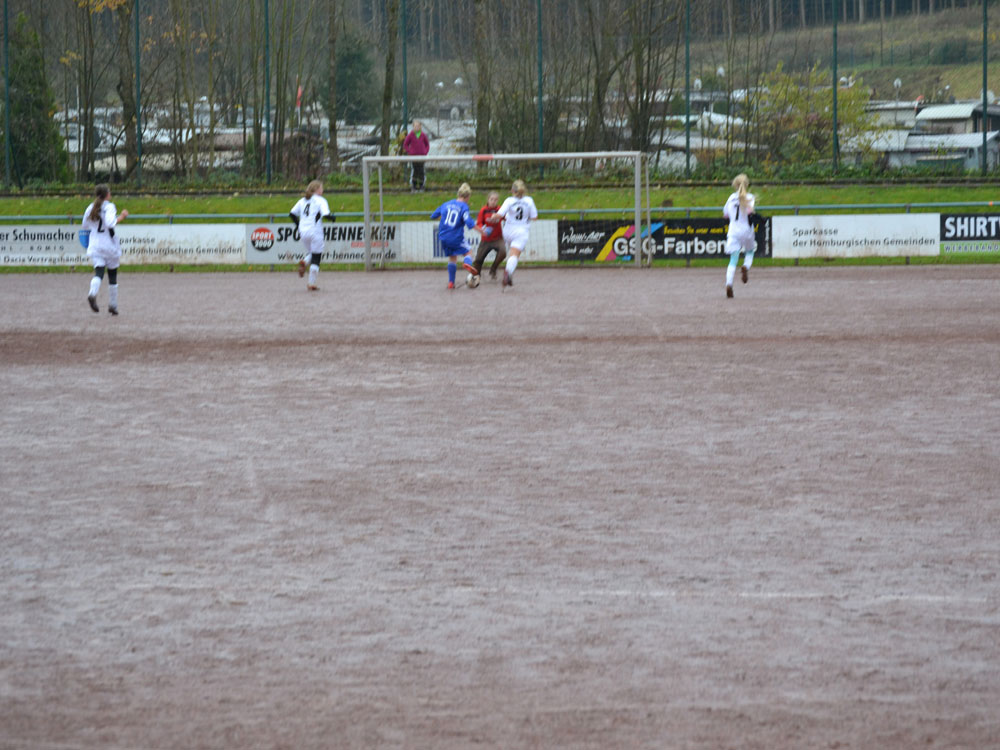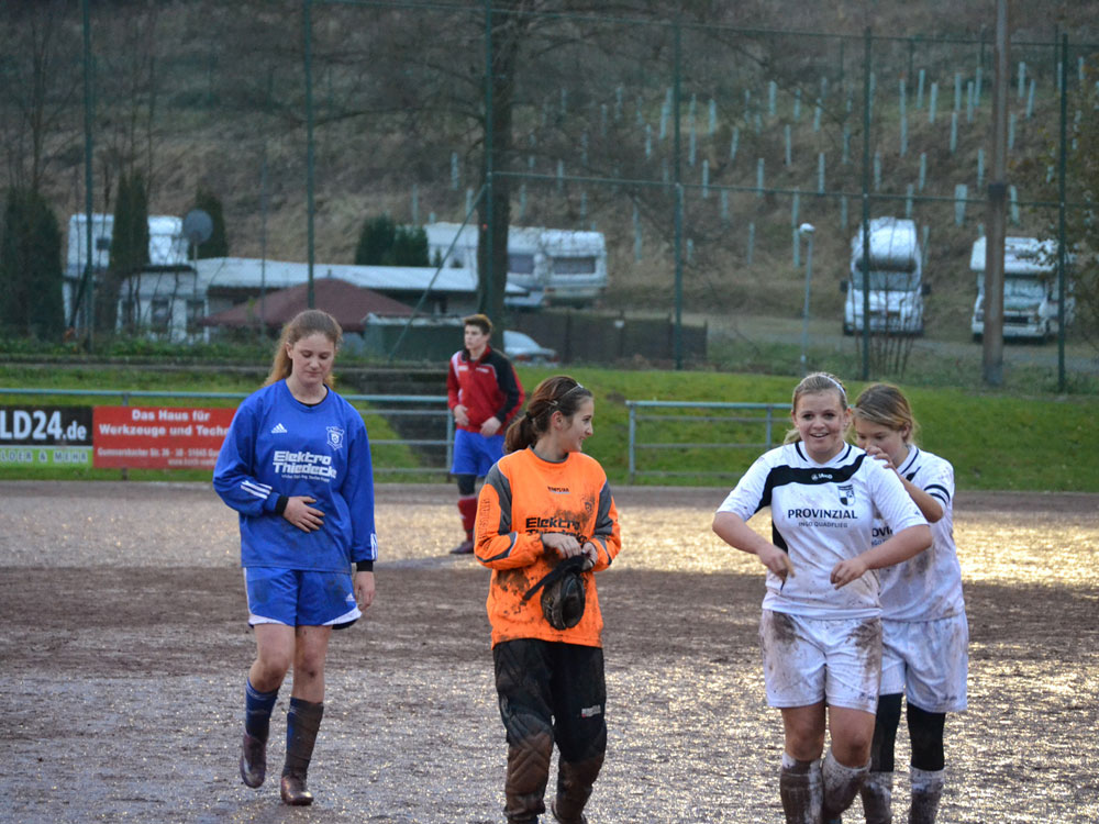 Man verständigte sich aufgrund der niedrigen Temperaturen auf eine kurze Pause. Das tat den Wiehlern, die fortan zwar besser ins Spiel kamen, aber meist an der sehr sicheren Defensive unserer Mädchen scheiterten, offensichtlich gut. Unsere Damen dagegen beschränkten sich offensiv nun auf das Nötigste und brachen lediglich ab und zu aus der Abwehr heraus nach Vorne aus, um sich in den Angriff einzuschalten. Als das Spiel ein wenig vor sich hin zu plätschern drohte, gab es dann eine Ecke für Wiehl. Die zu kurz geratene Flanke wurde abgewehrt und nach vorne zu Tokessa gepasst. Diese lief trotz eines irritierenden Pfiffes eines Wiehler Zuschauers, der sie in der eigenen Hälfte im Abseits gesehen haben wollte, weiter und blieb dieses Mal vor dem Tor eiskalt. 3:0 und damit die Vorentscheidung. Dass man sich kurz vor Schluss noch ein dummes Gegentor einfing, störte dann wiederum nur die Trainer. Die Mädels jedenfalls ließen sich nach dem Schlusspfiff des exzellenten Schiedsrichters von ihren Eltern feiern.