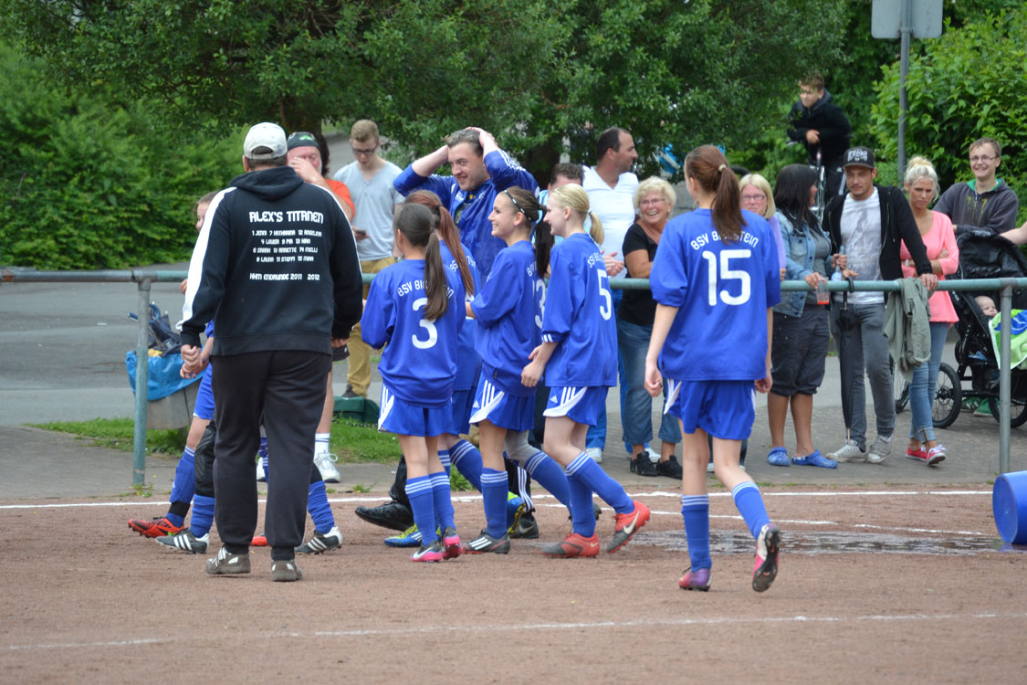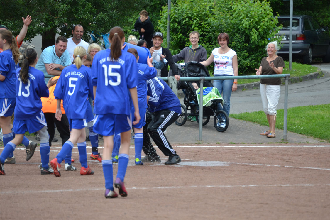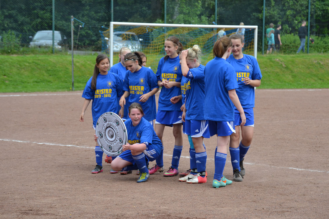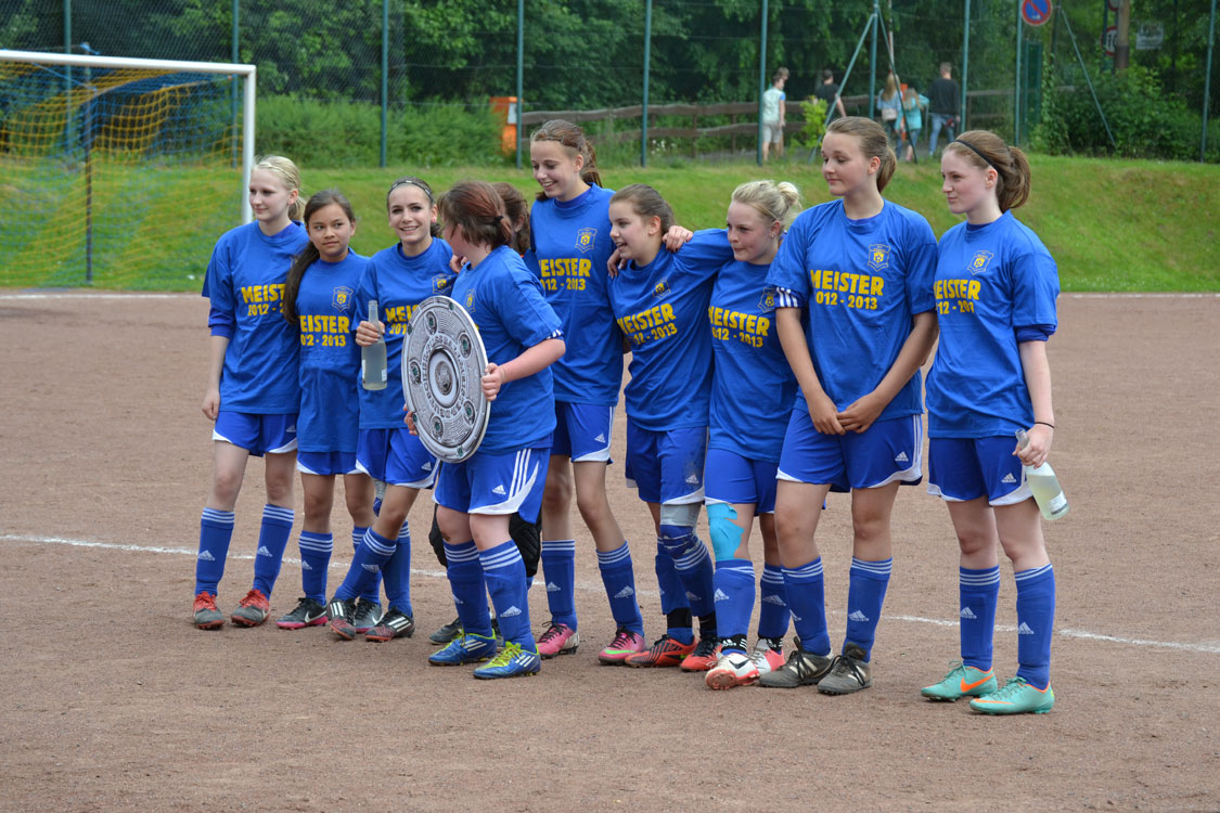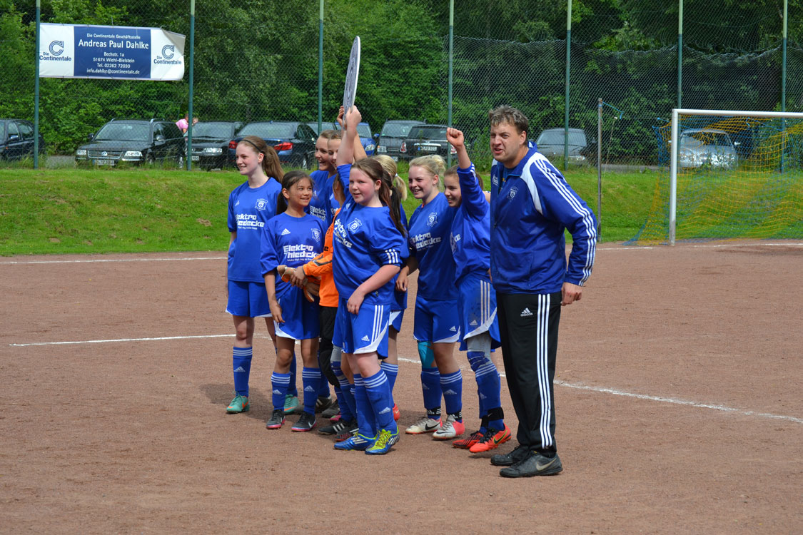 Chapeau an die Mannschaft und den Trainer. Die Meisterschaft wurde vollkommen verdient gewonnen. Ein paar Worte zum Vater des Erfolgs: innerhalb kürzester Zeit formte der Meistertrainer aus einem anfänglichen Hühnerhaufen eine Meistertruppe. Dazu gebührt ihm ein Riesenkompliment. Den Grundstein zur diesjährigen Meisterschaft legte Carsten wohl nach dem enttäuschenden Rückspiel gegen Wiedenest, das 0:2 verloren ging. Er erkannte, dass sein internes Ziel (Platz 1 bzw. Platz 2) gefährdet war und handelte sofort. Durch eine taktische Umstellung ging es von nun an steil bergauf – auch weil die Mannschaft die Umstellung sehr gut verkraftete. Ein herzliches Dankeschön von allen Spielerinnen und Eltern an diesen hervorragenden Trainer. Nicht zu vergessen herzlichen Dank an Benni, der die Mädchen stets mit vollem Einsatz unterstützte. Wir freuen uns nun auf die nächste Herausforderung, die die Mannschaft im nächsten Jahr als U17 M in einer 11er-Mannschaft angehen wird.