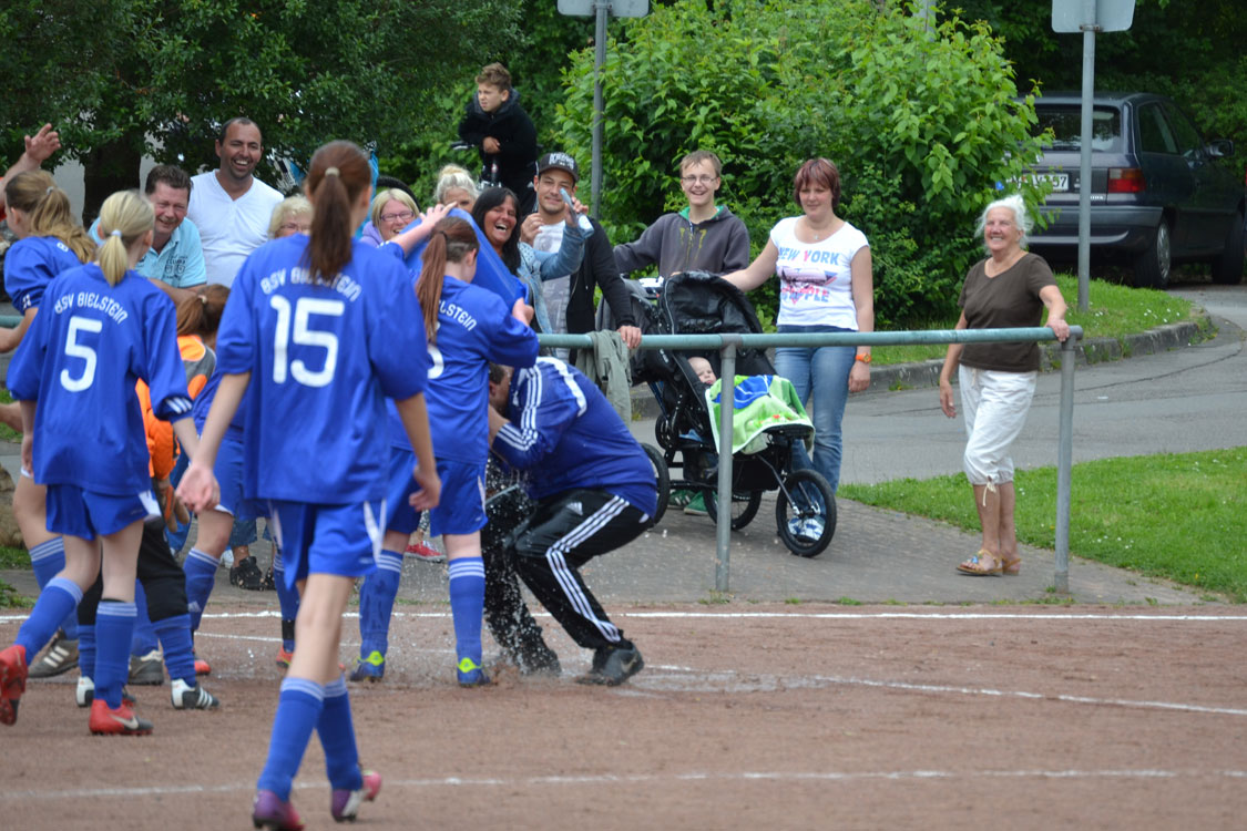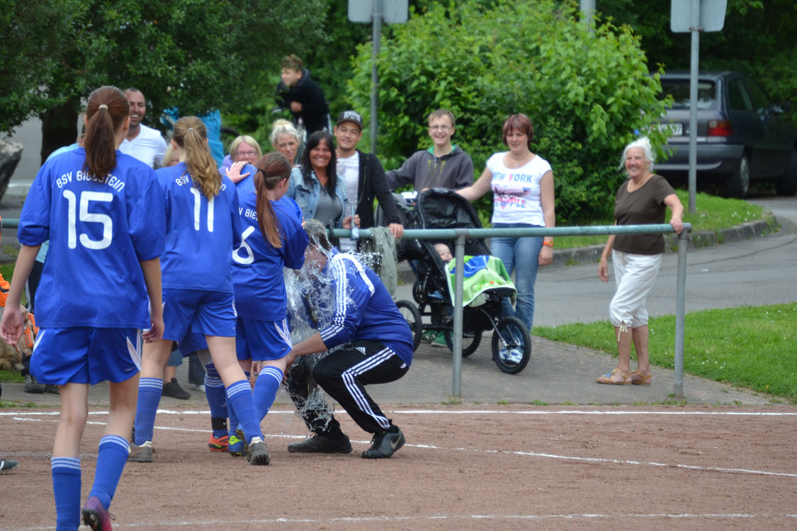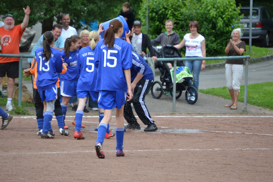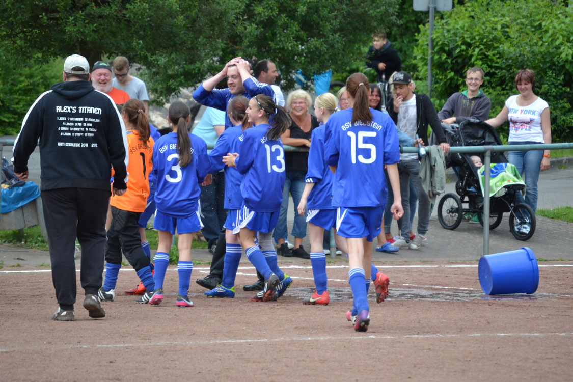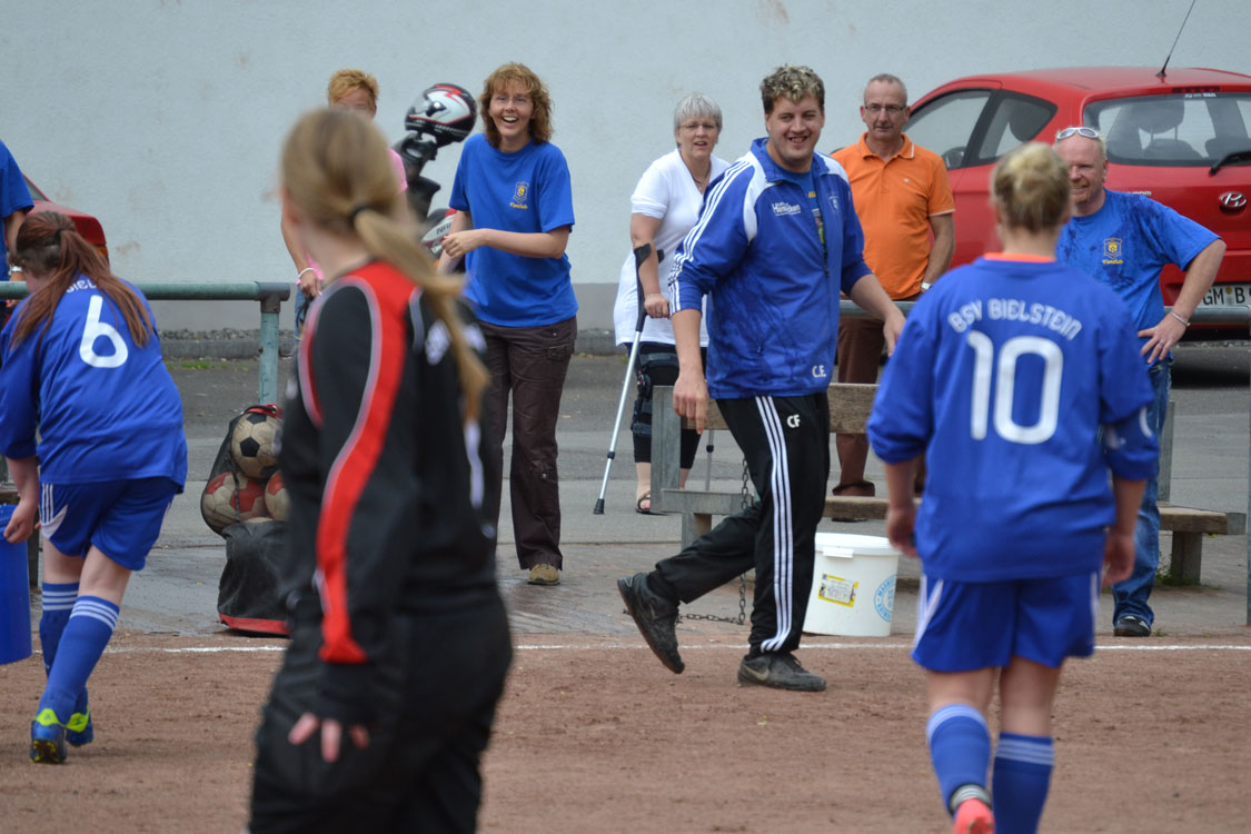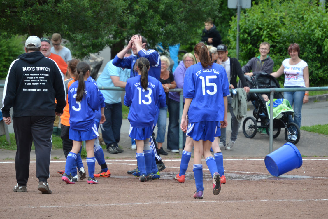 Chapeau an die Mannschaft und den Trainer. Die Meisterschaft wurde vollkommen verdient gewonnen. Ein paar Worte zum Vater des Erfolgs: innerhalb kürzester Zeit formte der Meistertrainer aus einem anfänglichen Hühnerhaufen eine Meistertruppe. Dazu gebührt ihm ein Riesenkompliment. Den Grundstein zur diesjährigen Meisterschaft legte Carsten wohl nach dem enttäuschenden Rückspiel gegen Wiedenest, das 0:2 verloren ging. Er erkannte, dass sein internes Ziel (Platz 1 bzw. Platz 2) gefährdet war und handelte sofort. Durch eine taktische Umstellung ging es von nun an steil bergauf – auch weil die Mannschaft die Umstellung sehr gut verkraftete. Ein herzliches Dankeschön von allen Spielerinnen und Eltern an diesen hervorragenden Trainer. Nicht zu vergessen herzlichen Dank an Benni, der die Mädchen stets mit vollem Einsatz unterstützte. Wir freuen uns nun auf die nächste Herausforderung, die die Mannschaft im nächsten Jahr als U17 M in einer 11er-Mannschaft angehen wird.