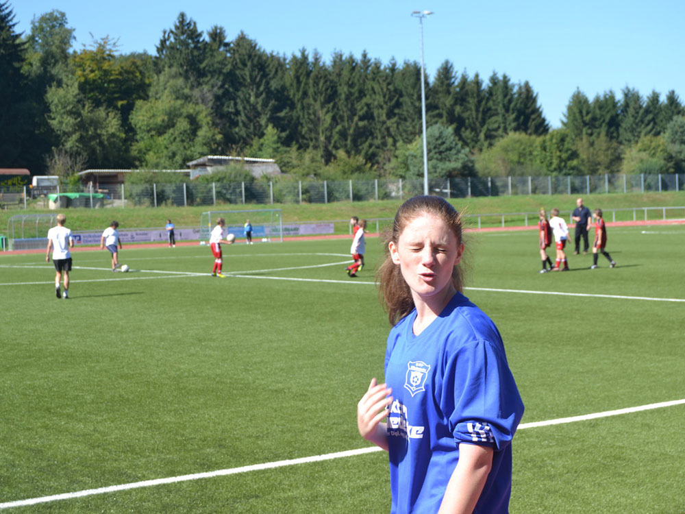 Am Ende war es ein Auftaktsieg, der speziell für die Mädchen sehr wichtig war. Dankenswerterweise haben sich die Mädels nicht durch die Unruhe an der Seitenlinie anstecken lassen, sondern standen defensiv kompakt und fanden auch offensiv immer mal wieder die Lücke für einen gefährlichen Angriff. Belohnt wurde dies mit einem hochverdienten 4:0, in dem unsere Torhüterin Eugenie am wenigsten zu tun hatte und sich dementsprechend über das erste Zu-Null-Spiel der neuen Saison freuen konnte. Dem Geburtsstagskind Sarah auf diesem Wege noch einmal alles Gute zum 13. Geburtstag und herzlichen Glückwunsch für die zwei Tore.