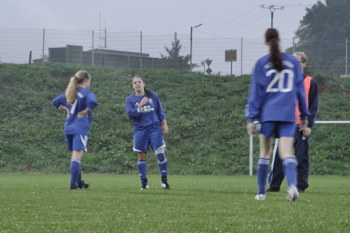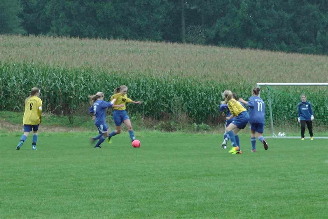 JuniAuf dem nassen und ungewohnten Geläuf kamen unsere Mädchen nur sehr schwer ins Spiel. Die Anfangsminuten gehörten den Gastgeberinnen, die den Bielsteinerinnen mit ihrem körperbetonten Spiel zunächst den Schneid abkauften. Dann aber ließen die Bechenerinnen den Mädels einmal zu viel Platz, was diese direkt für sich zu nutzen wussten: Nach einem wunderschönen Pass von Linda lief Christin alleine auf die Torhüterin zu und verwandelte den Ball sehr abgebrüht zur Führung ins Tor. Die Führung hatte allerdings nur zehn Minuten Bestand, weil die Bielsteinerinnen die schnellen Flügelflitzerinnen der Gastgeberinnen nicht in den Griff bekamen. Nach einer schönen Einzelaktion war die linke Außenspielerin Bechens mit einem trockenen Schuss ins linke Eck erfolgreich. Die Mädels reagierten nur kurzzeitig beeindruckt und schlugen nach abermals zehn Minuten mit einem Doppelschlag eiskalt zurück: Christin (29., nach Vorlage von Eugenie) und Annalena (33., nach Vorlage von Christin) waren erfolgreich. Wenige Minuten später war Halbzeit.