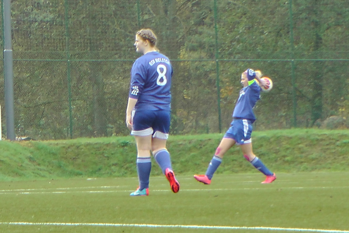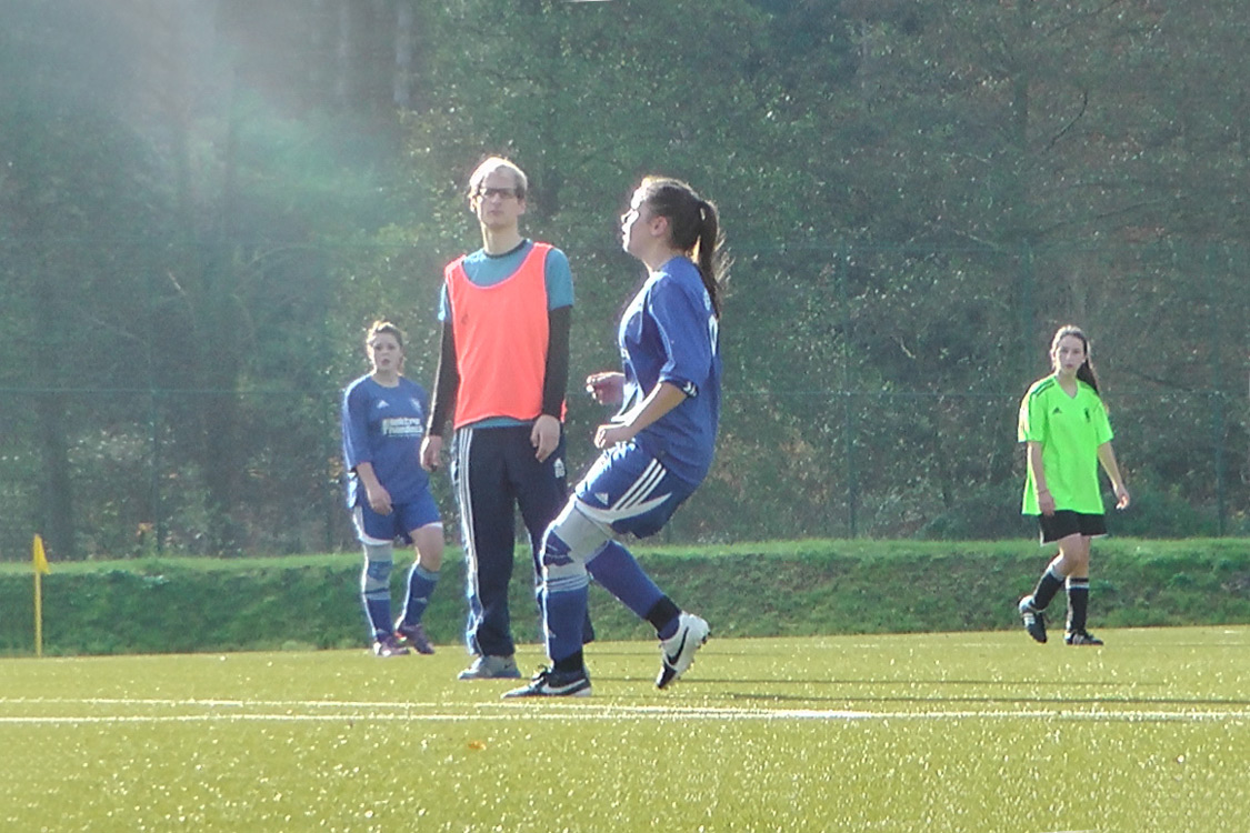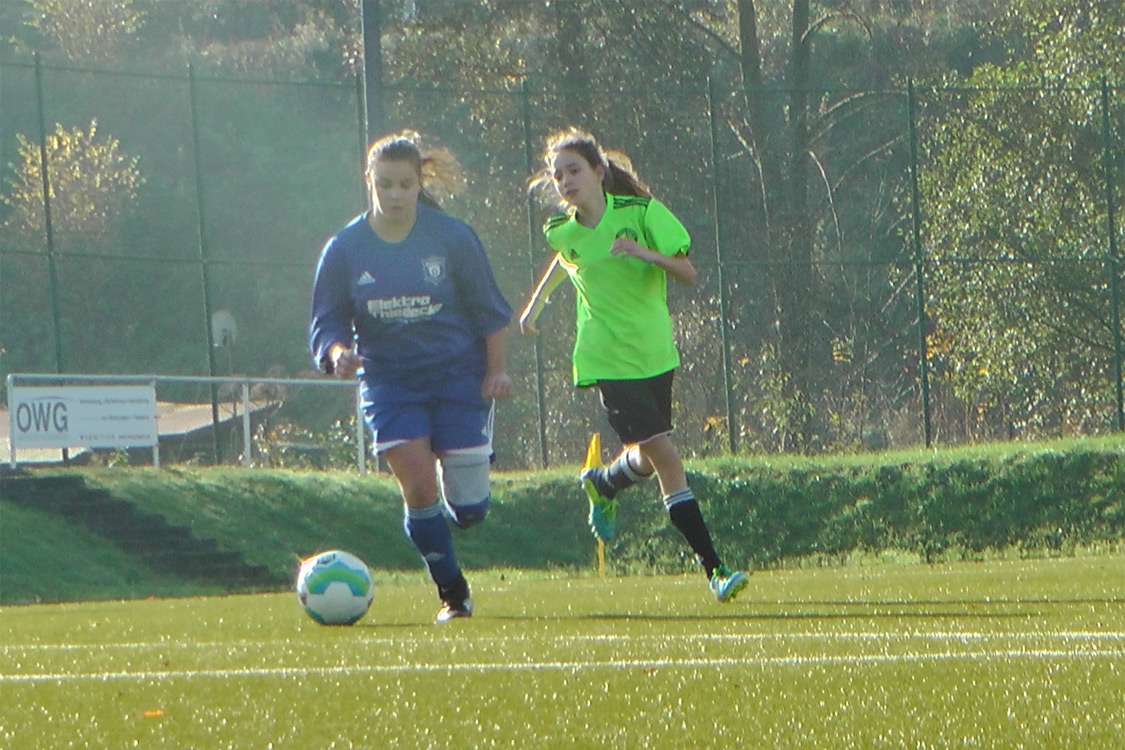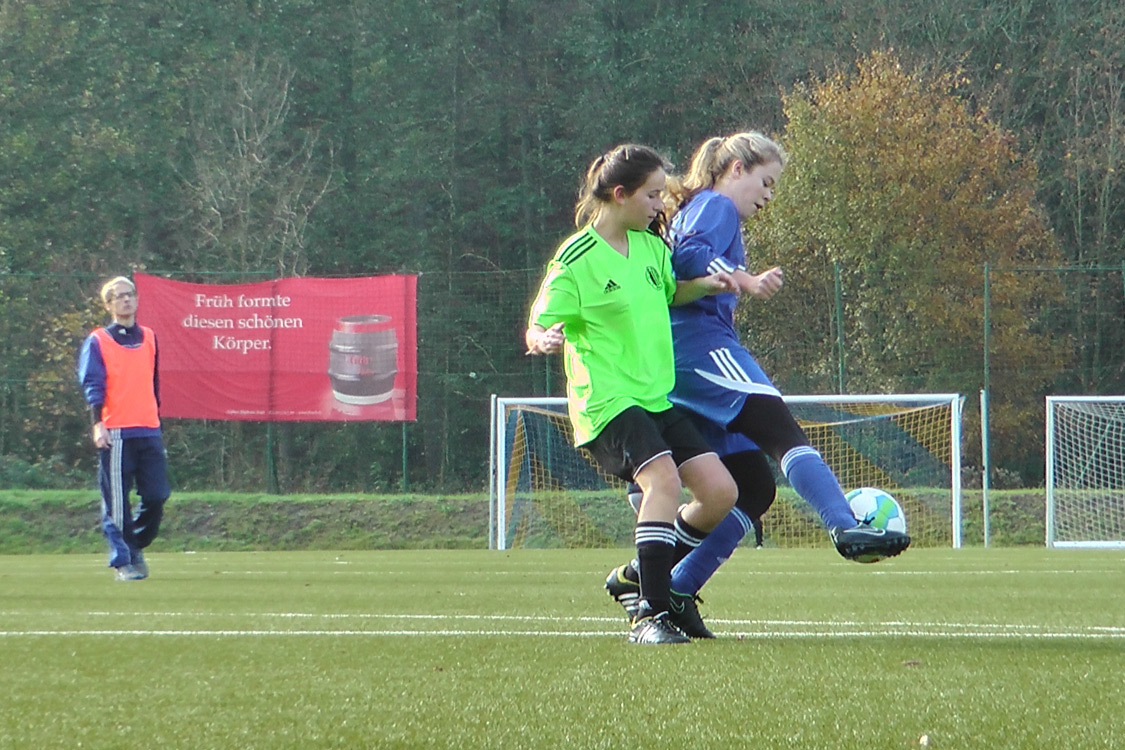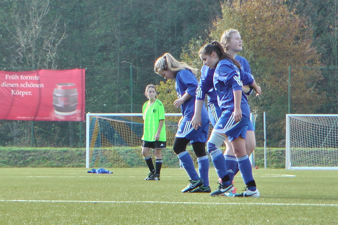Obwohl der Gegner am heutigen Sonntag nicht wirklich eine Chance hatte, zeigten unsere Mädchen in der ersten Halbzeit keine gute Vorstellung. Dass die Gäste aus Rösrath aus der schlechten Leistung der Mädchen keinen Nutzen ziehen konnte, lag vor allem an der ersatzgeschwächten Mannschaft, mit der sie angereist waren. Weil die eine Mannschaft also nicht konnte und die andere Truppe nicht so richtig wollte, blieb es bis zur 30. Minute auch eine eher zähe Kost für alle Zuschauer. Erst nach einer guten halben Stunde zeigten die Mädchen ihre erste richtig gute Kombination und wurden dafür gleich belohnt: unser Sturmduo Annalena und Christin kombinierte sich gut durch die gegnerische Abwehrreihe traf in Person von Annalena zum erlösenden 1:0 aus kurzer Distanz. Weil die Mädchen dieselbe Kombination binnen fünf Minuten gleich noch zwei mal zeigen konnten, ging es mit einer 3:0 Führung in die Pause – Christin konnte sich hierbei als Doppeltorschützin feiern lassen.